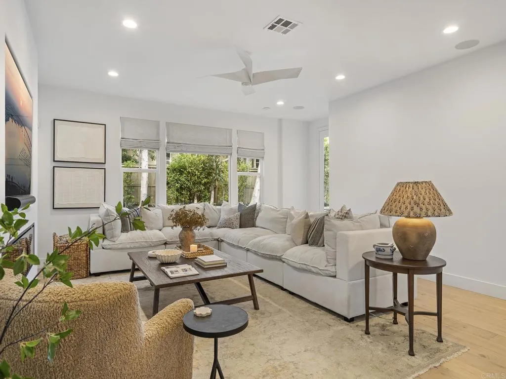 Welcome to Kensington at Del Sur! This exquisitely remodeled residence offers 4 bedrooms, 3.5 baths, and approximately 3,037 square feet of elevated living space, defined by impeccable craftsmanship and world-class finishes throughout. At the heart of the home is a show-stopping interior courtyardan architectural centerpiece that creates a private, resort-inspired setting ideal for entertaining, al fresco dining, or intimate gatherings. The seamless indoor-outdoor flow and abundance of natural light elevate the homes sophisticated yet inviting ambiance. The chefs kitchen is a true statement, thoughtfully redesigned by renowned Mullen Design Co and appointed with top-tier finishes and appliances. Highlights include a Wolf range, Sub-Zero refrigeration, a built-in nugget ice maker, wine and beverage refrigerator, custom white oak cabinetry, and striking waterfall quartzite countertopsa perfect fusion of form and function for both everyday living and entertaining. Engineered white oak hardwood flooring flows throughout the entire home, reinforcing the cohesive, high-end design and timeless elegance. Every detail has been carefully curated to reflect a level of quality rarely found. Situated on a highly desirable corner lot, the home is less than a block from one of Del Surs charming neighborhood parks and resort-style pool, offering an unparalleled lifestyle of convenience and community. Owned solar adds energy efficiency and long-term value, completing this remarkable offering. A truly rare opportunity to own a designer-curated home where luxury, location, and architectural b