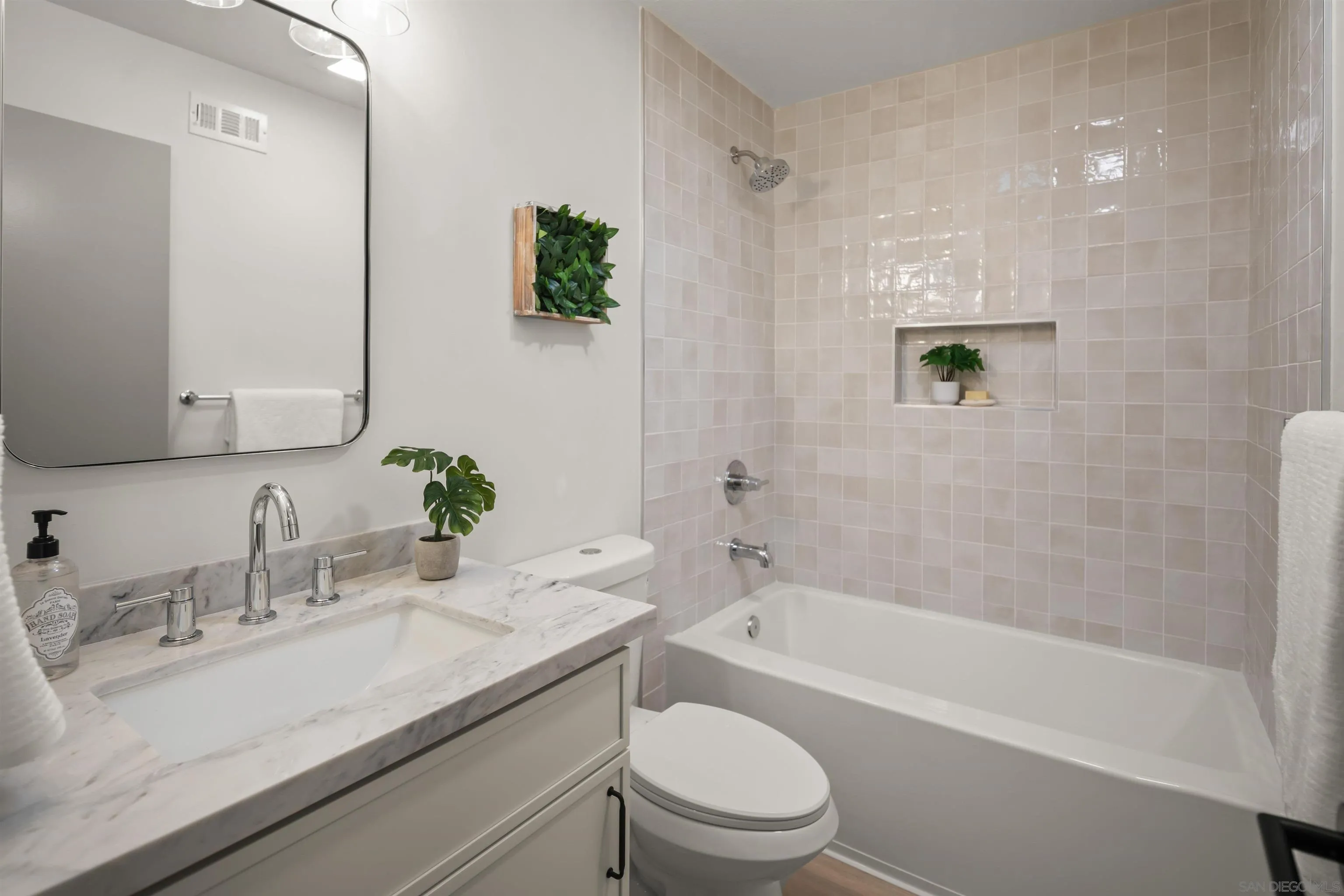 Gorgeously renovated and truly turnkey, this home shines—ready to welcome its next owners. Ring in the new year in style with a thoughtfully executed designer remodel featuring newer solar panels and a newer roof for enhanced energy efficiency and long-term peace of mind. Recent upgrades include wide oak vinyl plank flooring, handcrafted Bedrosian tile, quartz countertops, impeccably renovated bathrooms, and brand-new appliances. With 4 bedrooms and 2 bathrooms, the home blends modern comfort with everyday practicality. Located in the heart of Mira Mesa—an ideal, central neighborhood celebrated for its excellent schools, vibrant community, and unmatched convenience—this property offers the perfect place to put down roots. Move right in and start enjoying the best of the area from day one.