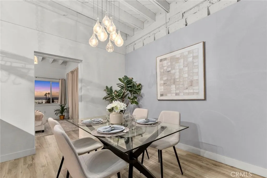 Experience coastal living at its finest in this stunning residence located in the heart of Little Italy, just steps from San Diego Bay. This spacious and airy 2 bedroom, 2 bath loft-style condo offers breathtaking panoramic views of the marina, city skyline, and vibrant sunsets over the water. The interior blends modern comfort with coastal charm, featuring soaring open-beam ceilings, exposed brick, and expansive windows that fill the home with natural light. The open-concept kitchen includes sleek countertops, custom cabinetry, and stainless-steel appliances, seamlessly connecting to the dining area and living space, perfect for entertaining or relaxing while overlooking the harbor. Each bedroom is uniquely positioned for privacy and comfort, highlighted by vaulted ceilings, natural light, and serene neutral tones. Both bathrooms have been fully updated with modern vanities, elegant tile, deep soaking tub and glass-enclosed shower. Enjoy effortless indoor-outdoor living from your rooftop terrace ideal for morning coffee or evening sunsets over the marina. Additional features include an in-unit laundry, luxury plank flooring, 1 covered parking spot, and a storage closet. Located just steps from the waterfront, cafes, restaurants, and the iconic Little Italy sign, this residence offers a rare blend of sophistication and coastal charm in one of San Diegos most sought-after neighborhoods. A perfect urban retreat where modern design meets endless views.