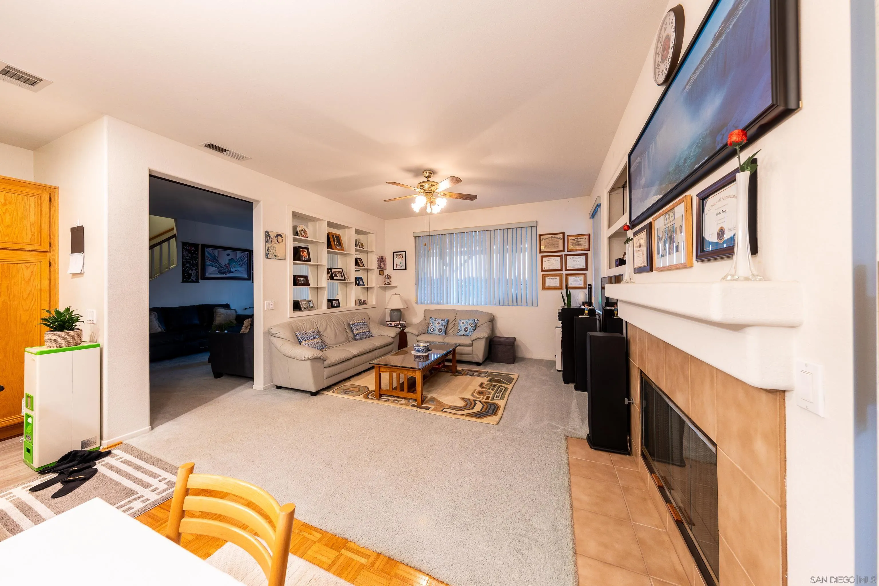 Immaculate well maintained 3 Bedroom detached home in a quiet neighborhood, and is an end unit. Amazing opportunity to own a turnkey. Spacious main bathroom includes walk-in closet. Upgraded Kitchen countertop, Wardrobe closet mirror. Great backyard with turf low maintenance and small vegetable garden on the side. Nice view of the Sunset. Near to Park, Miramar Lake, World Class Shopping, Dining, great school, near 15 and 56 Freeway.