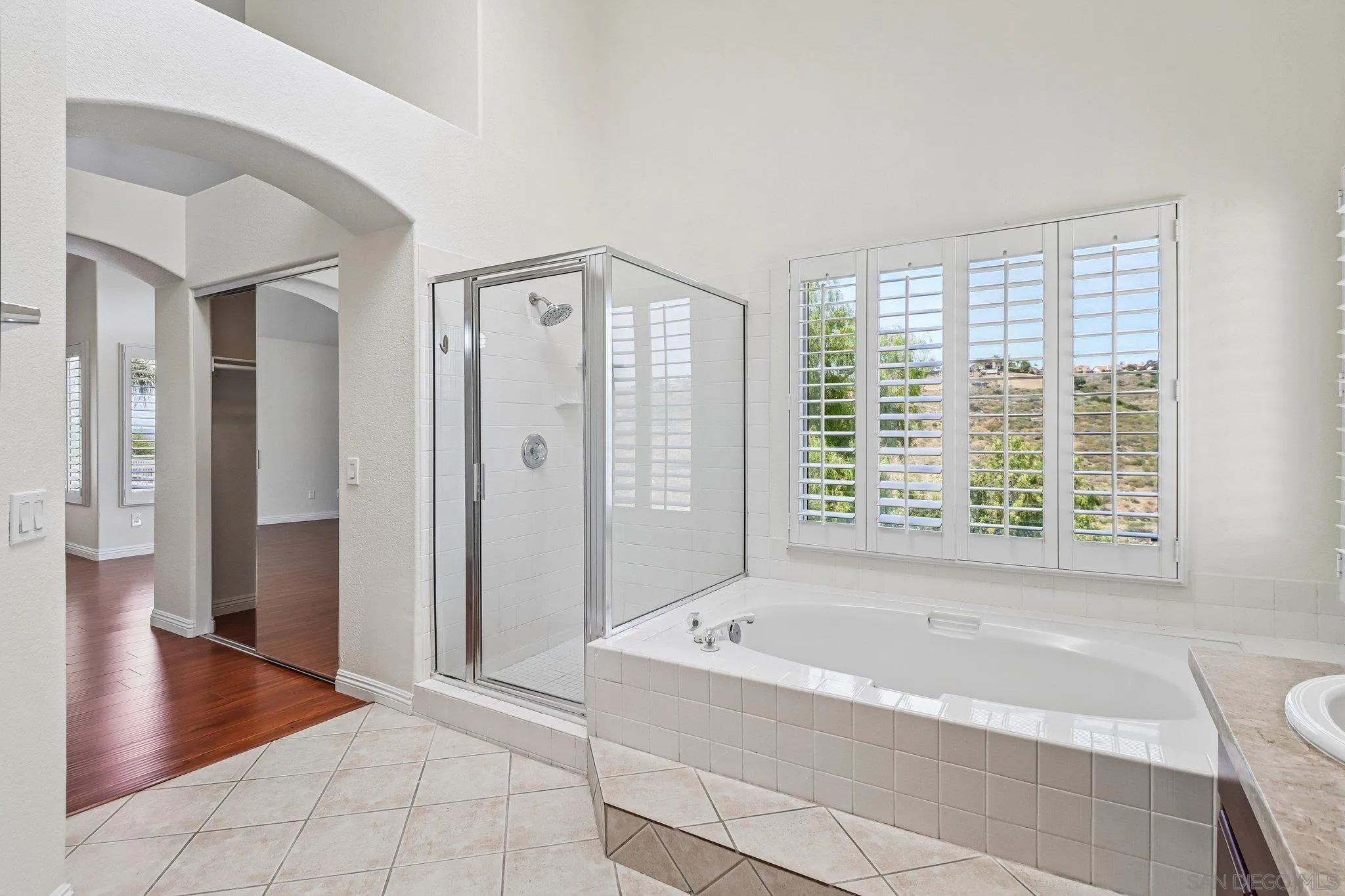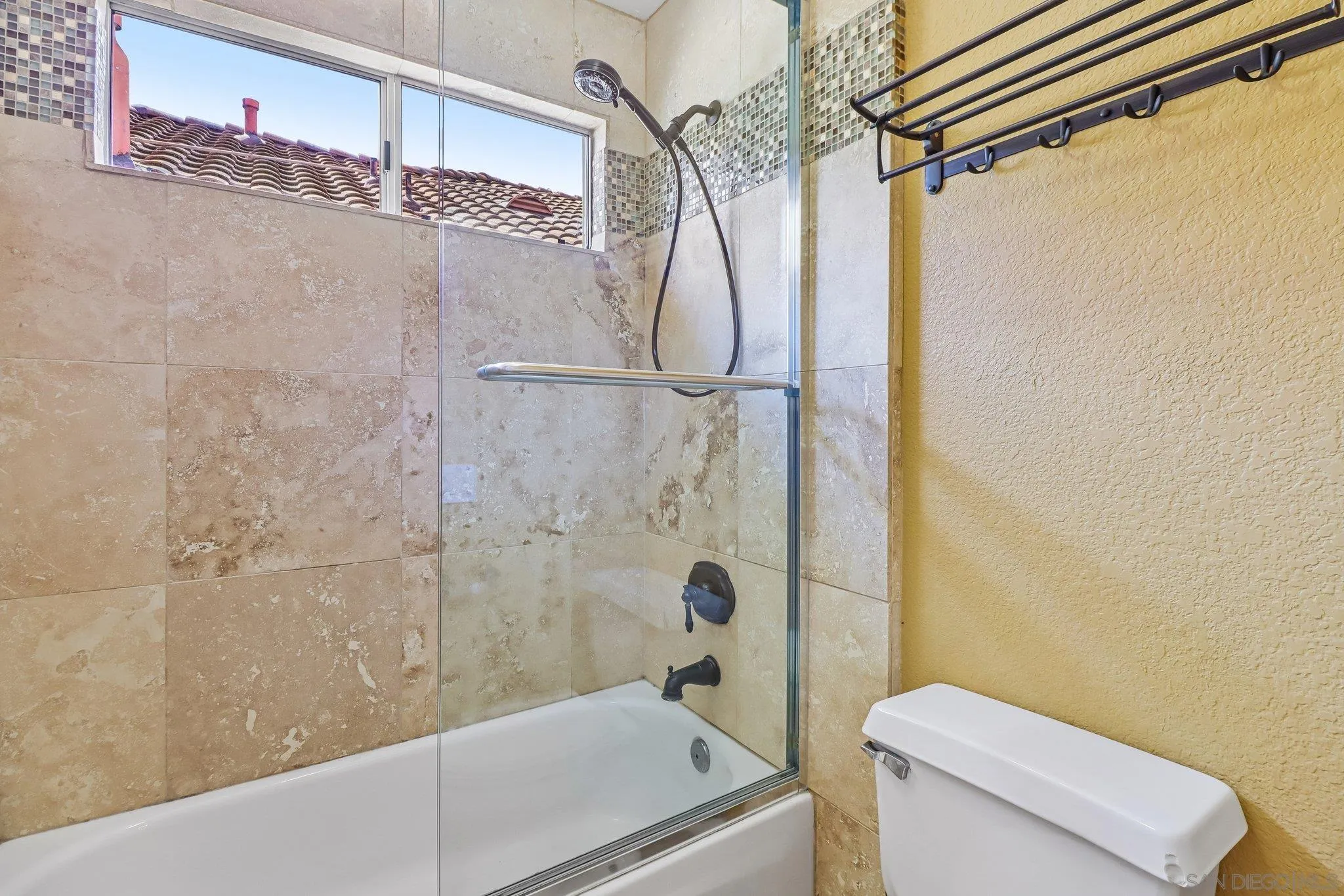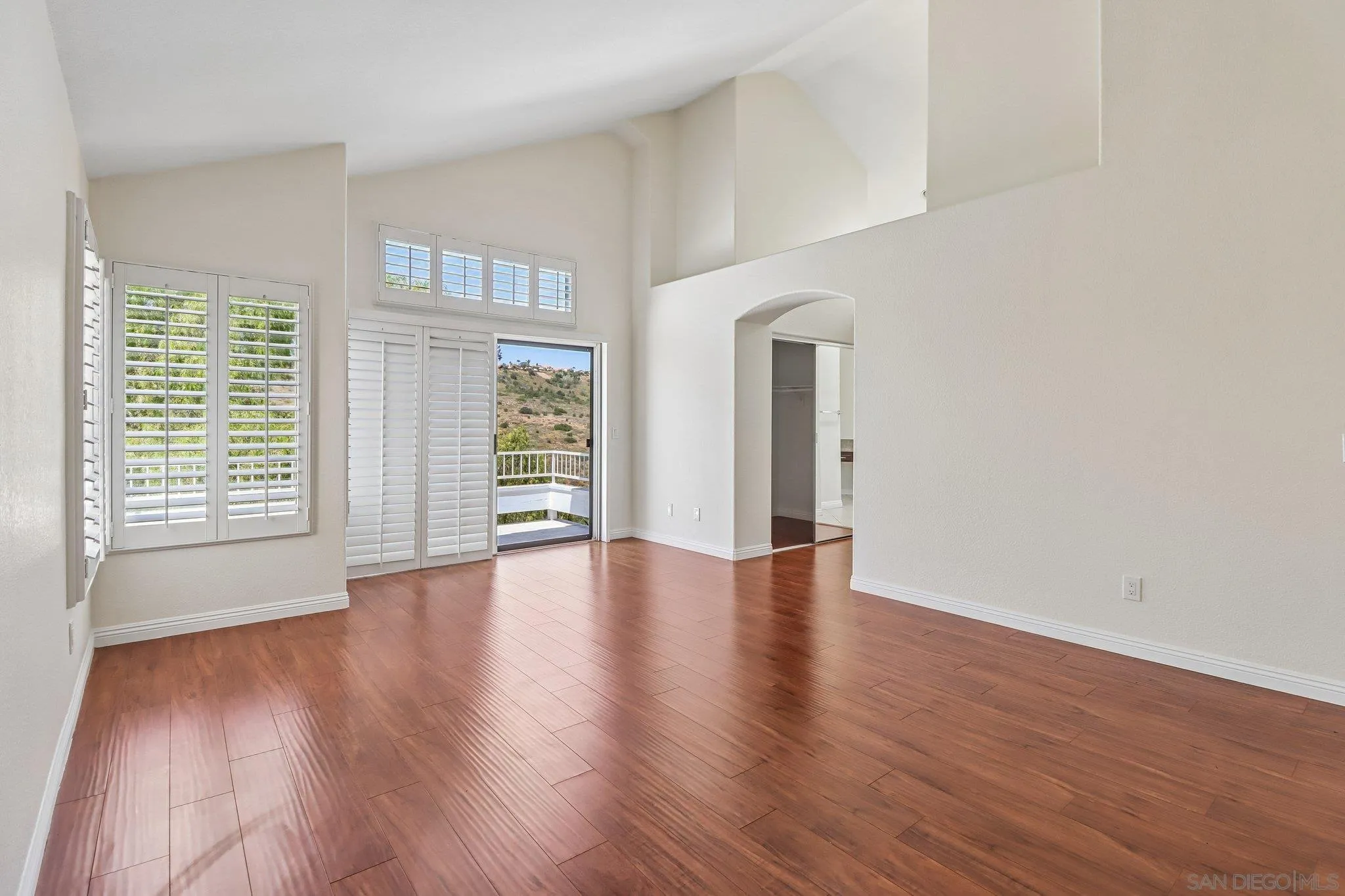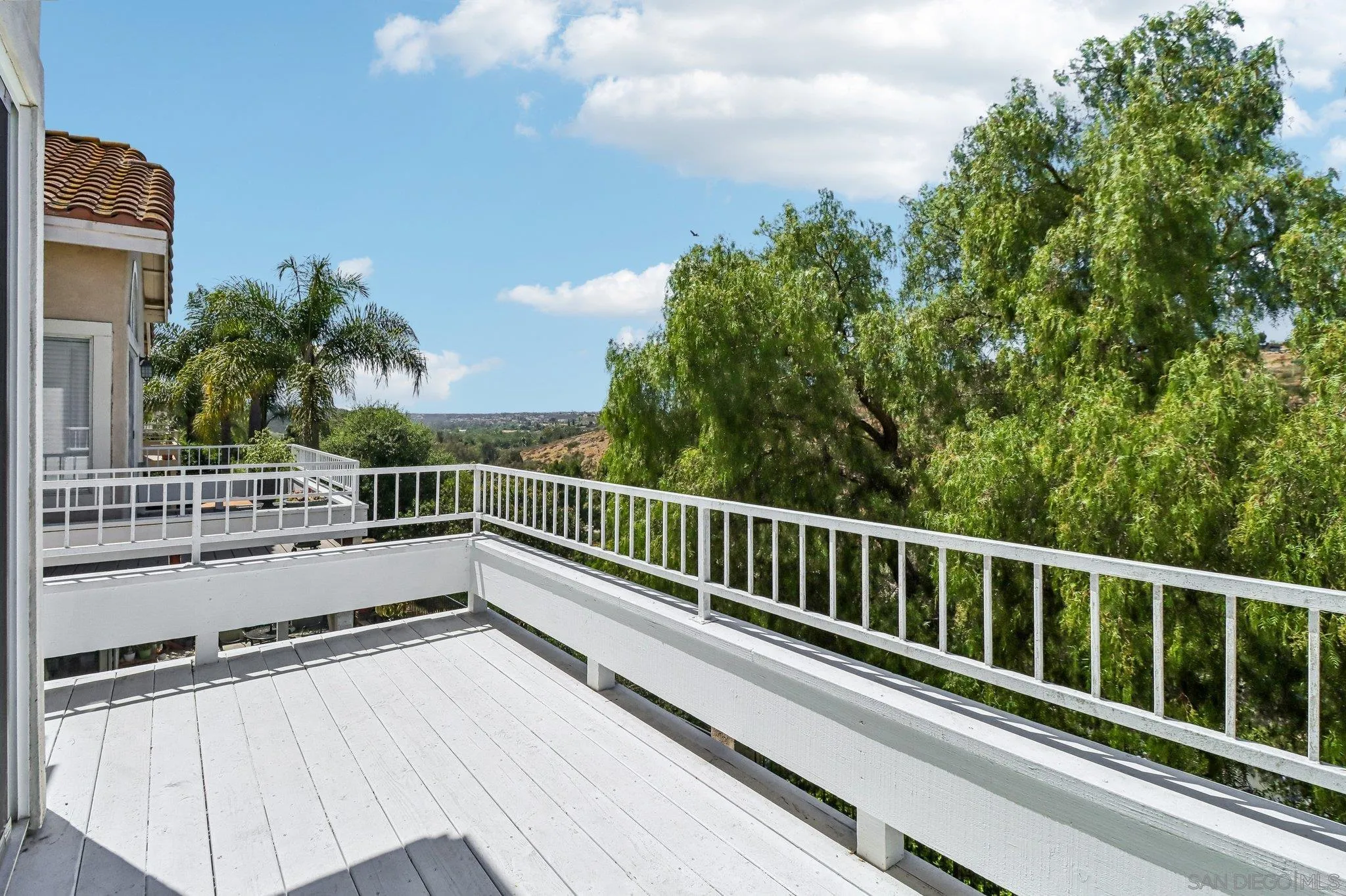 Tucked away on a quiet street, 9432 Hito Ct offers privacy, natural light, and thoughtful upgrades in this spacious 5-bedroom, 3-bathroom San Diego home with 2,725 sq ft. Backing to open space with no neighbor directly behind or across the street, the property enjoys a rare sense of openness with panoramic hillside and mountain views. Inside, the open floor plan is filled with natural light from skylights and large windows, creating a bright, airy feel. The upgraded kitchen features custom Italian marble countertops from Northern Italy, soft-close cabinetry, a new stove, and a large walk-in pantry. Engineered wood flooring, fresh neutral paint, shutters throughout, and a cozy gas fireplace add warmth and style. The primary suite offers dual closets, a private balcony with views, and a spa-style bath with soaking tub, walk-in shower, and marble counters. Additional highlights include built-in storage, updated vanities with under-cabinet lighting, and an art niche at the entry. Enjoy a low-maintenance backyard with mature fruit trees (apple, Meyer lemon, & fig) and a patio beneath a new balcony, plus new fencing. Additional features include zoned A/C, a 3-car garage, and HOA amenities with pool, tennis courts, and green space. Ideally located near shopping, dining, and major commuter routes, this home offers a rare combination of views, privacy, and move-in ready comfort in San Diego.
