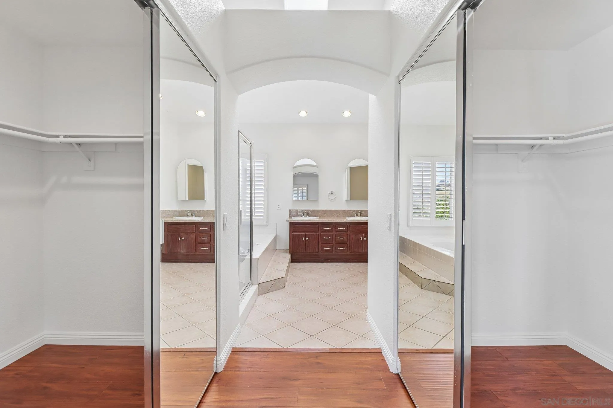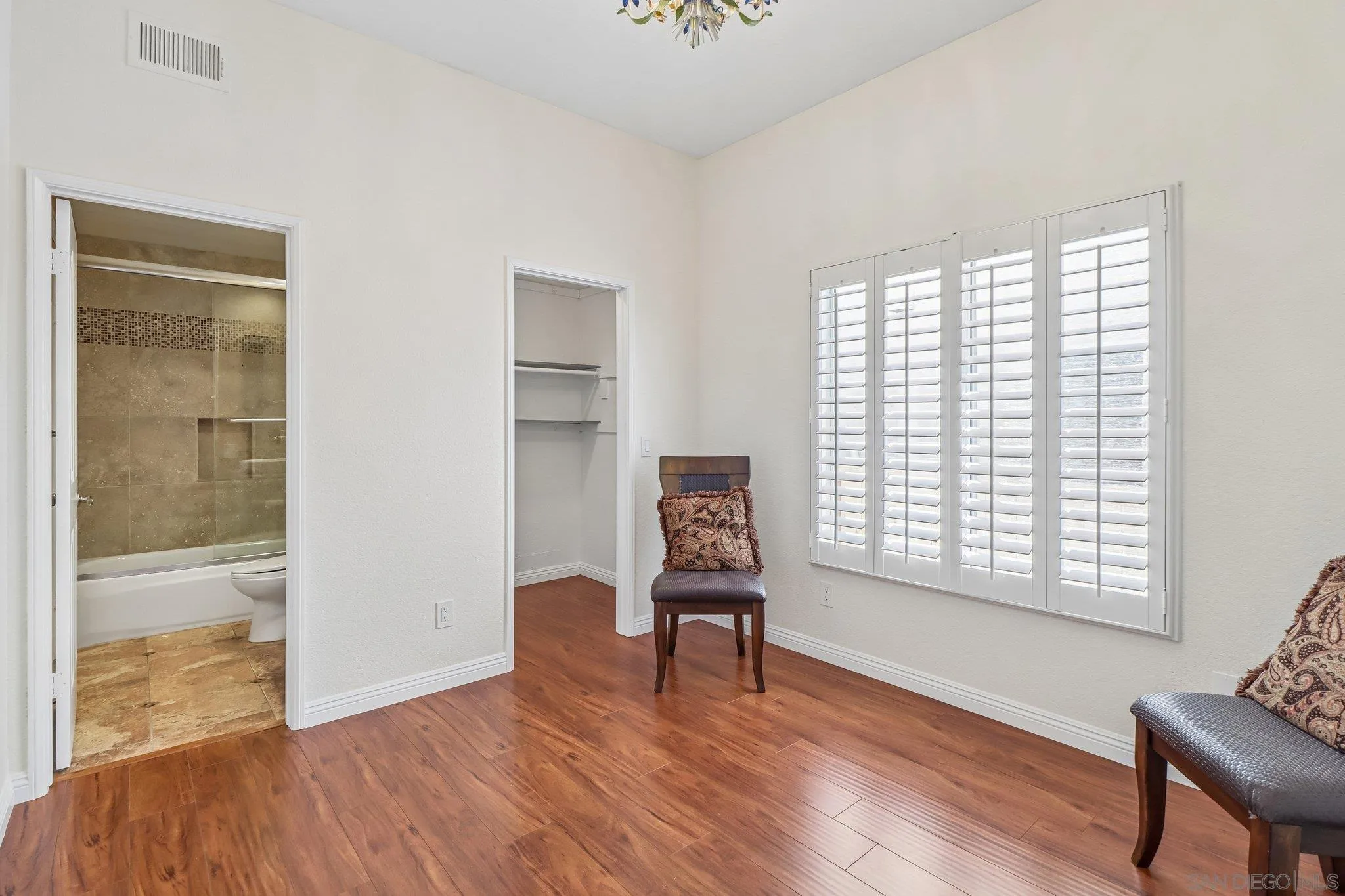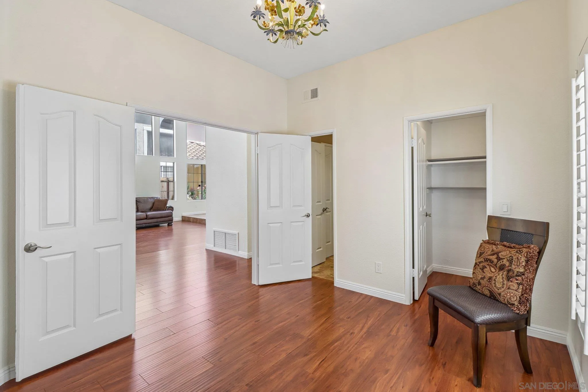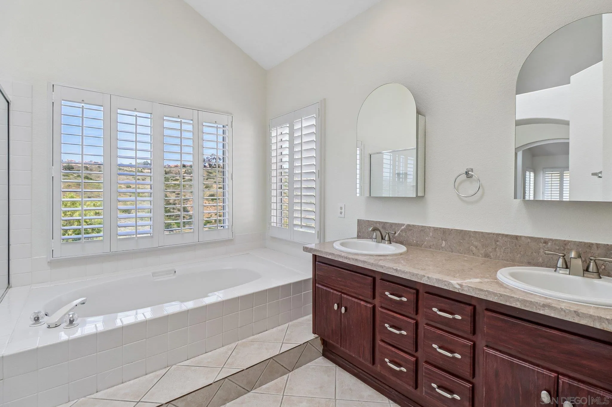 Tucked away on a quiet street, 9432 Hito Ct offers privacy, natural light, and thoughtful upgrades in this spacious 5-bedroom, 3-bathroom San Diego home with 2,725 sq ft. Backing to open space with no neighbor directly behind or across the street, the property enjoys a rare sense of openness with panoramic hillside and mountain views. Inside, the open floor plan is filled with natural light from skylights and large windows, creating a bright, airy feel. The upgraded kitchen features custom Italian marble countertops from Northern Italy, soft-close cabinetry, a new stove, and a large walk-in pantry. Engineered wood flooring, fresh neutral paint, shutters throughout, and a cozy gas fireplace add warmth and style. The primary suite offers dual closets, a private balcony with views, and a spa-style bath with soaking tub, walk-in shower, and marble counters. Additional highlights include built-in storage, updated vanities with under-cabinet lighting, and an art niche at the entry. Enjoy a low-maintenance backyard with mature fruit trees (apple, Meyer lemon, & fig) and a patio beneath a new balcony, plus new fencing. Additional features include zoned A/C, a 3-car garage, and HOA amenities with pool, tennis courts, and green space. Ideally located near shopping, dining, and major commuter routes, this home offers a rare combination of views, privacy, and move-in ready comfort in San Diego.