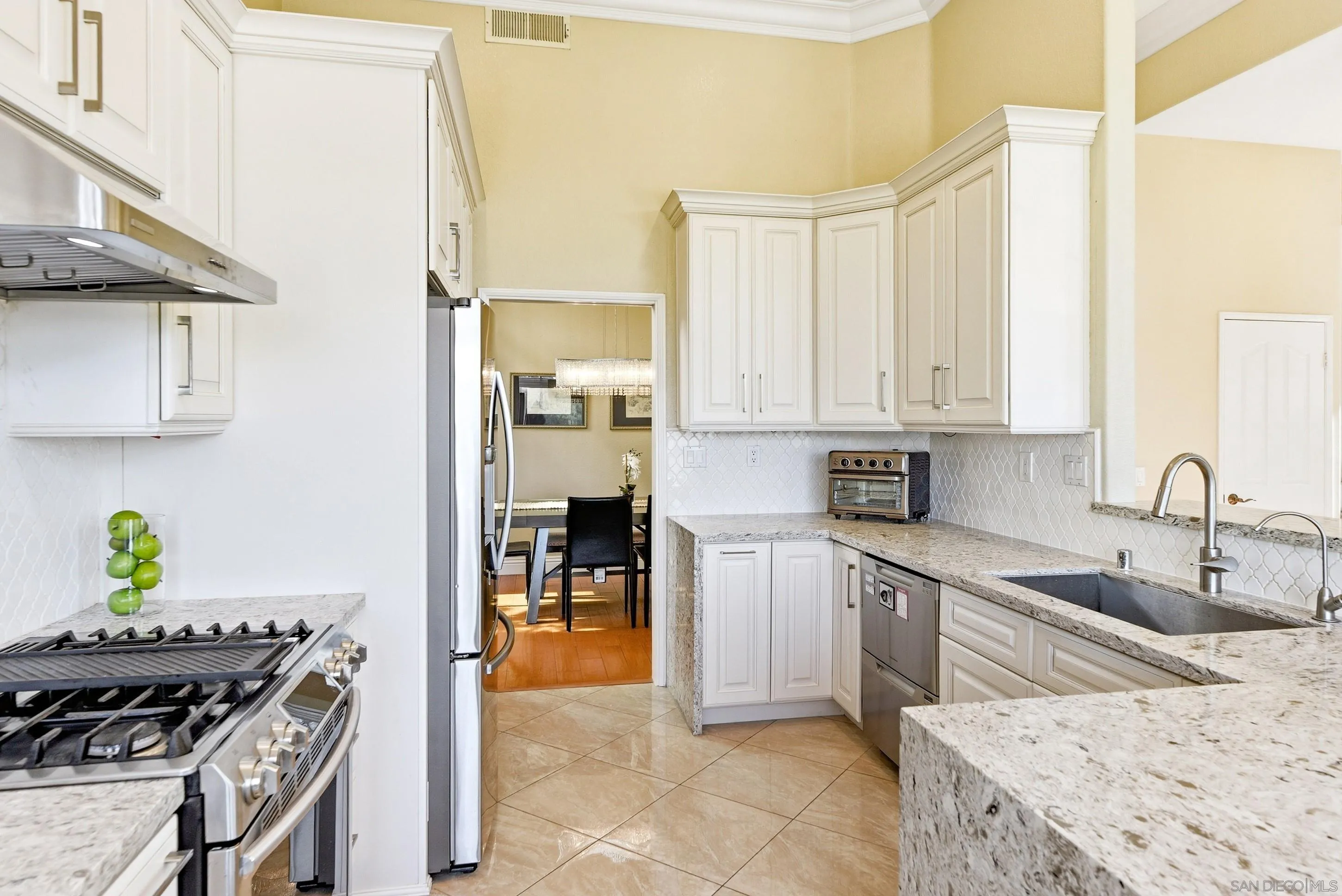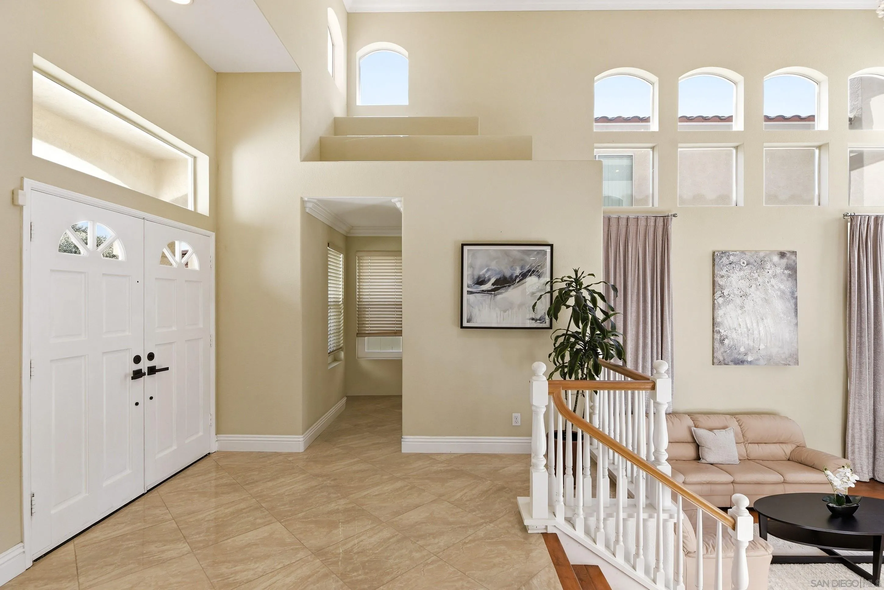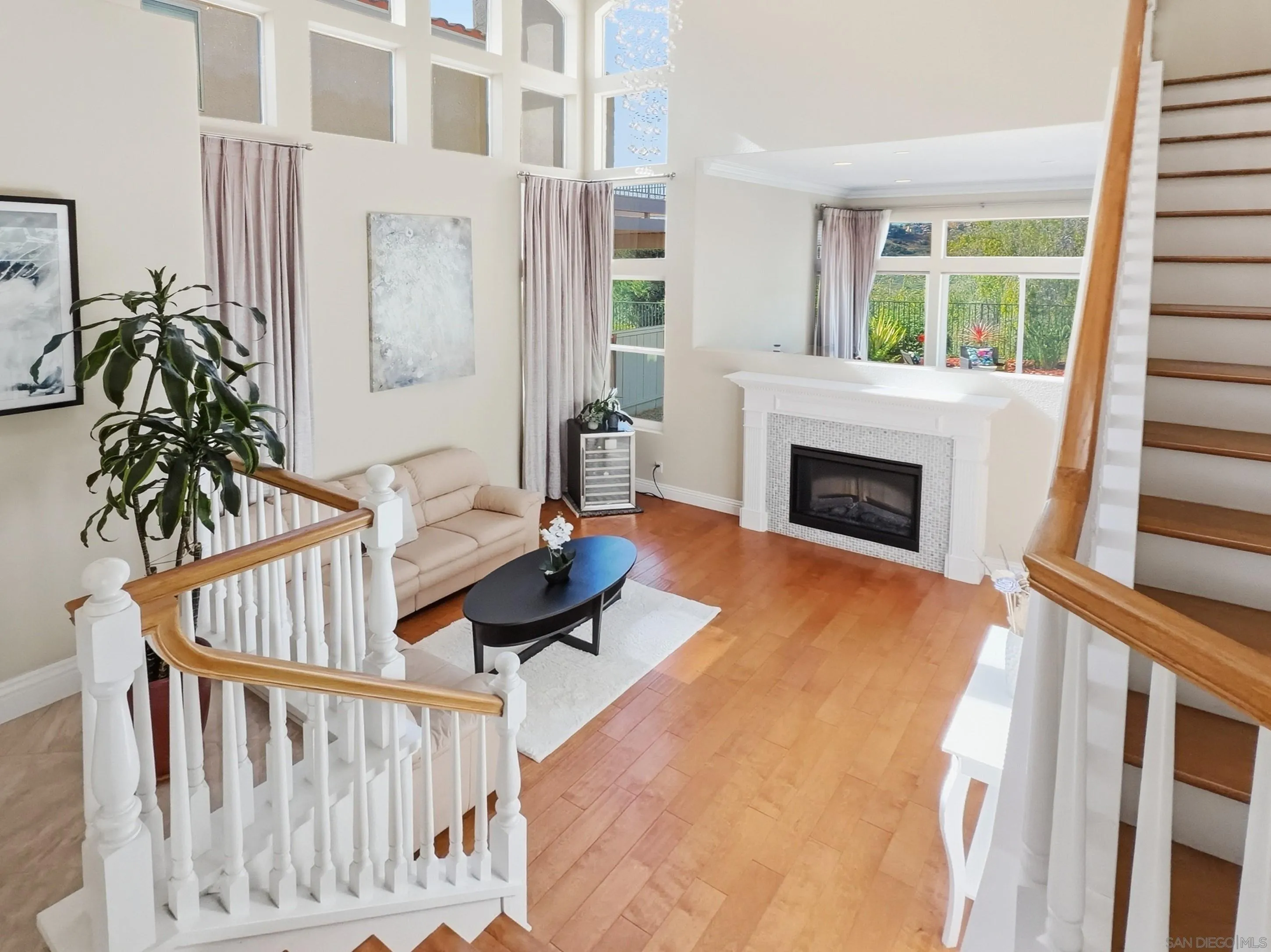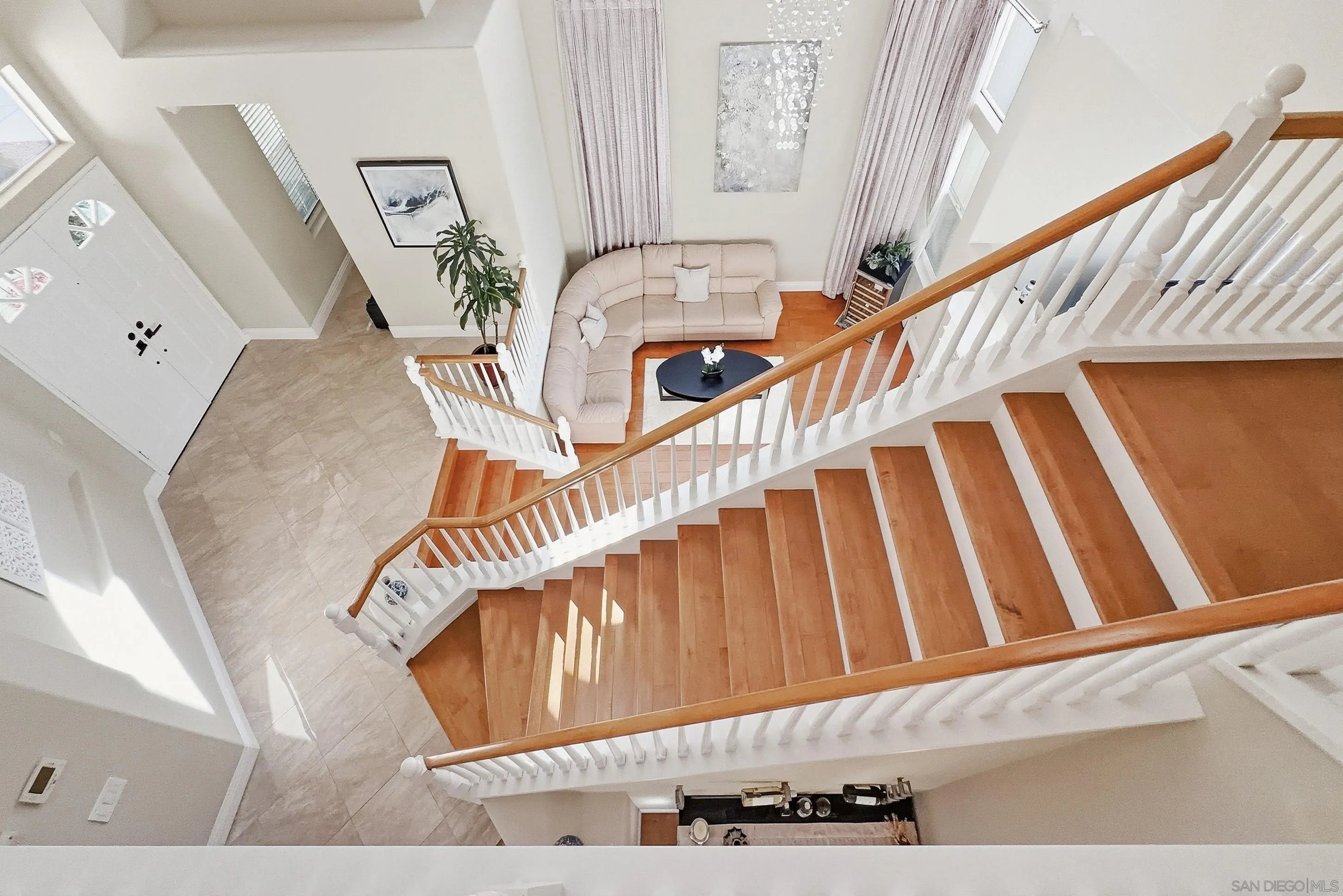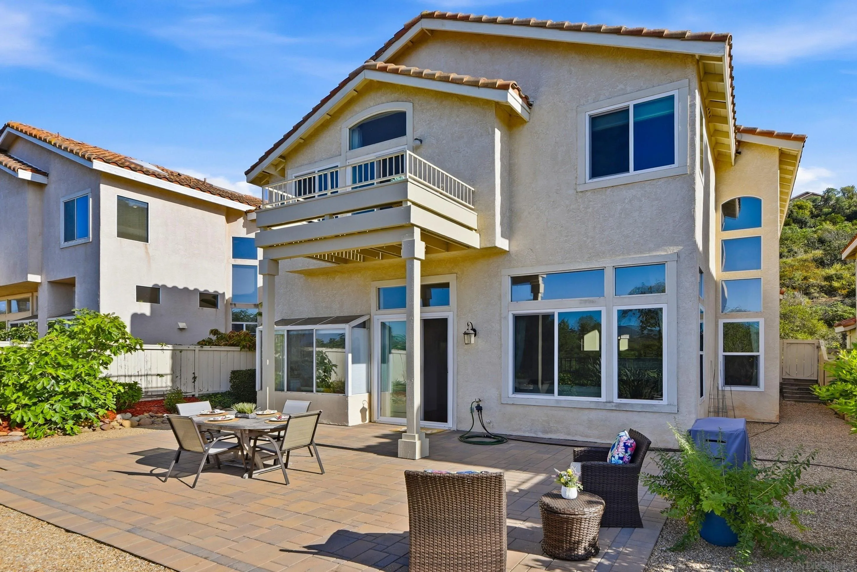 Beautifully maintained 4-bedroom, 2.5-bath home in the highly desirable Rancho Peñasquitos community, nestled within the Woodcrest Hill neighborhood. This light-filled residence features soaring vaulted ceilings, an open and airy floor plan, and a dual fireplace that adds warmth and charm to both living spaces. The remodeled kitchen offers granite countertops, dual dishwasher, wood flooring, a sunny eat-in dining area, and newer dual-pane windows that bring in abundant natural light. Numerous upgrades throughout the home include a newer furnace and AC system, replaced skylight, upgraded electrical panel, Tesla chargers, and a tankless water heater. Upstairs, the spacious primary suite boasts a private balcony with stunning canyon views and gentle breezes, along with dual closets and a luxurious en-suite bathroom featuring a separate tub and shower. The guest bathroom has also been thoughtfully renovated. Step outside to enjoy spectacular canyon views and low-maintenance turf landscaping!
