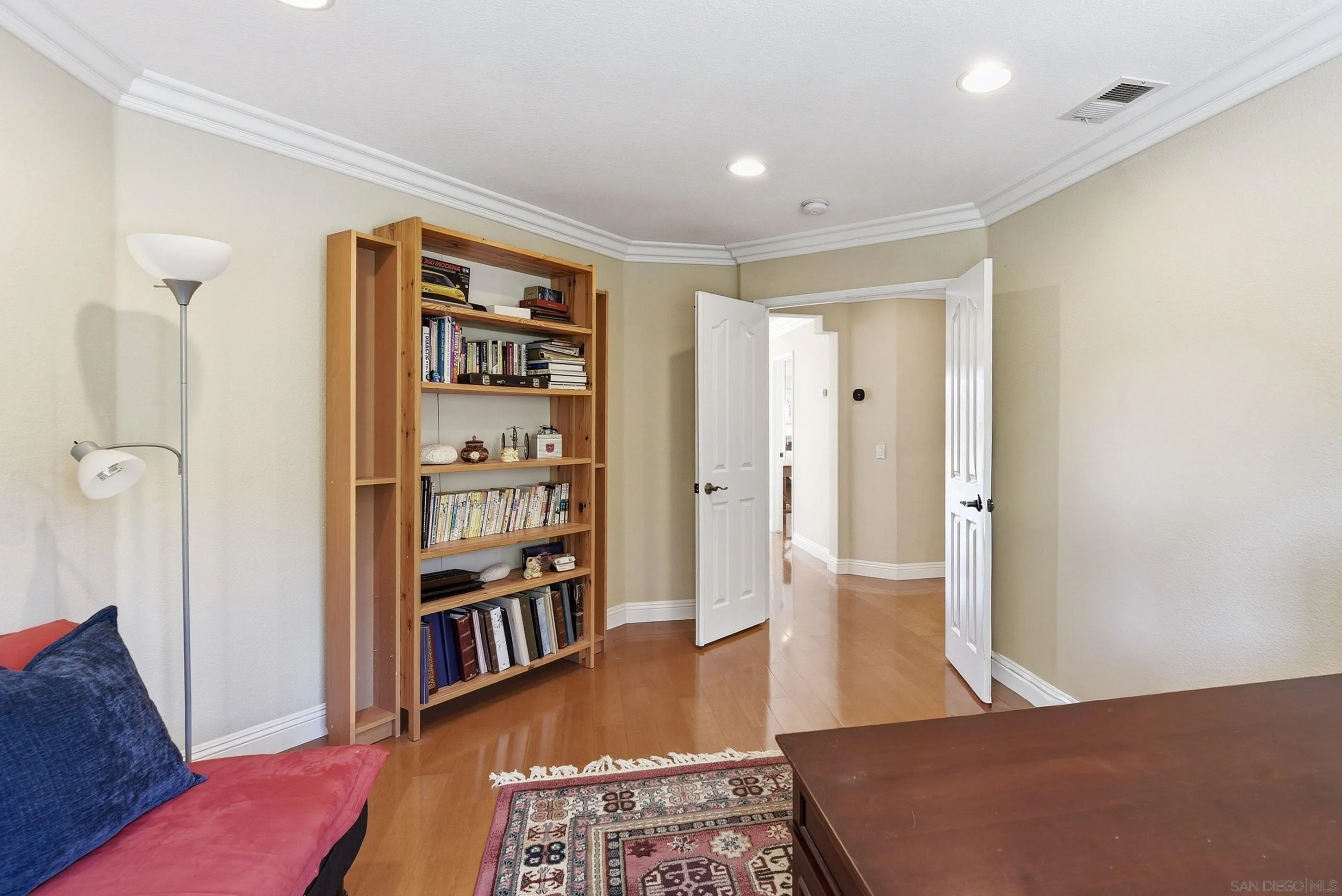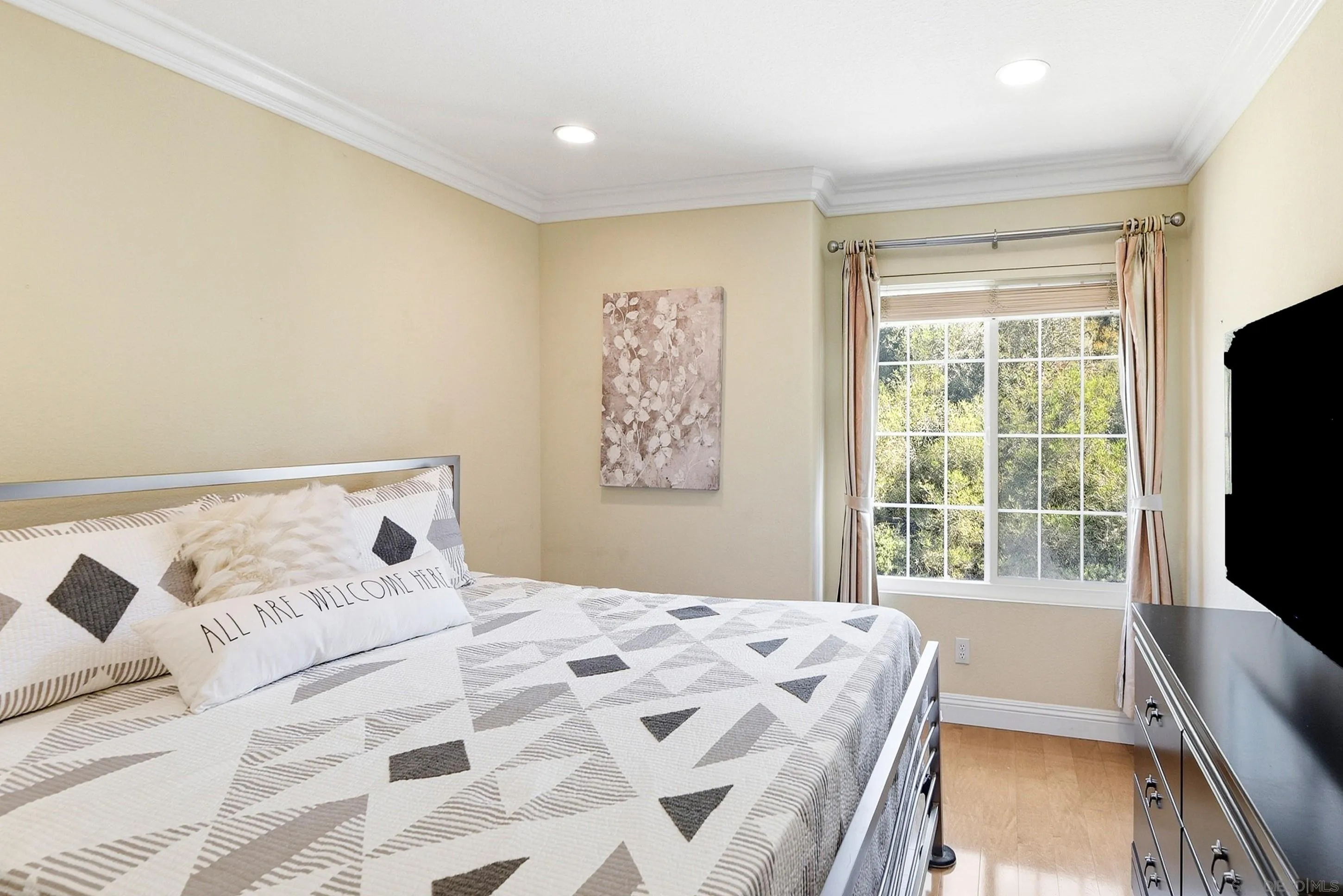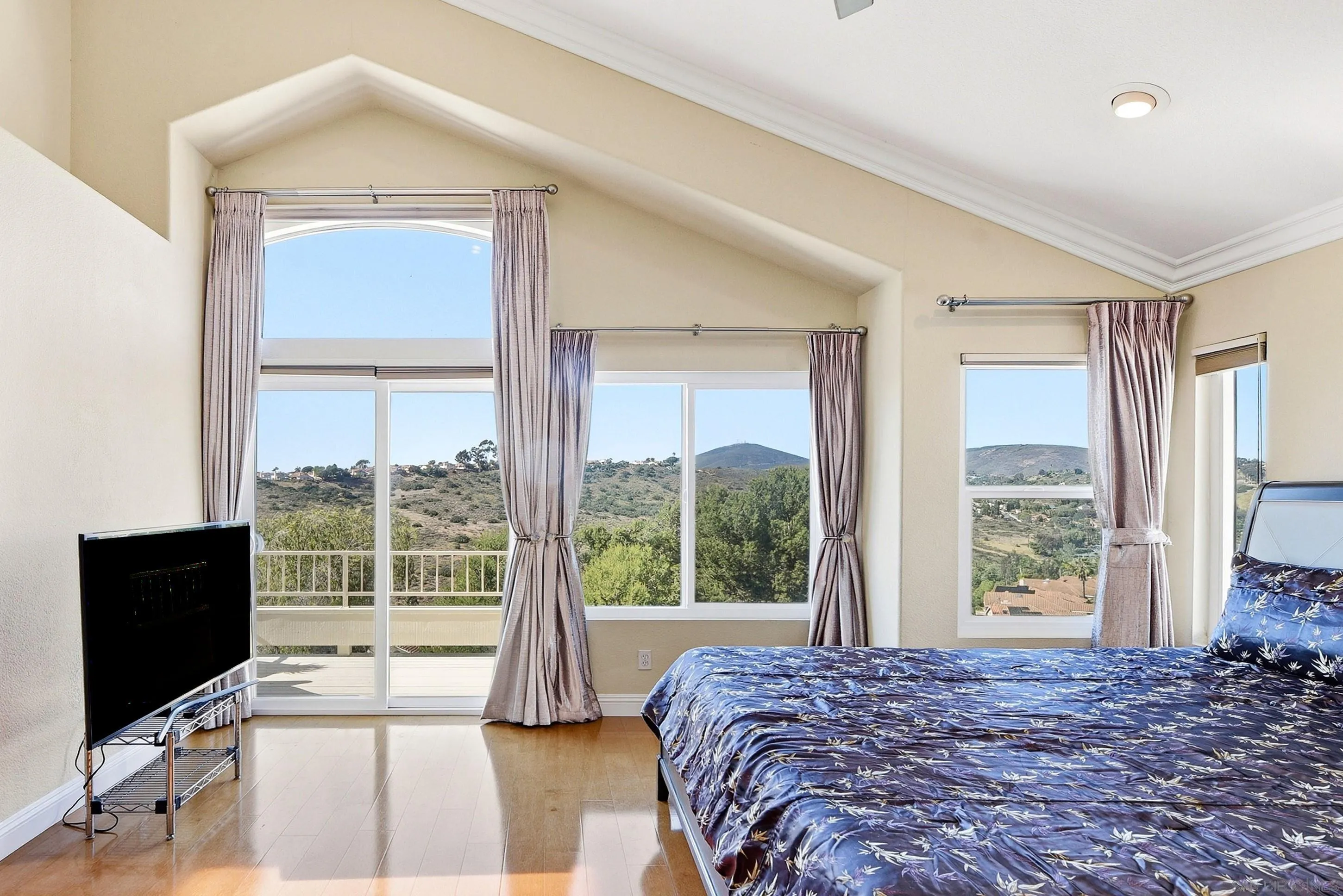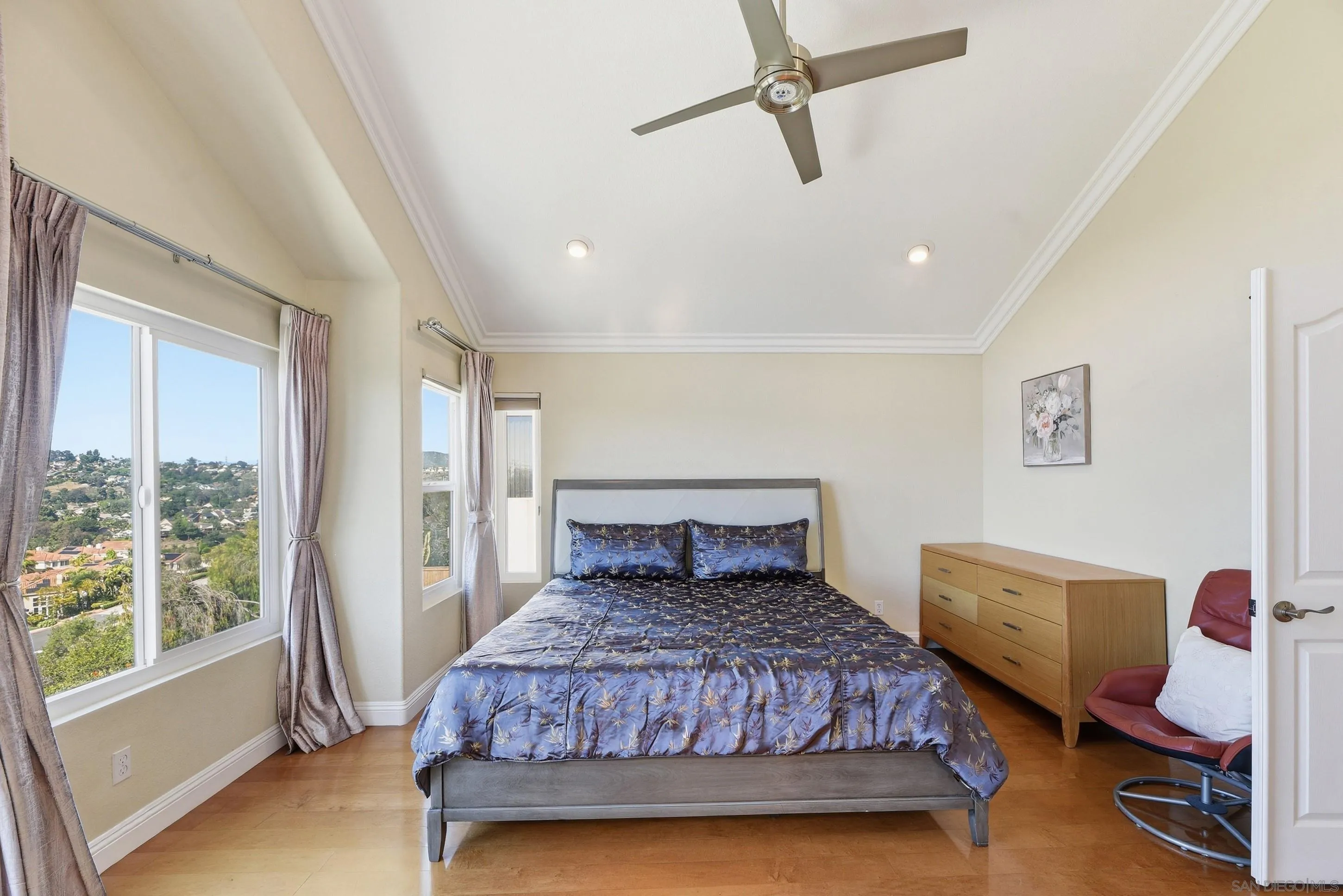 Beautifully maintained 4-bedroom, 2.5-bath home in the highly desirable Rancho Peñasquitos community, nestled within the Woodcrest Hill neighborhood. This light-filled residence features soaring vaulted ceilings, an open and airy floor plan, and a dual fireplace that adds warmth and charm to both living spaces. The remodeled kitchen offers granite countertops, dual dishwasher, wood flooring, a sunny eat-in dining area, and newer dual-pane windows that bring in abundant natural light. Numerous upgrades throughout the home include a newer furnace and AC system, replaced skylight, upgraded electrical panel, Tesla chargers, and a tankless water heater. Upstairs, the spacious primary suite boasts a private balcony with stunning canyon views and gentle breezes, along with dual closets and a luxurious en-suite bathroom featuring a separate tub and shower. The guest bathroom has also been thoughtfully renovated. Step outside to enjoy spectacular canyon views and low-maintenance turf landscaping!