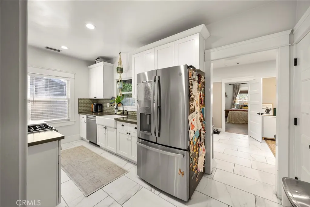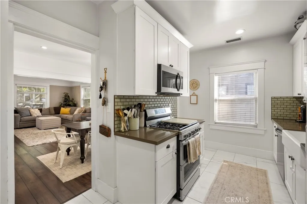 ADU DREAM OPPORTUNITY + PAID-OFF SOLAR + ALLEY ACCESS! Expansive lot with rear alley entry and existing barn creates the perfect setup to build a large ADU with garage, guest house, or income-producing unit (buyer to verify). Whether youre looking to offset your mortgage, create multi-generational living, or develop long-term valuethis property delivers. Located just one block from Downtown San Dimas, this beautifully restored 1912 Craftsman blends timeless character with modern upgrades in one of the citys most desirable neighborhoods. Inside, the home has been thoughtfully remodeled to preserve its historic charm while enhancing everyday living. Features include restored original hardwood floors, a designer kitchen with custom cabinetry, quartz countertops, farmhouse sink, and a statement backsplash. Both bathrooms have been tastefully updated with vintage-inspired finishes that honor the homes early 1900s roots. A versatile bonus room with French doors opens to the backyard deckideal for a home office, creative space, or additional living area. The primary suite offers a walk-in closet, en-suite bath, and direct outdoor access. Step outside to a spacious backyard designed for both enjoyment and expansion. With alley access and a detached rear structure, the layout is ideal for those looking to build a larger ADU with its own garage, separate entrance, and private yardan increasingly rare and valuable setup. Paid-off solar adds immediate savings and long-term efficiency. Commuters will appreciate quick access to the 210 and 57 freeways, making travel to Los Angeles and Or