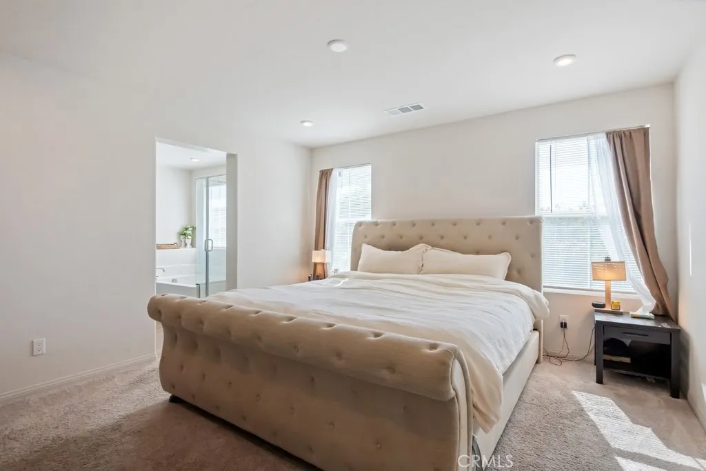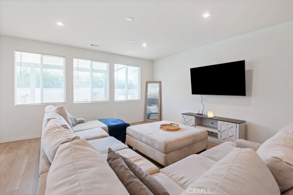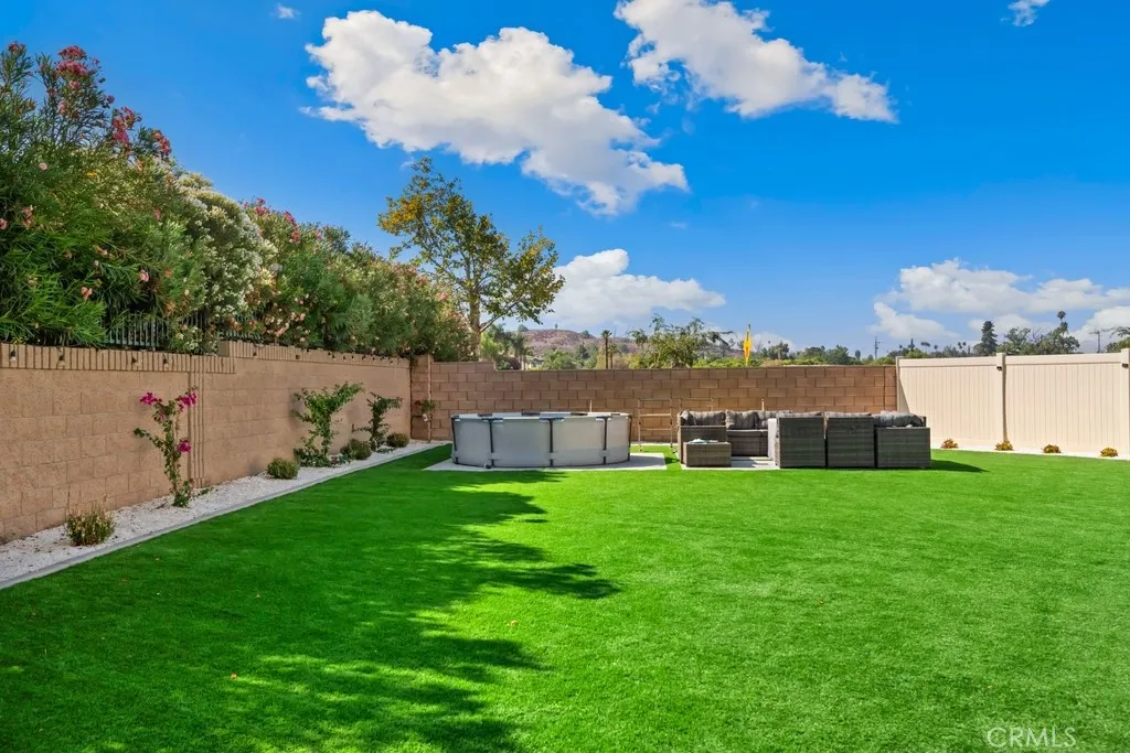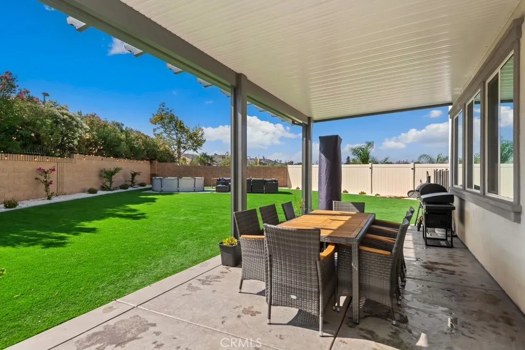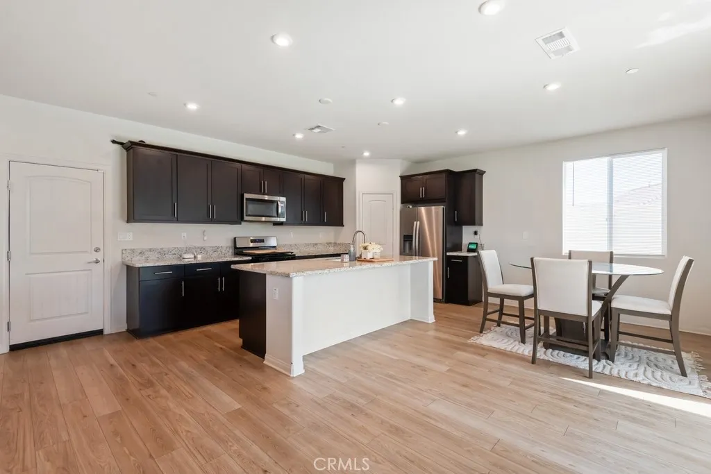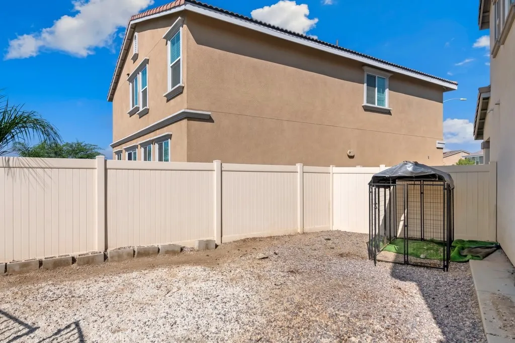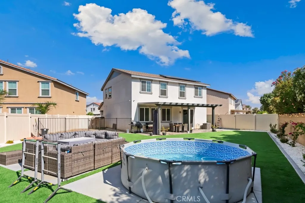 Beautiful 4 bed, 2.5 bath home, recently built in 2023 is ready to be made yours! Located in the Mountain Bridge South Community this home offers Owned Solar Panels, as well as great curb appeal, a spacious interior floor plan with high ceilings, and recessed lights. The Great Room offers lots of natural light with a wall of windows. The living room area opens to the kitchen and dining area. The kitchen features granite counters with a huge kitchen island featuring breakfast bar seating, stainless steel appliances, a pantry, and overlooks the dining area with slider to the backyard. A half bathroom located off of the entry hall, a storage closet, and direct garage access complete the main floor. All of the bedrooms are located on the 2nd floor, along with a large bonus room - great for a game room or movies nights! The huge primary suite has a private ensuite with dual sink vanity, a soaking tub, a separate shower, and a large walk-in closet. There is also a full-size bathroom for the 3 secondary bedrooms to share that offers dual sinks and tub/shower combo, and a laundry room completes the 2nd floor. Enjoy the easy low-maintenance backyard with turf grass, covered patio and gated side yard - this space is ready for the new owner's personal design. Residents also get to enjoy a playground, picnic area, and community grass area. Conveniently located not far from dining and shopping options and located near the foothills of gorgeous Mt San Jacinto!