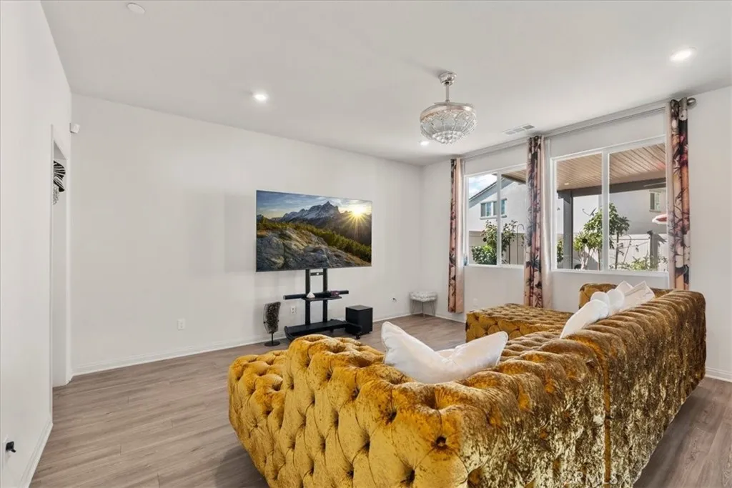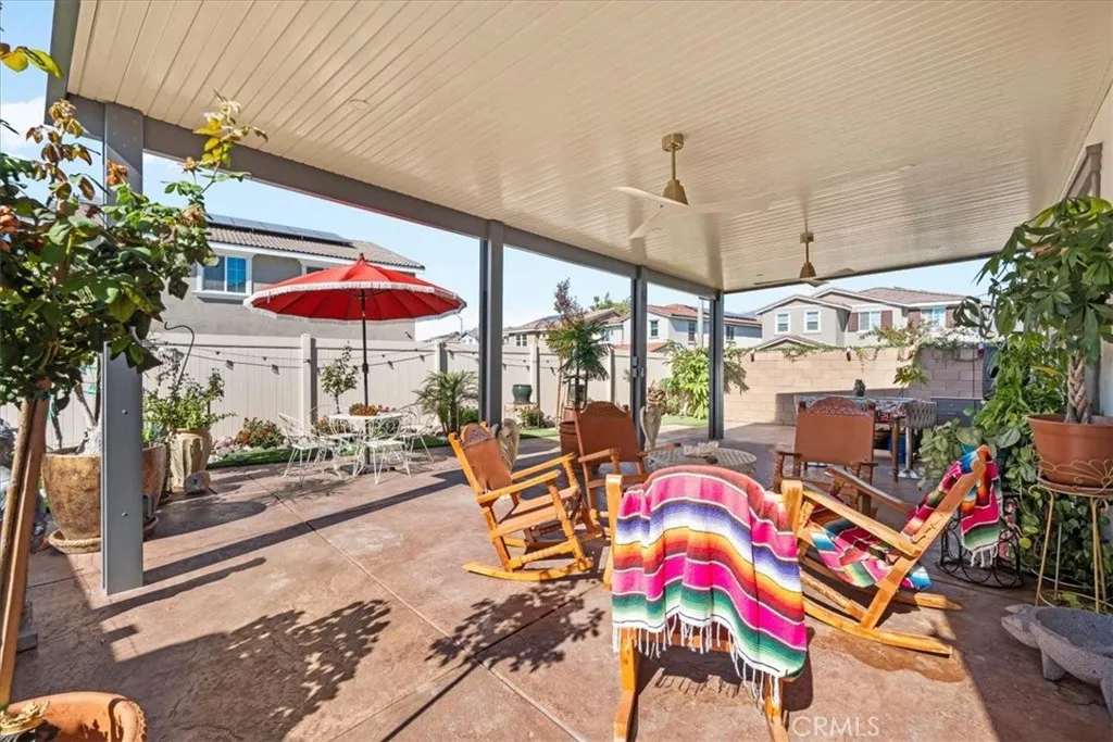 Welcome to freesia Circle, a NEXT GENERATION HOME offering a private suite with its own entrance perfect for extra rental income or in-laws quarter. This home will check all the boxes any buyer is looking for. Located in the Mountain Bridge North community, in a quiet & safe cul-de-sac & in front of community park, this 2023 built home offers more than a new home will, a modern design and energy efficient equipped with 14 fully owned solar panels put this property ahead of many. The backyard has been nicely upgraded featuring a new concrete, patio covered area, and artificial grass landscaped surroundings for easy outdoor enjoyment & low maintenance, amazing to entertain. The main level includes an open-concept layout with a bright living area, dining space, and a beautiful kitchen with a center island and ample cabinetry. A private first-floor suite with a separate entrance, bathroom, and kitchenette & small fridge provides flexibility for guests, multigenerational living. Upstairs, the home offers a large loft, laundry room, and four great size bedrooms. The primary suite includes dual vanities, a soaking tub, a walk-in shower, and a spacious walk-in closet. tankless water heater, this particular property offers parking on the side which is kept up by the owners and offer plenty of space for guests to park. Still under builders warranty, theres nothing missing with this option. This property combines functionality, comfort, and efficiency in a desirable San Jacinto neighborhood.