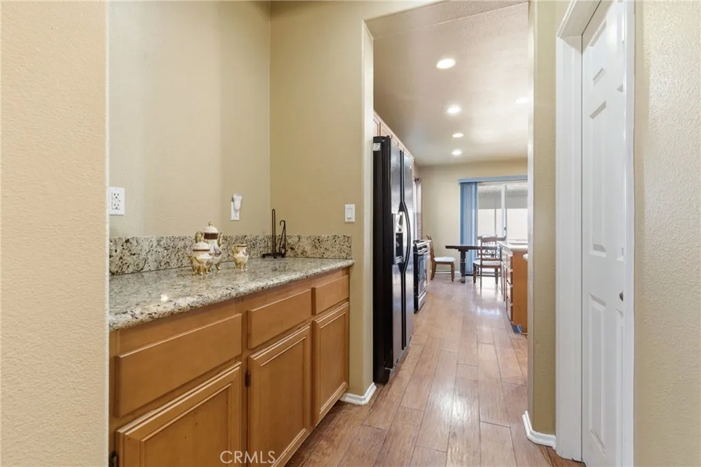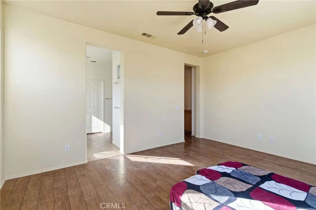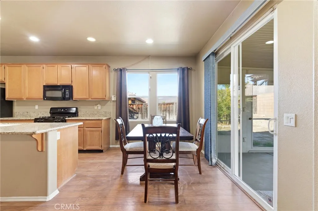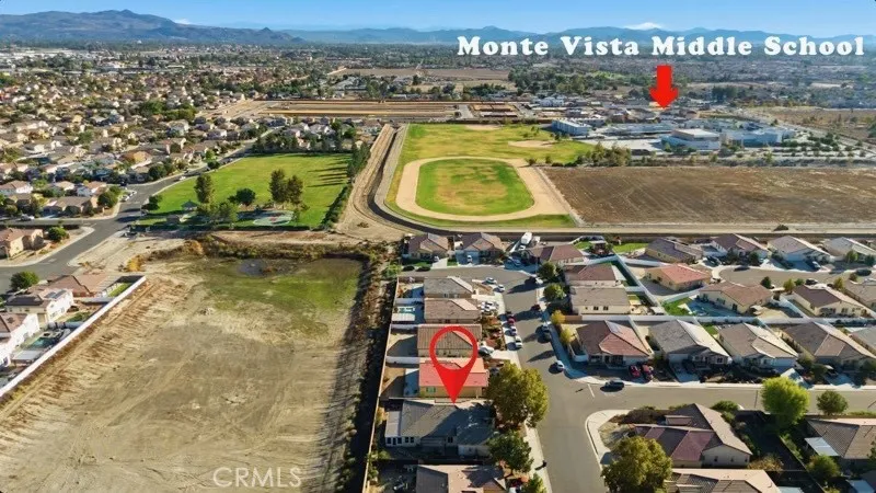 Location, location, location! Discover this spacious five-bedroom single-story home 2.5 bathrooms in a peaceful neighborhood with no rear neighbors. Designed for comfort and practicality, this home boasts an open floor plan and generously sized rooms. The kitchen features granite countertops, a butler area, pantry, large island, and a cozy eat-in nook. A separate formal dining room is perfect for entertaining. Relax year-round in the extra-large fully enclosed patio/sunroom with ceiling fans. Laminate wood flooring adds warmth and charm throughout. The home includes two full bathrooms with dual sinks, and the master bedroom has a walk-in closet. The 3-car garage offers plenty of space for vehicles, storage, or hobbies. Situated in the Mosaic neighborhood of San Jacinto, its just steps from Monte Vista Middle School and within walking distance of parks. Conveniently located near Ramona Expressway for easy commuting. The backyard provides stunning views of San Jacinto Peak. Home is sold as-is, and the buyer must assume the existing solar lease (see supplement). Brand New central 5-ton AC and heating.