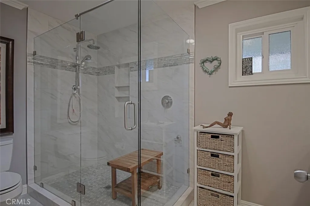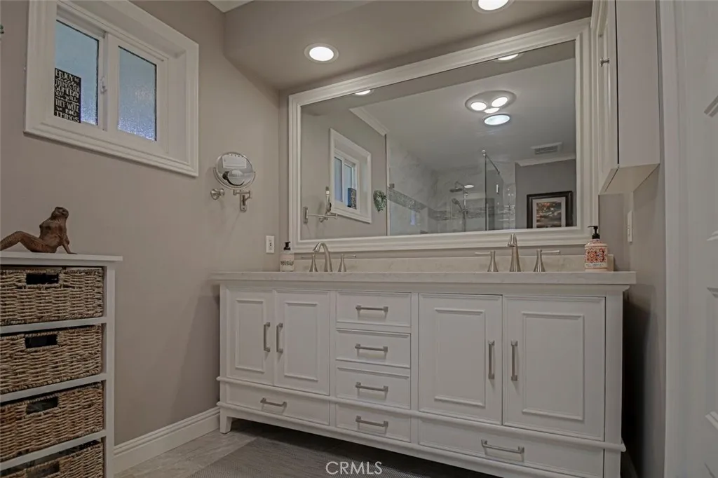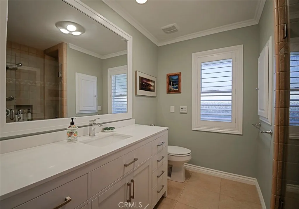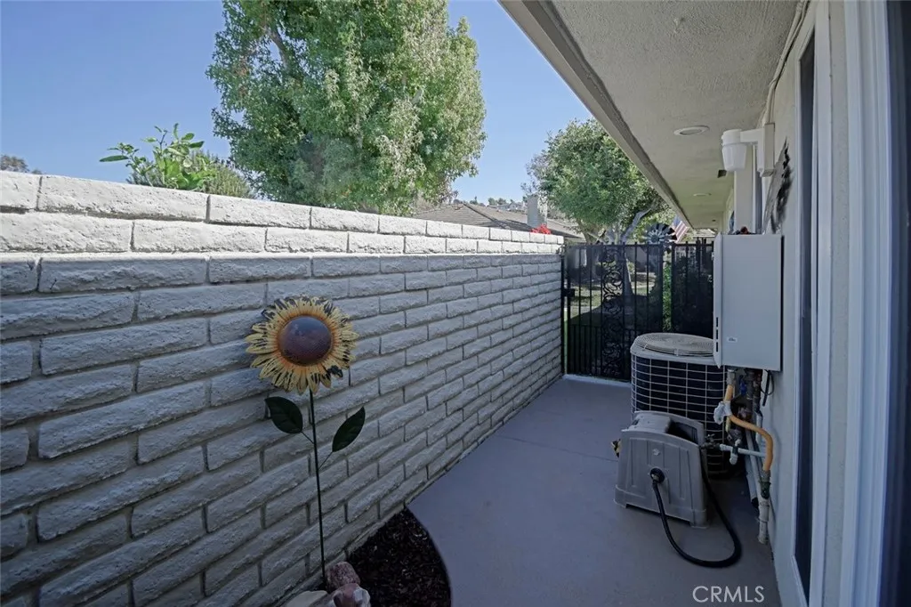 If you are looking for an upgraded and turnkey, move-in ready, single-story home, this is it! Located in a quiet location in the highly desirable age 55+ community of San Juan Hills West adjacent to San Juan Hills Golf Course. Pride of ownership shows throughout this spacious 3 bedroom, 2 bath end unit with upgrades galore! Features included a stacked stone fireplace, plantation shutters, crown molding, luxury laminate wood flooring, recessed lighting, accent track lighting, ceiling fans and air conditioning. The remodeled kitchen boasts custom cabinets, a pantry, stunning granite counters, a large stainless steel sink, a breakfast bar with pendant lights, and stainless steel appliances. You'll enjoy relaxing and entertaining in the large covered and tiled patio that offers a skylight, built-in cabinetry, a convenient laundry closet with washer and dryer hook-ups and a separate storage closet. The primary suite features both a walk-in closet and a mirrored wardrobe closet, an updated bathroom with a large custom tiled shower, and a dual sink vanity with a quartz countertop, and a private patio with a spa. The 2nd bedroom offers a pull-down ladder for access to attic storage, and the 3rd bedroom has a sliding door to a patio overlooking a tranquil greenbelt. The remodeled guest bathroom features a custom tiled shower and an upgraded vanity. This home has been meticulously updated with windows, fixtures, dimmers, energy efficient LED lighting, tankless water heater, completely re-piped, and the electrical panel and breakers have been replaced. The front yard has an inviting t