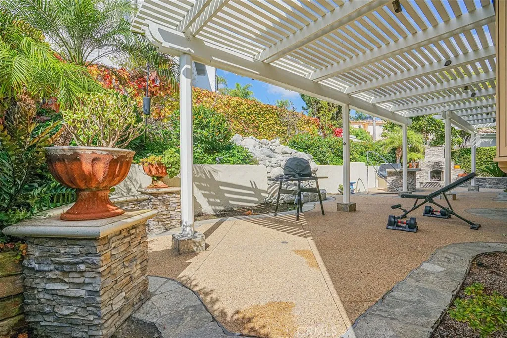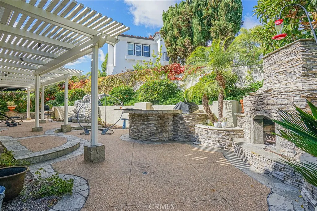 Welcome to 30951 Via Bravo, an elegant home situated inside the prestigious guard-gated Marbella Country Club Estates in San Juan Capistrano. Tucked away on a private cul-de-sac corner lot, this residence combines luxury design, comfort, and a premier country club lifestyle. The chef-inspired kitchen stands at the heart of the home, showcasing custom cabinetry, dual prep islands, professional Wolf appliances including a six-burner range with griddle and pot filler, double ovens, and a 48" Sub-Zero refrigerator/freezer. A farmhouse sink, reverse osmosis system, and bay window complete the space. The open floor plan connects the kitchen to the inviting family room, ideal for gatherings and relaxation. Upon entry, soaring beamed cathedral ceilings and hand-carved 3/4" hickory hardwood floors set a warm, sophisticated tone. The custom wrought-iron staircase leads to a private upstairs library lined with floor-to-ceiling cherry wood built-ins, perfect for reading or quiet work. The primary suite is a true retreat featuring 8-foot arched solid wood doors, dual copper sinks, a jetted jacuzzi tub, multi-head shower, bidet, and a spacious walk-in closet. Throughout the home, custom stonework and an integrated audio system enhance both style and function. Outdoor living shines with a built-in fireplace, rock waterfall, and BBQ bar area surrounded by lush landscapingperfect for entertaining. The property includes a three-car garage and is move-in ready.