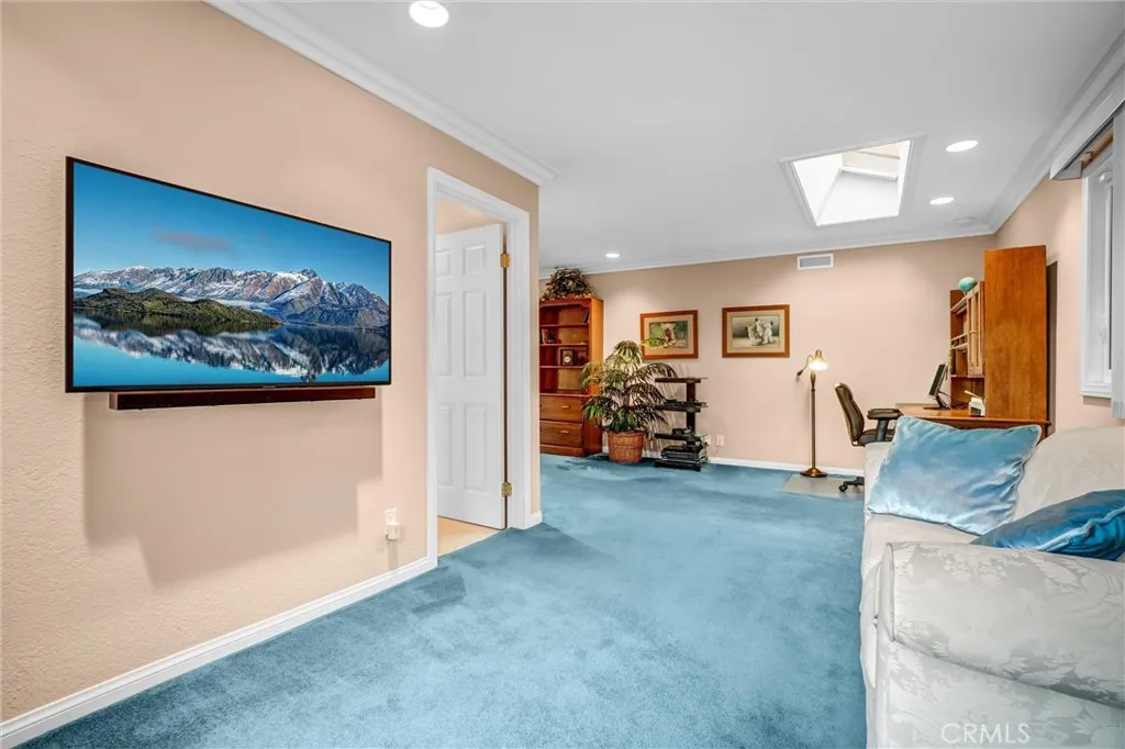 Belford Terrace area 0.4 mi to St. Margarets Episcopal School Owned solar Cathedral ceilings Skylights Major primary bath remodel Large office/Den Synthetic turf yards Three-car garage Set on a 10,500 sq ft lot in the Belford Terrace area of San Juan Capistrano, 31226 Belford Dr. offers 2,851 sq ft of thoughtfully upgraded living space with a focus on light, scale, and long-term efficiency. Cathedral ceilings, skylights, crown molding, recessed lighting, and double-pane windows create a bright interior, while two marble fireplaces provide architectural anchors in the living and family rooms. The expansive downstairs office delivers privacy and flexibility, making it suitable for a variety of uses. The kitchen is outfitted with extensive cabinetry featuring pull-out drawers, Pergo flooring, a Bosch dishwasher, Jenn-Air microwave, oven and stove and generous storage. Plantation shutters, custom blinds, and ceiling fans are integrated throughout the home. Den could be converted back to a fourth bedroom suite... and an added plus it is downstairs. Perfect for a parent or grandparent. The primary suite is designed for comfort and scale, featuring vaulted ceilings, a reading area, enjoy the privacy and comport on the balcony, walk-in closet, and a spacious four-fixture bath with a separate tub and shower. A major primary bath remodel and extended den remodel enhance both function and layout. Additional skylights in the primary bath further elevate natural light. Recent and notable upgrades include an owned solar system, relined interior plumbing with fiberglass-coated pip