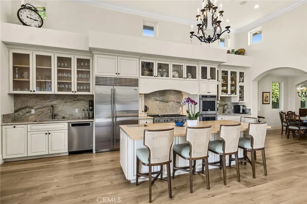 Exceptional single-level home on a sprawling 17,850 sq ft lot with sweeping views of historic San Juan Capistrano and spectacular mountain vistas. This 3-bedroom + bonus room residence that can easily be converted to a 4th bedroom offers lofty ceilings, rich French oak floors, crown molding, and abundant natural light through expansive windows and cantina doors that open to the outdoors. The gourmet kitchen features a massive island with seating, Sub-Zero fridge, Miele 8-burner cooktop, dual sinks, double ovens, a walk-in pantry, and opens to the spacious family room with floor-to-ceiling brick fireplace and seamless indoor/outdoor flow. The primary suite includes a large walk-in closet, direct patio access, soaking tub, dual sink vanity, and an oversized shower with multiple heads. Each ensuite bedroom enjoys private outdoor access. The backyard is designed for both relaxation and entertaining, with patios, garden paths, fire pit, and panoramic views. Additional highlights: large laundry room, 3-car epoxy garage with 220V, dual-zone HVAC, tankless water heaters, whole-house vacuum and filtration, and solid-core doors with designer hardware, gated entry, interlocking paver motor court, and zoning for equestrian use with room for a barn or pool. Just minutes from downtown, train station, beaches, trails, golf, top schools, and dining.