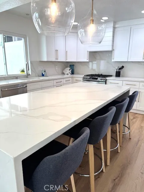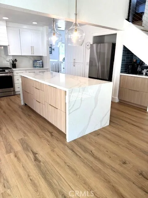 This beautiful home has just been completely remodeled, and it's only 1 1/2 miles to Doheny Beach ! LIVES LIKE A SINGLE STORY home with Primary plus two bedrooms on main floor, with only the 4th bedroom (or bonus room) and a bath on the 2nd floor. New paint inside and out, completely re-piped, new electrical outlets/switches, new lighting, new flooring and baseboards, remodeled stairway, baths and kitchen fully remodeled. Kitchen has dual tone cabinets, 5 burner gas stove, farmhouse sink, walk-in pantry, gorgeous quartz countertops, backsplash, and an 8 foot waterfall island with pots and pans drawers. There's even a built-in coffee bar under the remodeled stairs. The dining area features a wall of contemporary wood design. The upstairs bedroom has a built-in bookcase with desk and a huge walk in closet for lots of storage; It's so large it could also be a great bonus room. Extra large space between houses, large covered patio outside of the huge 10 foot slider with two ceiling fans. Another large patio on the opposite side of the house with propane BBQ. No HOA. Furnace and AC replaced in 2021. Water heater replaced in 2020. Close to the San Juan Creek trail to walk or bike to downtown San Juan Capistrano, the Mission, and to Doheny Beach / Dana Point pier.