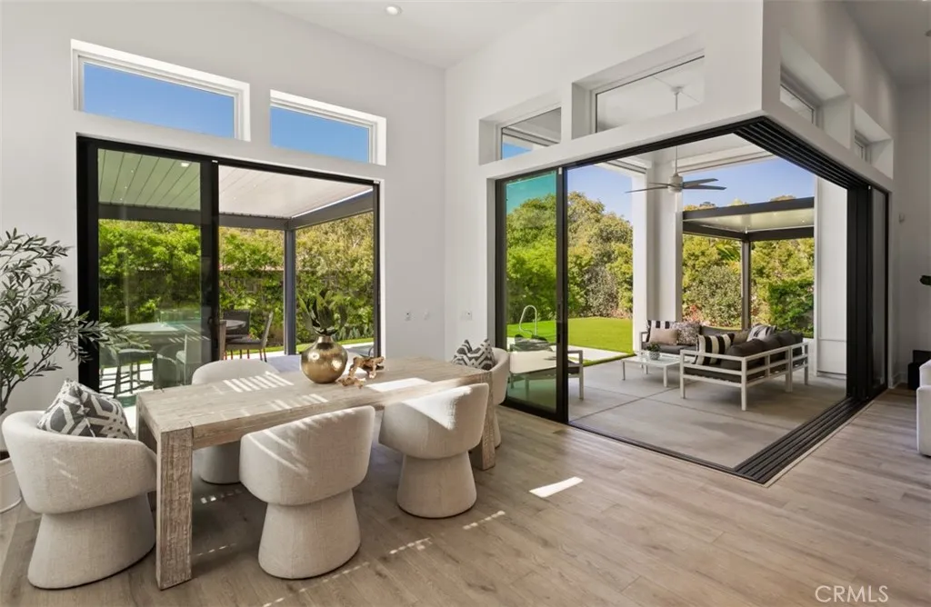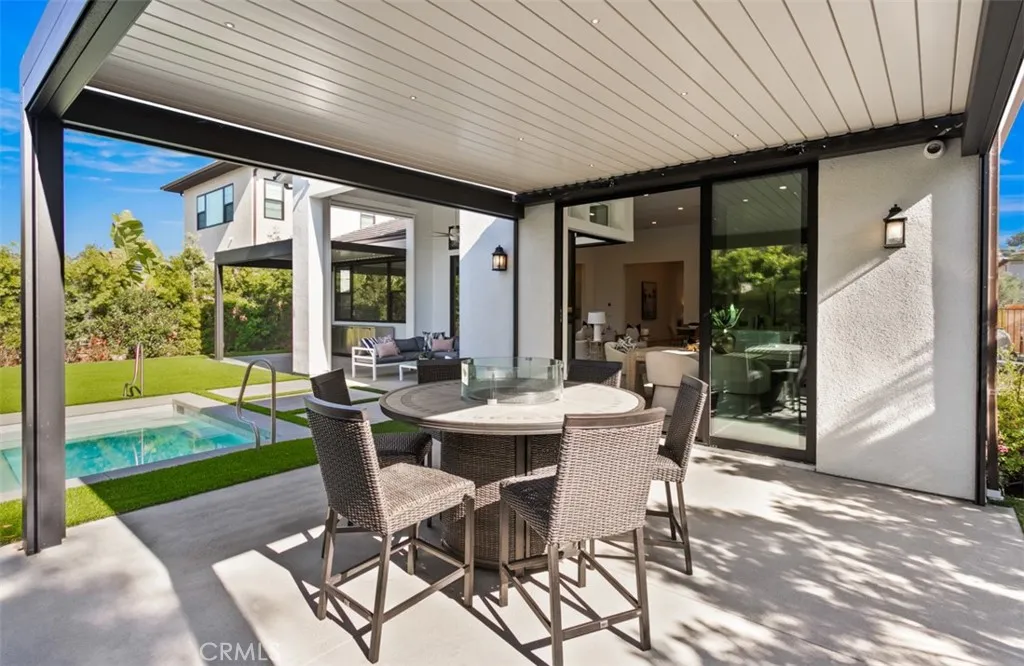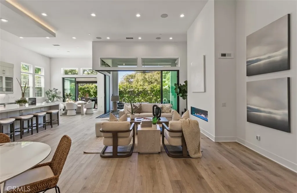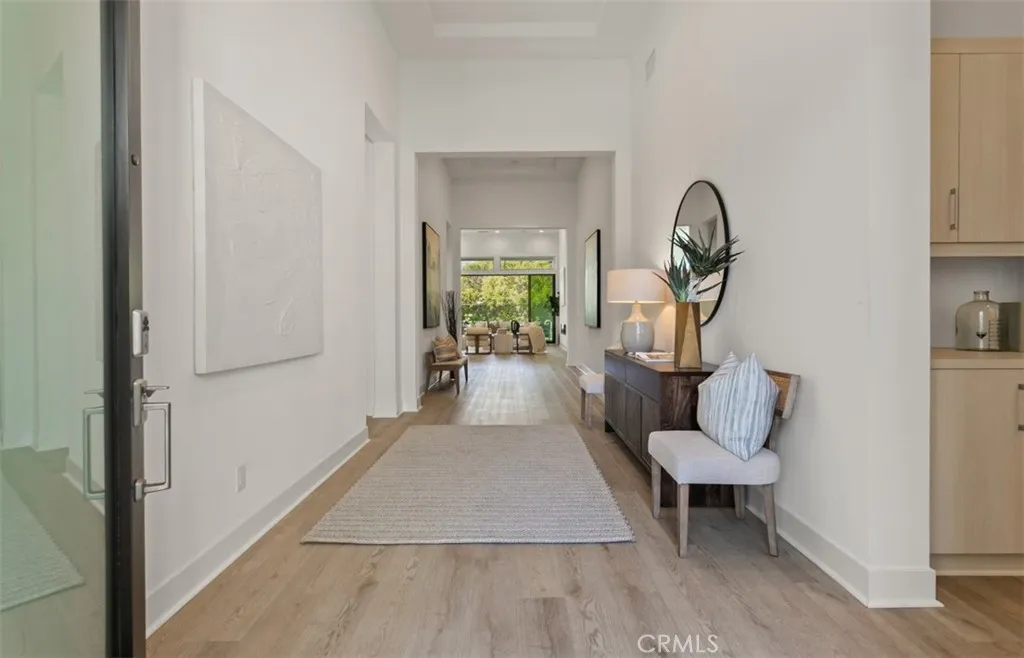 Tucked behind the gates of Pacifica San Juans coveted Ocean Hills enclave, this rare single level elevation model embodies relaxed coastal sophistication. Designed for effortless living and entertaining, the home features four bedrooms and four-and-a-half baths, each guest suite offering its own private retreat with walk-in closet and en-suite bath. The primary suite enjoys tranquil views of the backyard and includes a spa-inspired bath with a sunken tub, separate shower, dual vanities, and an expansive walk-in closet. The heart of the home centers around a light-filled great room with soaring ceilings, French Oak luxury vinyl plank flooring throughout, a sleek fireplace, and disappearing slider doors that seamlessly blend the indoors with the outdoors. The chefs kitchen impresses with a nine-foot island, high-end stainless steel appliances, large walk-in pantry, and abundant storage perfect for gatherings large or small. Hardwood flooring flows throughout, complemented by tile in the baths and a palette of warm, neutral tones that enhances the homes airy ambiance. Outside, two covered patios with an amazing display of electric awnings and shades, overlook a sparkling jetted, heated, plunge pool, creating the ideal setting for sunset dinners or lazy weekend afternoons. Every detail of this refined coastal haven celebrates the beauty of single-level luxury living in San Juan Capistrano.