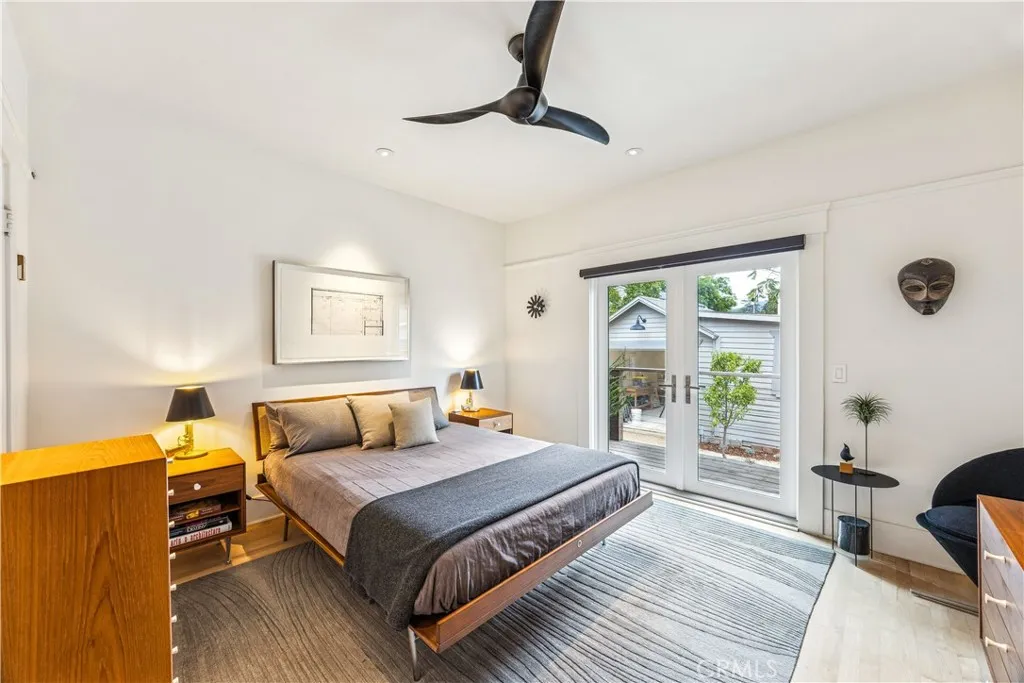 Meticulously renovated 1922 Craftsman bungalow that beautifully blends original character with thoughtful modern upgrades. Fresh interior and exterior paint, all new sound-resistant Anlin windows, original refinished hardwood flooring, original interior molding, and new sound-resistant Anlin French doors opening to two custom-designed redwood decks all contribute to its timeless appeal. Originally built by local craftsman Harry Lyman, the home showcases vintage details paired with contemporary comfort. An inviting front porch leads into the light-filled living room, which flows seamlessly to the dining room with a built-in buffet and French doors that open to a side deck and private office. The updated kitchen features new cabinetry, new Bosch stainless steel appliances, and a cozy breakfast nook, with direct access to the laundry roomcomplete with a Miele washer and dryerand a walk-in pantry that opens to the back patio. Architectural drawings are available that reimagine the pantry area as a second bath connecting to the primary bedroom, offering a great path for future expansion. The home includes three spacious bedrooms and a beautifully updated bath, creating a space that feels both warm and refined. Modern updates include a new HVAC system, all-new electrical, copper plumbing, on-demand water heater, recessed lighting, large closets with new wardrobe systems, a new irrigation system, and a newly installed paver driveway that adds a fresh and welcoming touch. The expansive backyard is thoughtfully landscaped with mature trees, and a pergola creates a perfect outdoor re