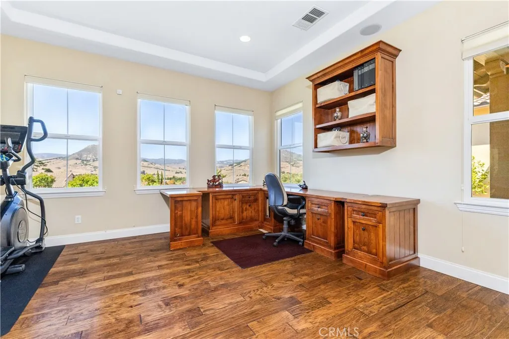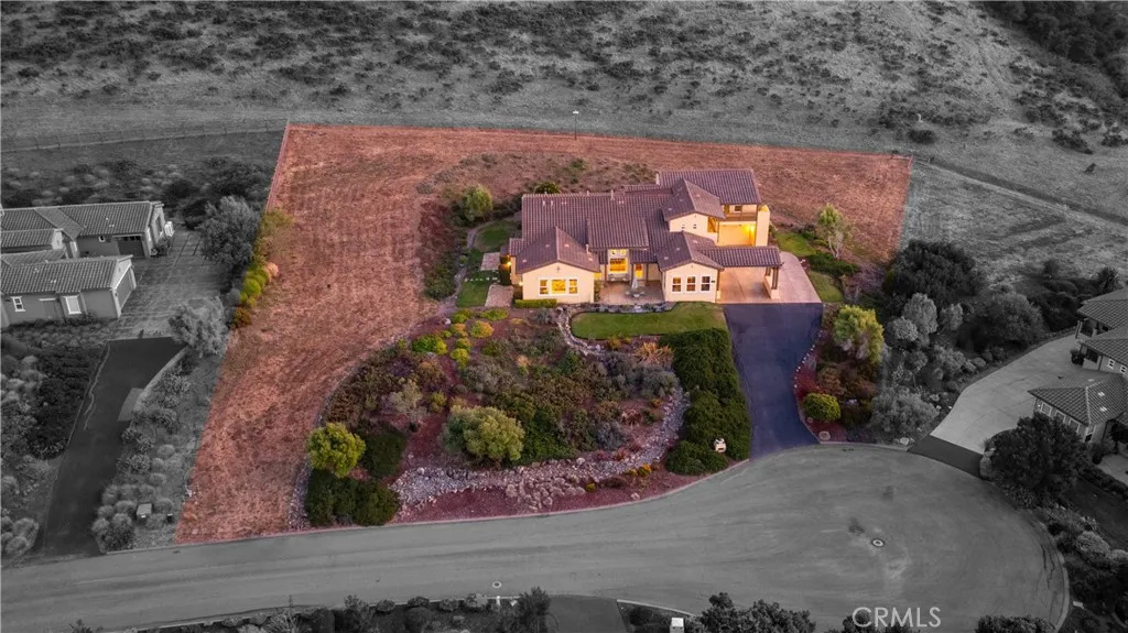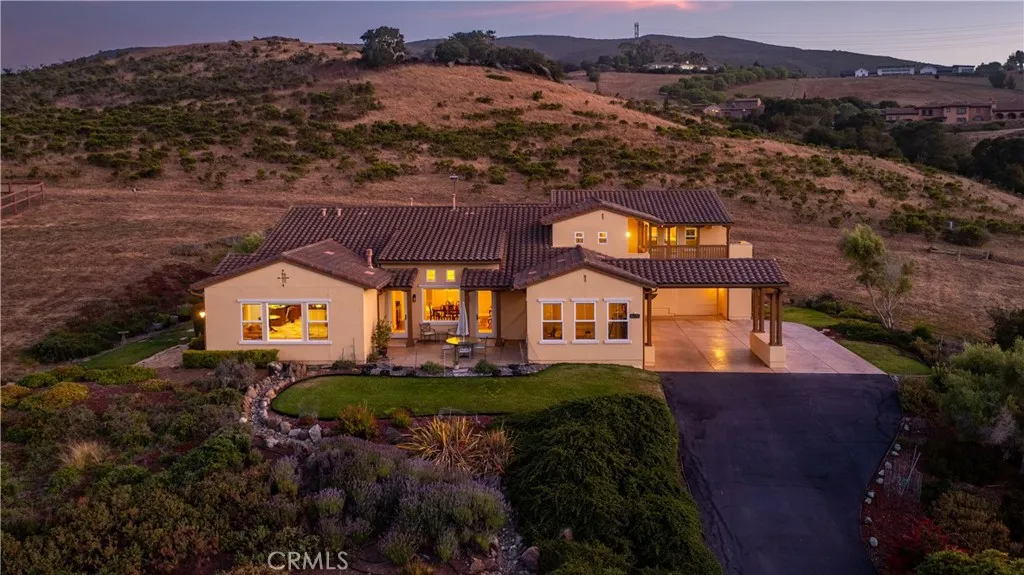 A rare opportunity to live in Valle Vista Ranch, one of the most coveted neighborhoods in San Luis Obispo. With spectacular views of Bishop Peak and Madonna Mountain, this 4,100+ square-foot Mediterranean sits on nearly an acre and borders conservation land, providing boundless privacy while still only minutes from downtown. Featuring 4 en-suite bedrooms, including 2 primariesone on the main floor and a private oasis upstairs with 2 walk-in closets, French doors leading to a large balcony and a show-stopping bathroom with copper fixtures and wet roomthe home is perfect for multigenerational living or for someone who simply wants to stretch out. Boasting high ceilings, cozy fireplace, hickory-wood floors, large picture windows, a half-bath for guests on the main floor and a built-in wine bar with fridge in the dining room, this home epitomizes California luxury living. The open floor plan provides a seamless flow between kitchen and living room, perfect for entertaining. Double ovens, farm sink, walk-in pantry and a 6-burner cooktop with griddle makes preparing festive meals a breeze. Want to take the party outside? The lovely courtyard and separate flagstone patio off the kitchen are ready for your next event. And theres plenty of parking in the 3-car garage or under the Spanish-style porte cochere. All this and a huge home office with built-in cabinetry and endless scenery right outside the window. Come and experience all the best the Central Coast has to offer.