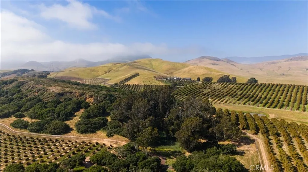 Experience a world of unparalleled beauty, privacy and opportunity at this 637-acre ranch estate, just 5 miles from the Pacific Ocean. Nestled in a secluded San Luis Obispo valley and surrounded by other expansive ranches, this property combines breathtaking landscapes with exceptional amenities for agriculture, recreation, and luxury living. The ranch is in the Williamson Act and features 120 acres of hay and crops, 50 acres of avocado groves protected by extensive windbreaks, rolling oak-studded hills, and grazing pastures. Three wells, a 400,000-gallon reservoir, 2 large tank farms and a sophisticated irrigation system support year-round operations. At the heart of the ranch lies an over 7,400 sq. ft. beautifully built custom main residence completed in 2021. Designed for luxury and comfort, the home boasts 5 bedrooms plus an office, 6 bathrooms, expansive living spaces, tall ceilings and oversized doors, an incredible gourmet kitchen, a recreation room with a bar and pool room, an elevator, 3 fireplaces, attached 4 car garage with workshop and irreplaceable craftsmanship showcased throughout. Adjacent greenhouse, fruit orchards, and gardens surround the home, creating a serene oasis. Complementing the residence and supporting the ranch are several meticulously constructed outbuildings, including an over 11,000 sf insulated shop perfect for an indoor sport court or RV storage, a private airplane hangar with runway access, as well as a hay barn, working barn, and equipment barn, each fully equipped for agricultural and operational needs. Adding to the ranchs functionality
