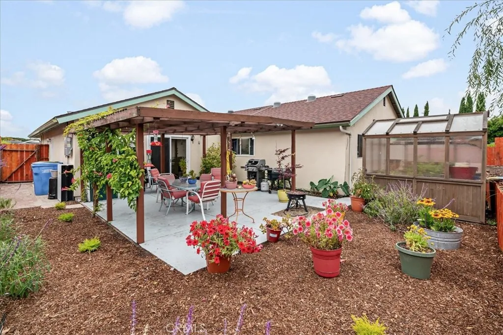 Nestled in a well established neighborhood this SINGLE LEVEL 3 bedroom 2 bath home has been recently refurbished. From the newer roof, vinyl plank flooring, fresh paint inside and out, air conditioning system, water heater, and newer kitchen appliances. The installed solar panels are leased through Sun Run. The living room's wood burning stove creates a cozy ambiance. Dining room looks out to a welcoming patio. There is also a lovely front and backyard with low maintenance landscaping with new fencing surrounding the property. The back yard offer privacy and a large concrete patio and pergola. It includes a green house and shed. There is potential for expansion of a secondary building in the rear yard. The 2 car garage has abundant storage. This location provides easy access to schools, shopping and bus lines. Contact your Realtor to see this home today.