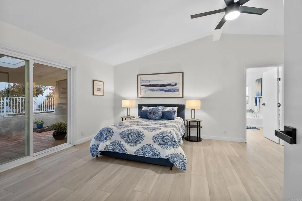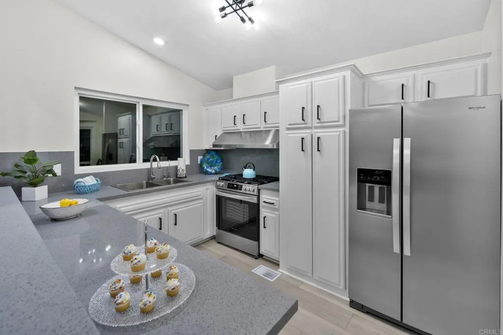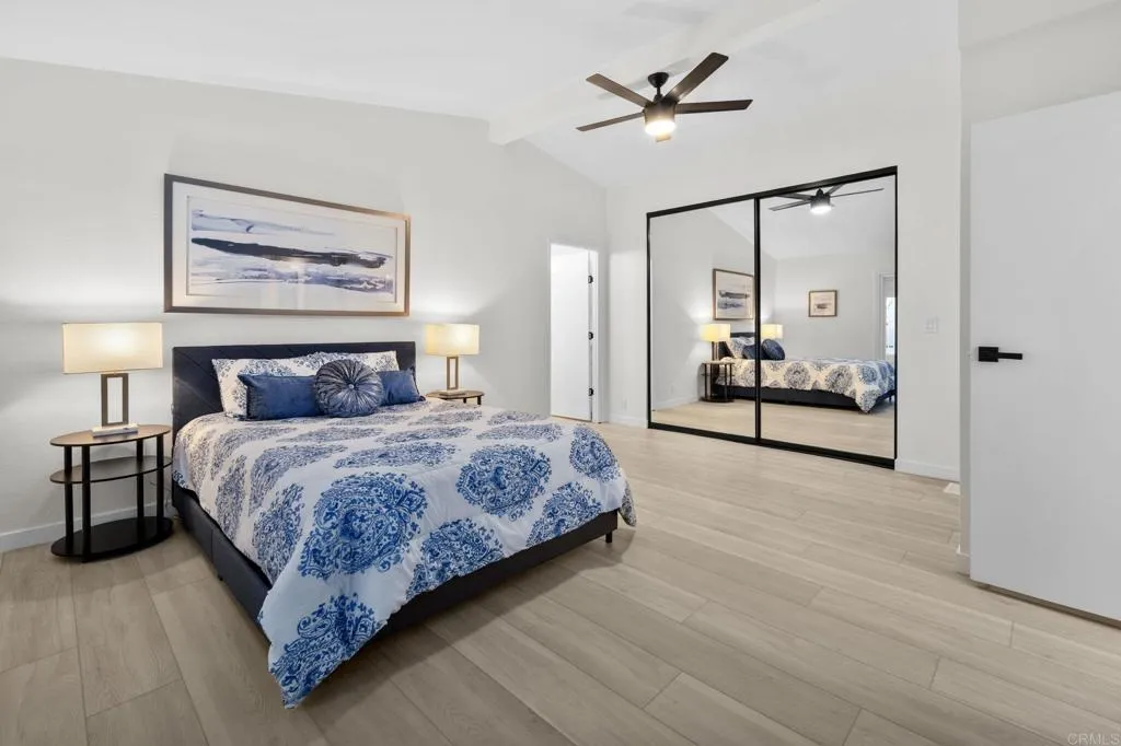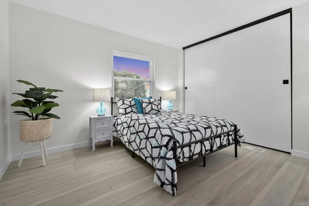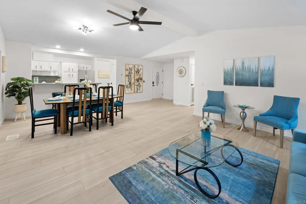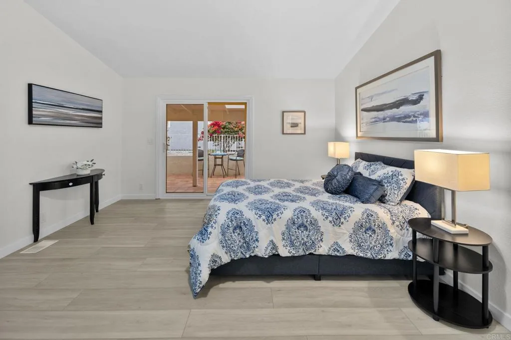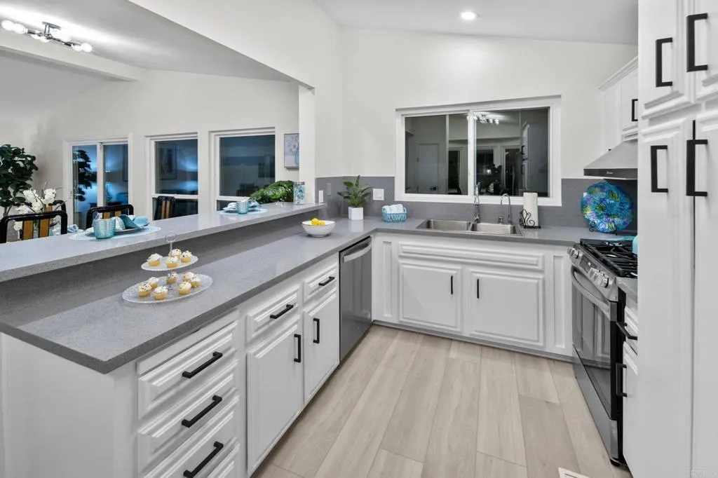 Beautifully Revitalized, Light & Bright 2-Bed/2-Bath Home in 55+ Gated Community YOU OWN THE LAND! Welcome to this fresh and modern 1,400 sq. ft. home nestled in a desirable 55+ gated community, just 8 miles from the beautiful Carlsbad beaches. Enjoy cool coastal breezes, a low HOA of only $199/month, and the rare benefit of owning the land. Step inside to discover an airy open-concept floor-plan with vaulted ceilings, designed for seamless indoor/outdoor living on an oversized lot. The spacious living and dining areas offer the perfect setting for both everyday comfort and entertaining. The revitalized kitchen features granite countertops, freshly painted cabinetry, and all-new stainless steel appliances, including a double-door refrigerator, 5-burner gas stove, and dishwasher. Start your mornings in the charming breakfast nook with a bay window or at the convenient kitchen bar. The beautiful primary suite offers a walk-in closet with mirrored doors and a private patio entrance. The adjacent updated primary bath includes a soaking tub, separate shower, and abundant storage. The second bedroom is bright, inviting, and perfect for guests or hobbies. Additional Upgrades & Features: Freshly painted inside and out All-new wide plank LVP flooring New modern lighting throughout Custom front door with contemporary handle set Dual-pane windows with locks Updated exterior lighting Two large covered patios offering privacy, quiet enjoyment, and ideal spaces for relaxing or entertaining Peace of mind with nighttime security Active community lifestyle with dinners, parties &