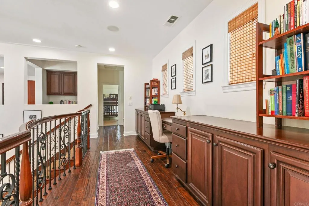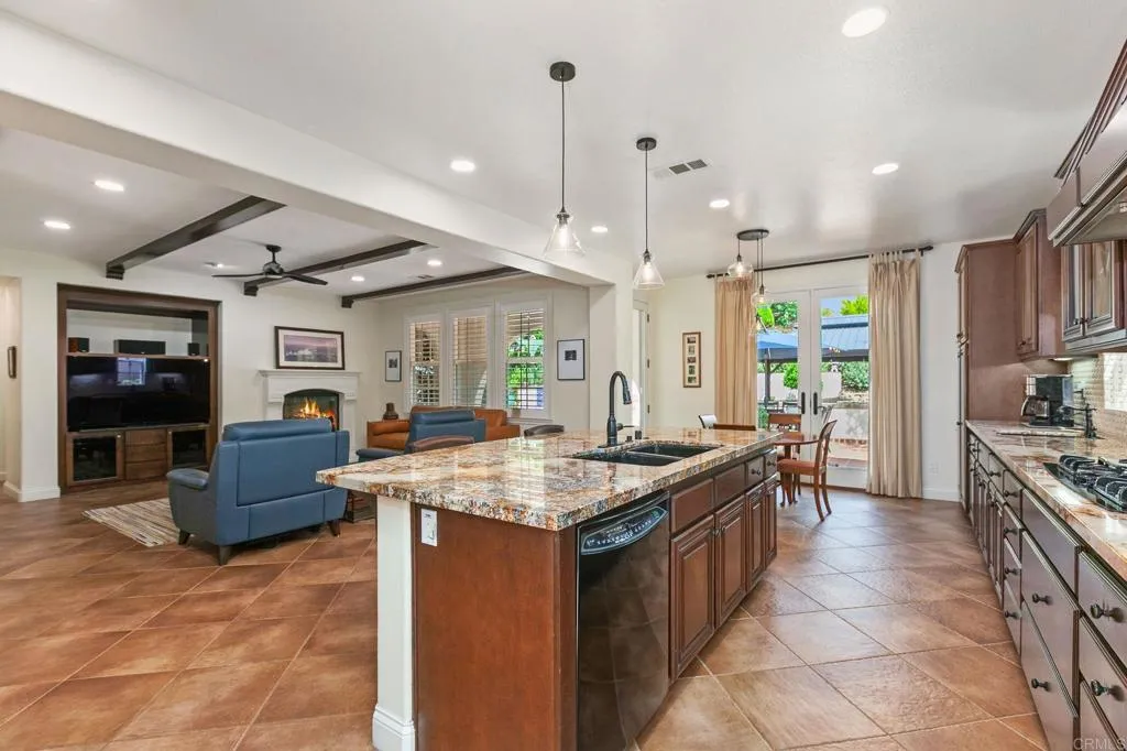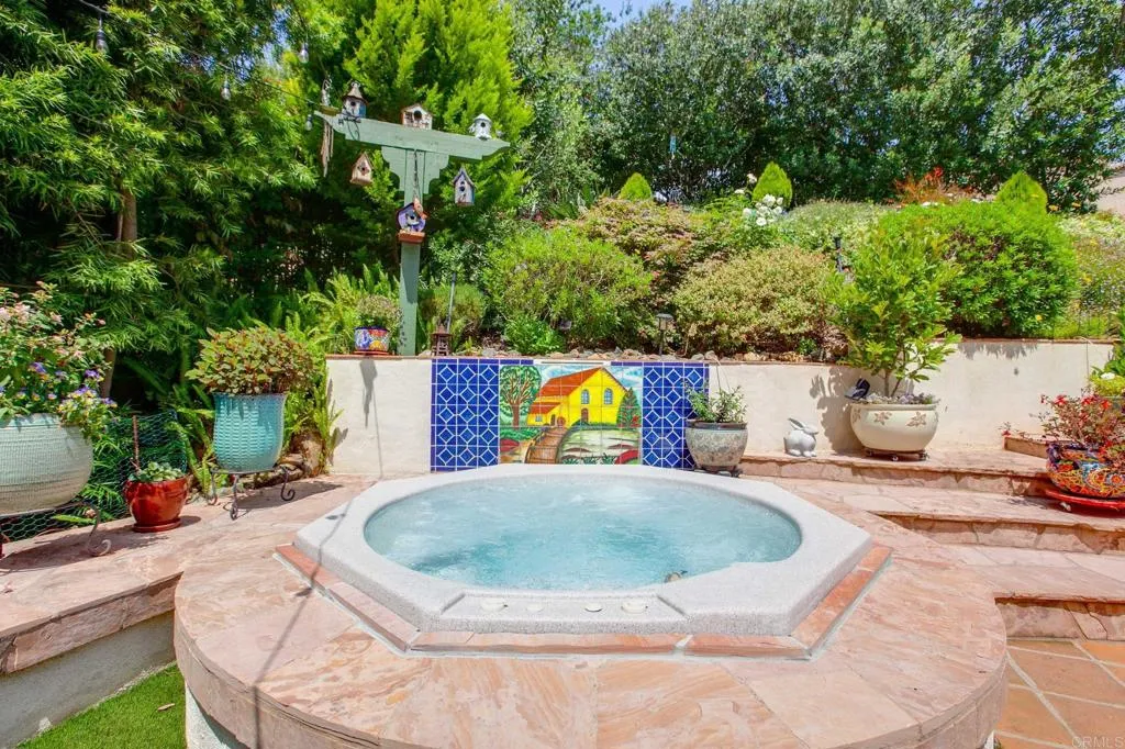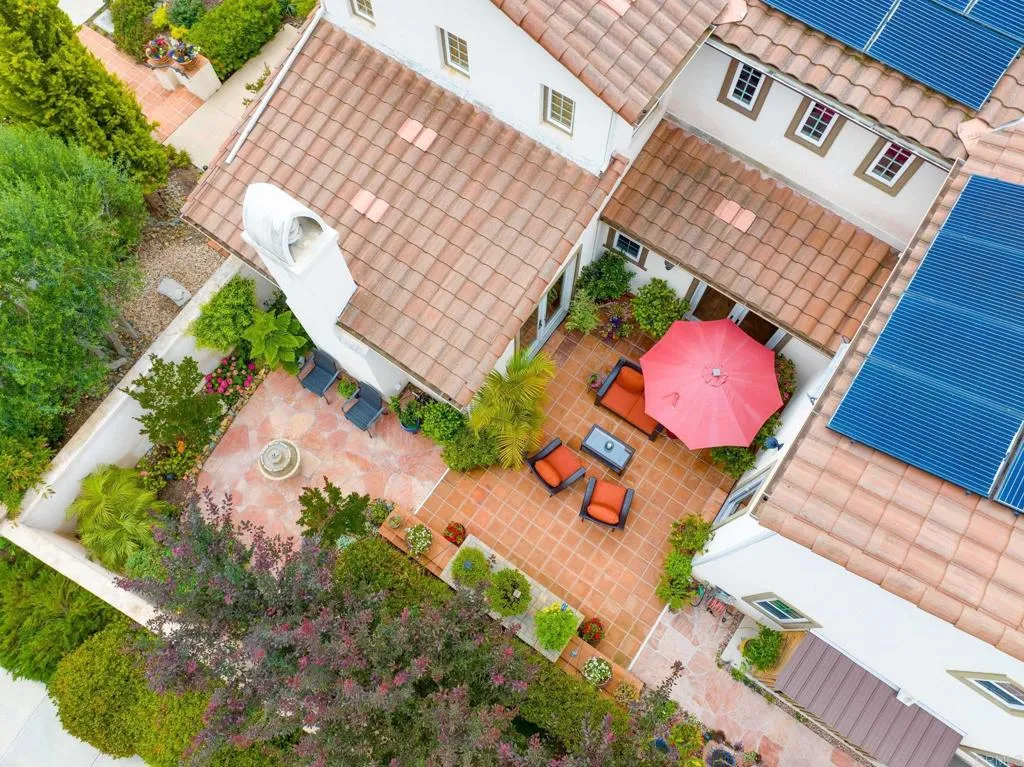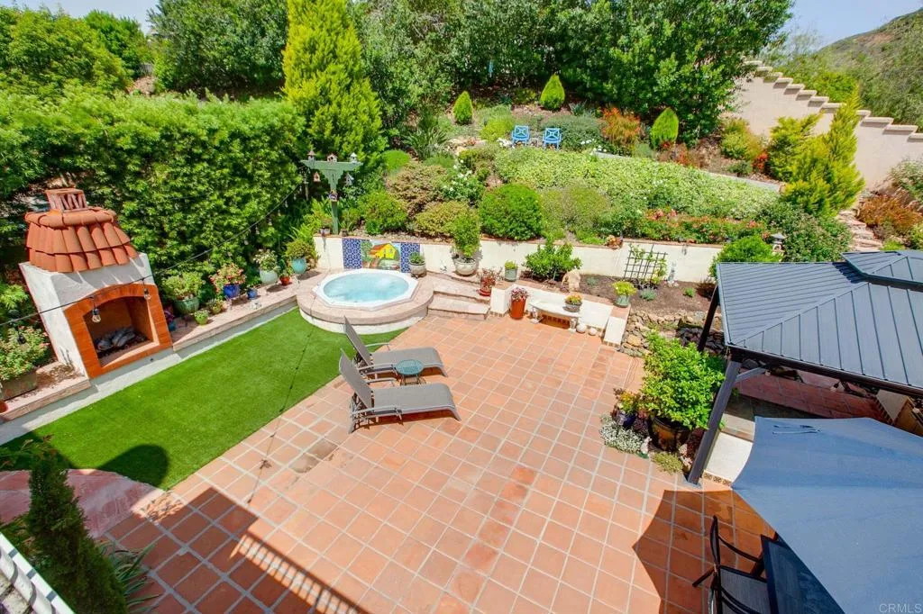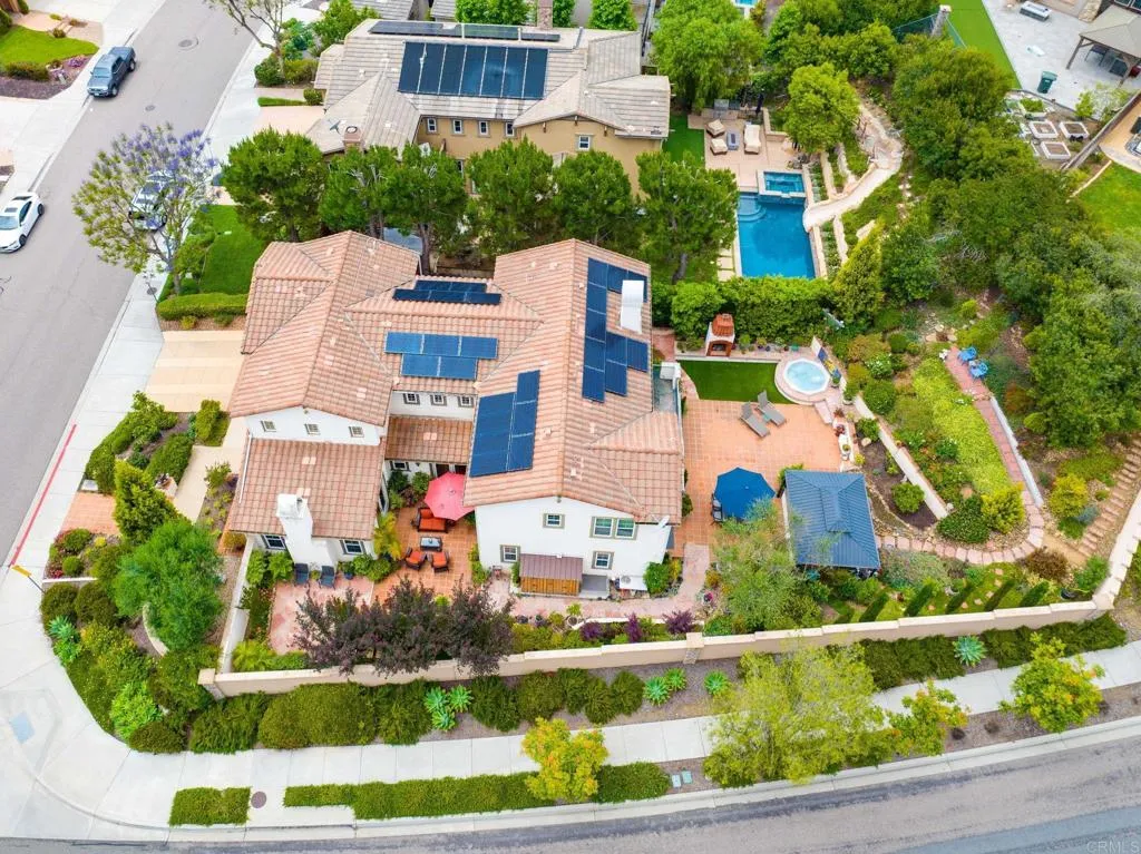 630 Atherton | Elevated Elegance in San Elijo Hills Perched atop Double Peak Ridgeline in the exclusive Atherton enclavethis home is a rare opportunity to own a former model home where timeless design meets thoughtful upgrades at every turn. This expansive, family-friendly residence showcases premium upgrades, curated to elevate everyday living. From the moment you arrive, lush, meticulously maintained landscaping sets the tonethis home is a true gardeners paradise, boasting hundreds of flowering plants, mature trees, and succulents. The gardens transform into a glowing oasis by nightan experience that must be seen to be believed. Inside, designer finishes create a seamless blend of style and function. Custom hardwood cabinetry, rich granite countertops, and elegant French doors flow throughout the home. A gourmet kitchen equipped with GE Profile appliances and modern lighting opens to multiple outdoor patios, ideal for relaxed gatherings or grand-scale entertaining. Smart living meets stylish comfort: enjoy a fully paid solar system that saves thousands annually, whole-house built-in speakers and keyless entries The backyard is an entertainers dream: unwind in the custom spa and waterfall, gather around the outdoor Tuscan fireplace, and grill and entertain with easeall framed by low maintenance turf and tranquil surroundings. Upstairs, the luxurious primary suite offers a private balcony overlooking the lush yard, a spa-like bath with a soaking tub, frameless glass shower, built ins and custom tilework. A built-in desk area is ideal for a library or work-from-home space, w
