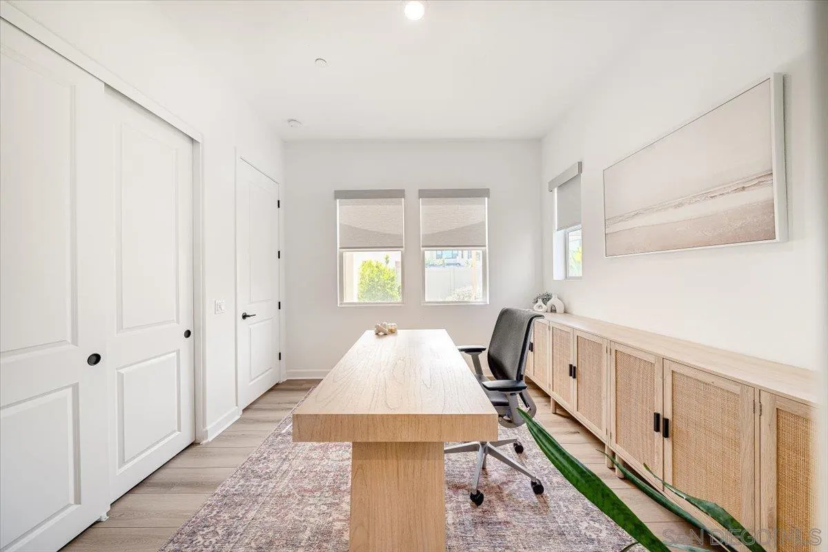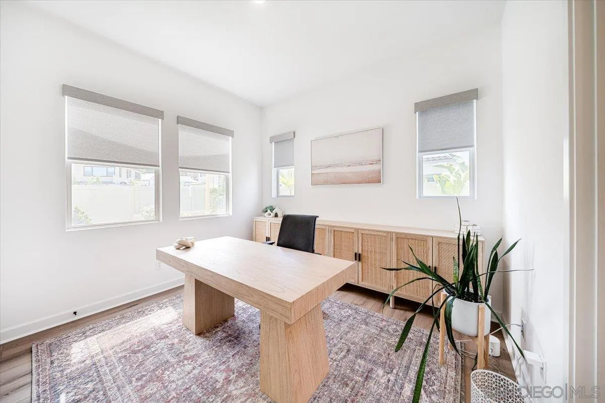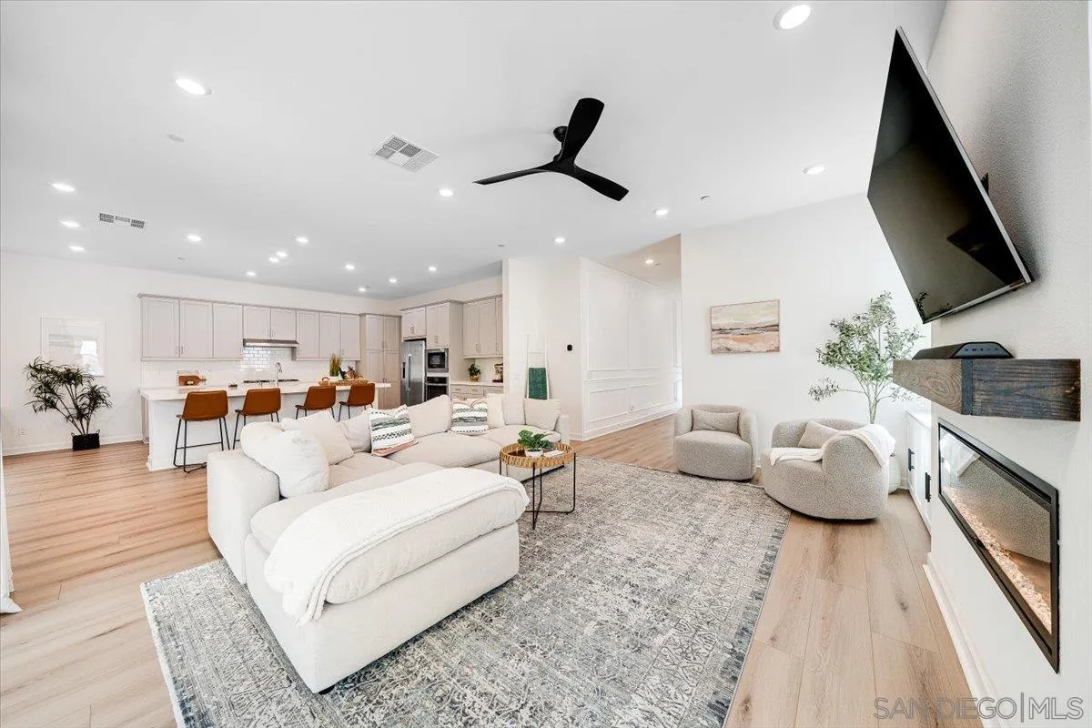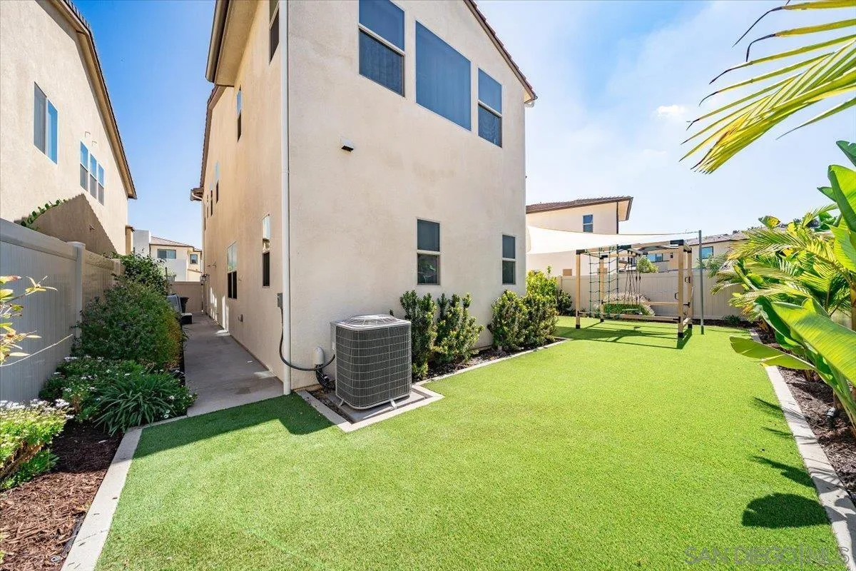 Welcome to luxury living in the premier enclave of Parkside @ Mission Circle in San Marcos, where modern design meets everyday comfort in an exclusive newer neighborhood. This beautifully crafted 5-bedroom, 4.5-bath stunner elevates style at every turn, featuring 10-foot ceilings and stunning designer finishes throughout. Wide-plank designer flooring sets a sophisticated tone, while custom window blinds add a tailored, upscale touch to every room. At the heart of the home, the chef-inspired kitchen offers abundant counter space and exceptional cabinet storage, designed to keep everything organized while still feeling open, bright, and inviting. Whether you’re hosting gatherings or enjoying a quiet night in, this space effortlessly blends function and elegance. The primary suite is a true retreat—generously sized and thoughtfully designed for relaxation. The spa-like primary bathroom invites you to unwind with luxury finishes, while the expansive walk-in closet is a showstopper in itself, featuring a custom-installed closet system and more storage than you could dream of. Additional bedrooms are well-appointed, offering flexibility for guests, family, home offices, or creative spaces. Every corner of this home has been designed with comfort and livability in mind. Step outside to a beautifully curated backyard featuring custom landscape design, easy maintenance greenery, and a built-in play structure perfect for endless fun and imagination. Garage has soaring ceilings w/ built-in storage cabinets & over head storage. Owned SOLAR, Two 220 outlets in garage for EV's. Upgrades!