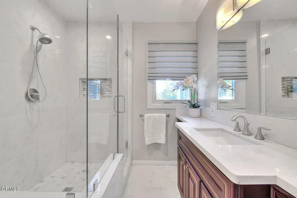 Nestled in prestigious North San Marino, this south-facing residence offers exceptional privacy, refined craftsmanship, and the timeless charm that defines the area's most desirable homes. Set behind exclusive gates, the property is introduced by mature landscaping, including rose gardens, sculpted olive trees, citrus varieties, crepe myrtles, and flowering shrubs framing an expansive front porch and flagstone patio ideal for relaxed outdoor living.Inside, the home unfolds with effortless sophistication. The grand living room features a striking fireplace and dramatic picture windows overlooking the verdant backyard. The beautifully updated kitchen offers granite countertops, travertine backsplash, recessed lighting, and premium stainless-steel appliances. A bright breakfast room with custom cabinetry and plantation shutters provides a peaceful space to enjoy morning coffee with views of the gardens.The spacious formal dining room is adorned with an elegant chandelier, designer sconces, and French-style plantation doors. The stately family room includes a brick fireplace, custom built-ins, and garden views. Adjacent is a generous laundry room with granite counters, extensive storage, and an upgraded powder room.The primary suite is a serene retreat with dual oversized closets, windows on three sides, and a private office perfect for reading or quiet work. The luxurious updated bath features a frameless glass shower with niche, quartz-topped cabinetry, a tub, and upgraded windows. Two additional bedrooms--one with a brick fireplace and built-ins--overlook the manicured backy