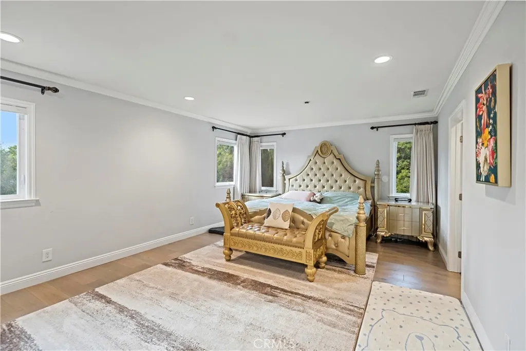 This stunning modern estate was completely reimagined and finished in 2015, set on a 21,000+ sf land in the citys most desirable neighborhood. The spacious living room boasts a soaring ceiling and a striking circular bay window, while the gourmet kitchen includes a separate enclosed wok room. Family room with expansive French doors leading to a relaxing outdoor patio. Two spacious bedrooms on the first floor and three luxurious suites upstairs. The beautifully landscaped backyard features a private basketball court and golf practice area, while the side yard is an entertainers dream with a fountain pool, BBQ station, and patio. Eco-conscious upgrades include newly installed solar panels (2021). Property is well maintained in a great condition. Do not miss this opportunity to make it your dream home!