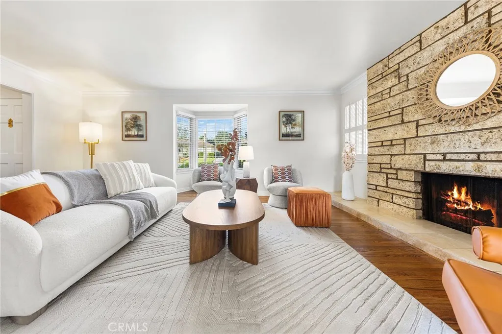 Located in the highly sought-after San Marino School District, this charming traditional home sits on a quiet cul-de-sac and blends classic character with subtle mid-century flair. The bright living room features a picturesque bay window, crown moldings, and a chic floor-to-ceiling custom stone fireplace, while the dining area opens to a sunny sunroom that provides flexible space for everyday use. The functional kitchen with a separate laundry room offers a solid foundation for future customization. All three bedrooms are filled with natural light and well-proportioned, and both bathrooms are cheerful, with the primary bath offering a more contemporary feel. The entire interior has been freshly painted, enhancing the homes warm and inviting ambiance. The backyard is a relaxing retreat, with a grassy lawn surrounded by mature landscaping leading to a fenced pool and cascading spa. The streamlined cabana provides a comfortable outdoor lounge and entertainment space with counter area, sink, under-counter refrigerator, cabinetry, lighting, ceiling fan, and a convenient half bath. Additional features include beautiful hardwood floors, an updated electrical panel, and updated central air and heat.