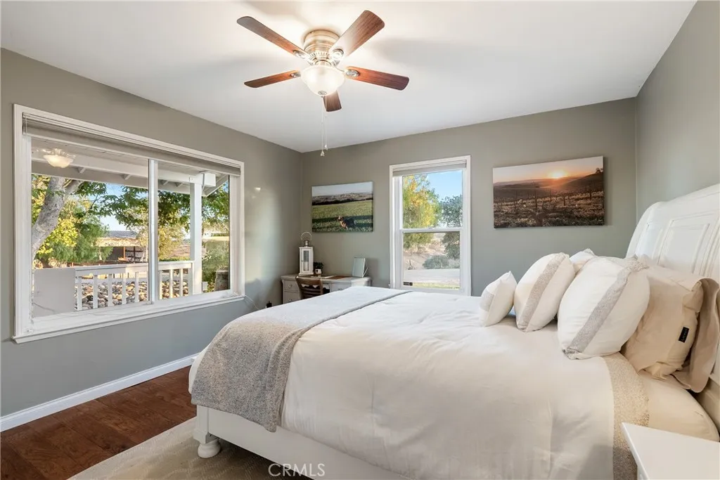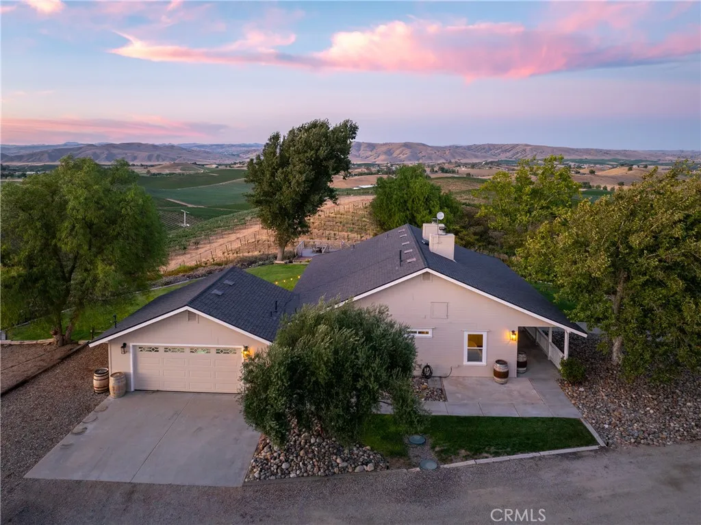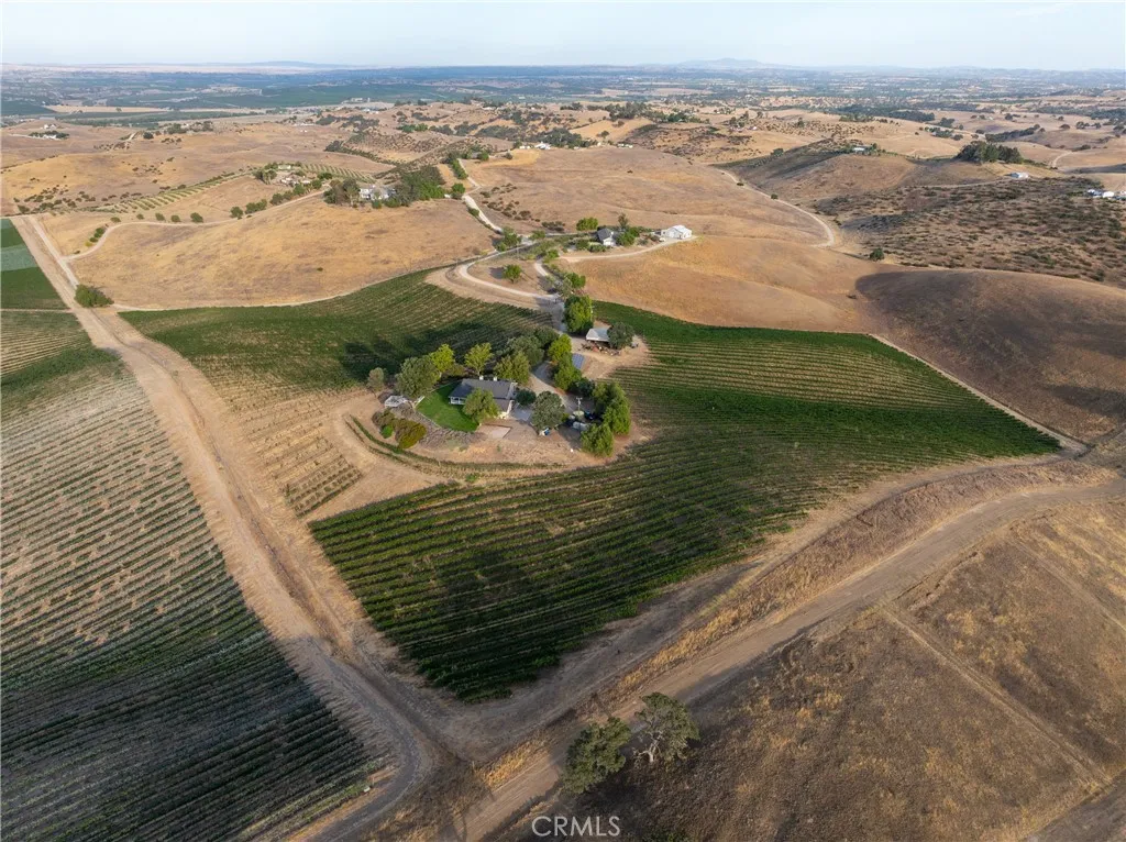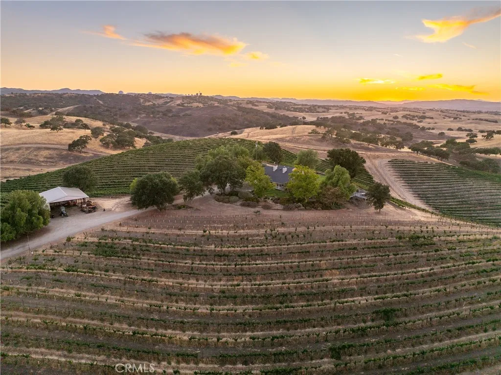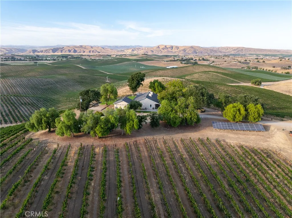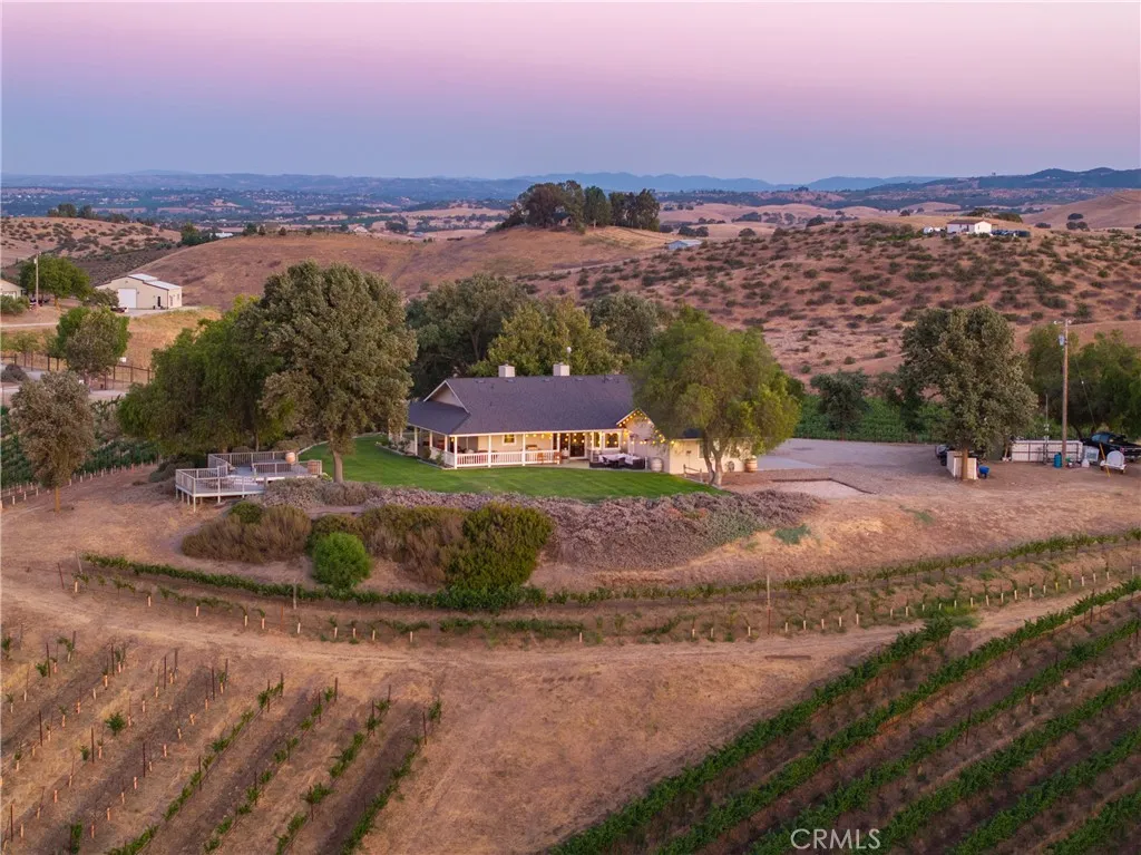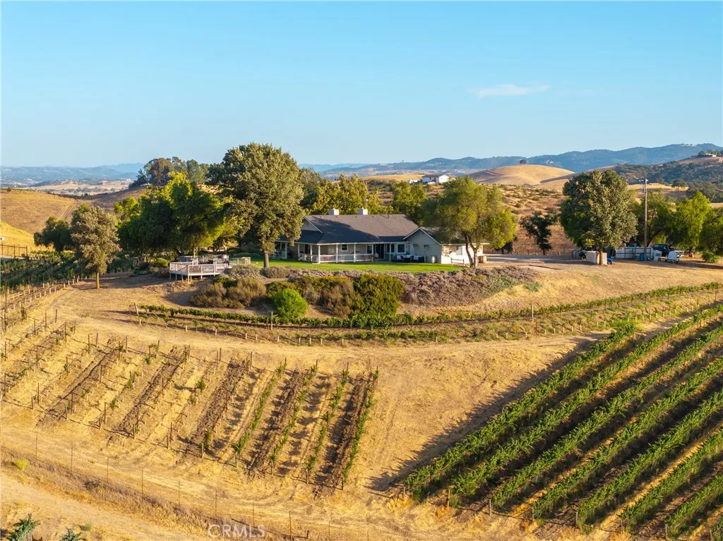 Experience the quiet luxury of vineyard living on this 19.77 acre estate in Paso Robles wine country. Located at the end of a peaceful road just minutes from downtown and Highway 101, this West San Miguel retreat offers breathtaking panoramic views and the opportunity to bring your dreams to life. At the heart of the property is a professionally managed 15 acre vineyard planted with Cabernet Sauvignon, Cabernet Franc, and Petit Verdot. Recently replanted and currently contracted with Tobin James, the vineyard is powered by solar, nourished by automated irrigation, and monitored with Tule moisture sensors and remote-access controlsallowing you to oversee operations from anywhere. The 1,500 sq. ft. ranch-style home offers warmth and functionality with 2 bedrooms, 2 remodeled bathrooms, hardwood floors, and a well-equipped country kitchen including stainless steel appliances, a Shaw farm sink, soapstone counters, and a center island ideal for casual entertaining. A dedicated office supports remote work or creative pursuits, while additional features include owned home solar, a new roof, Milgard windows and sliders, a Pacific Energy wood stove, and an updated well system. Step outside to a wraparound porch and elevated viewing decks that invite you to relax and savor the vineyard landscape. Additional amenities include a spacious shop, a horse stall with equestrian potential, an automated entry gate, 8-foot deer fencing, and two 7,000-gallon water storage tanks. Whether youre seeking a full-time residence, weekend escape, or short-term rental opportunity, this property offers a
