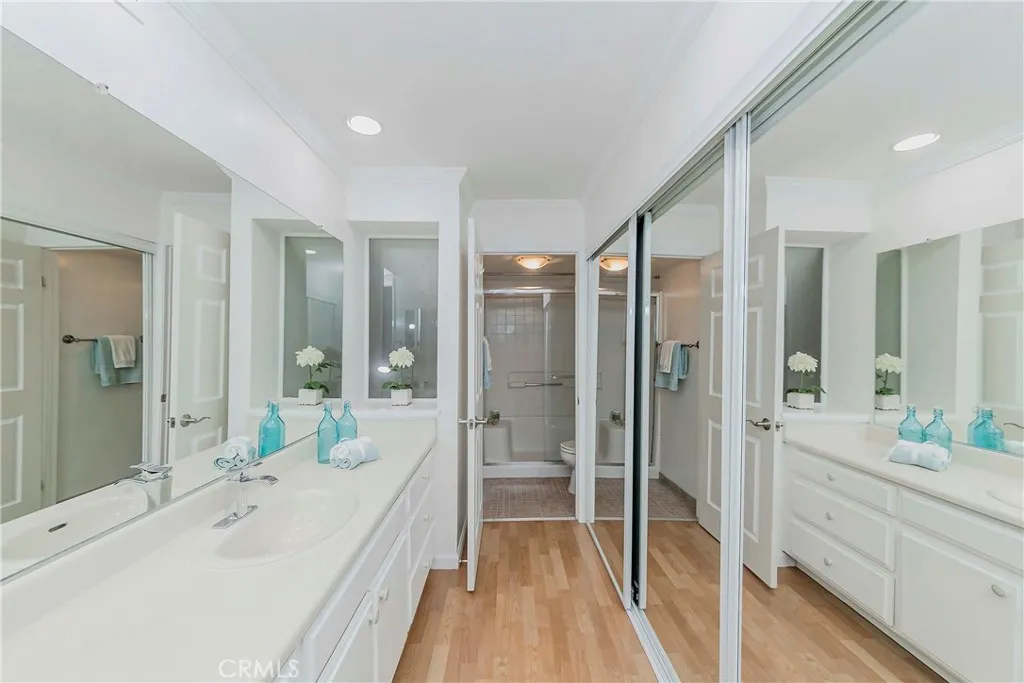 Welcome to this charming End-unit condominium in the gated Harbour Walk community! This bright and inviting home features a gourmet kitchen with tile countertops, stainless steel appliances, breakfast nook, and high ceiling. The cozy living room with fireplace. The dining area that opens to a private patio with laundry and extra storage. Upstairs, you'll find two primary suites, each with its own private bathroom and walk-in closet. Additional highlights include central A/C & heating, two assigned gated parking spaces (#414 & #459), and a convenient location near parking, mailbox, and pool. HOA dues of $714 include water and trash. The Harbour Walk community offers recent upgrades including a newer roof and exterior paint, plus resort-style amenities: pool, two spas, sauna, BBQ area, clubhouse, and ample guest parking. Prime North San Pedro location with easy access to the 110 freeway, scenic parks, waterfront, shopping, dining, and entertainment. Enjoy comfortable living in a move-in ready home!