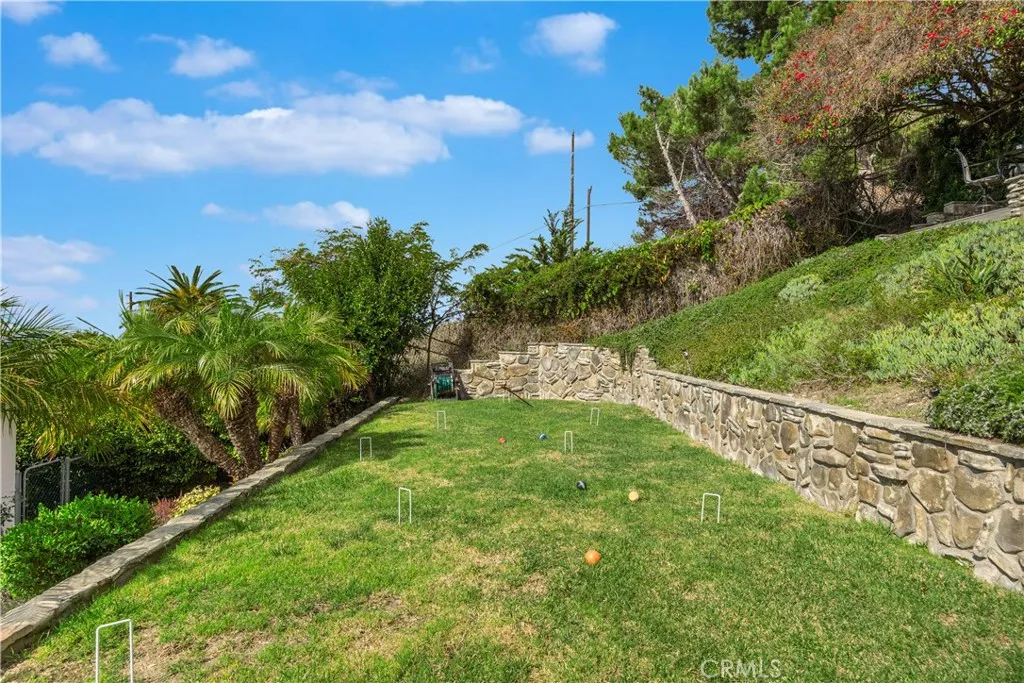 Coastal Living at Its Finest Perched in the Palisades of San Pedro, this exceptional residence offers 180-degree unobstructed ocean views with Catalina Island on the horizon. Spanning over 2,424 sq-ft, this 4 Bedroom 31/2 Bath home blends comfort and style you will call home. Expansive decks & patios surround the home, creating the ultimate environment for entertaining, dining, or simply soaking in the coastal air. Through the windows, sunlight fills the home capturing both the morning glow and evening tranquility. A formal living room with a fireplace and library seamlessly connects wooden floors to the open spacious dining area featuring circular windows that frame an unforgettable panorama of the ocean. The chefs kitchen, also filled with ocean views, features stone countertops, dual ovens, a cooktop, dishwasher, walk-in pantry, warming drawer, designed for hosting in style. Wake up to the sea in the primary bedroom, with a large sitting area, and direct access to an ocean view patio. The spa-style ensuite bathroom has a jet tub, walk-in shower, and dual sinks. Two additional bedrooms on this floor are generous in size with outdoor access to the decks. A 4th bedroom with a separate entry, a kitchenette, and full bathroom offers flexibility perfect for extended family, guest quarters, or conversion into a hobby room. Step into the lush private backyard, perfect for a friendly game of croquet on the grass area, evening conversations by the fire pit, or unwinding in the elevated Sky Zone ideal great conversations or yoga, with endless ocean views. The front deck offers ano