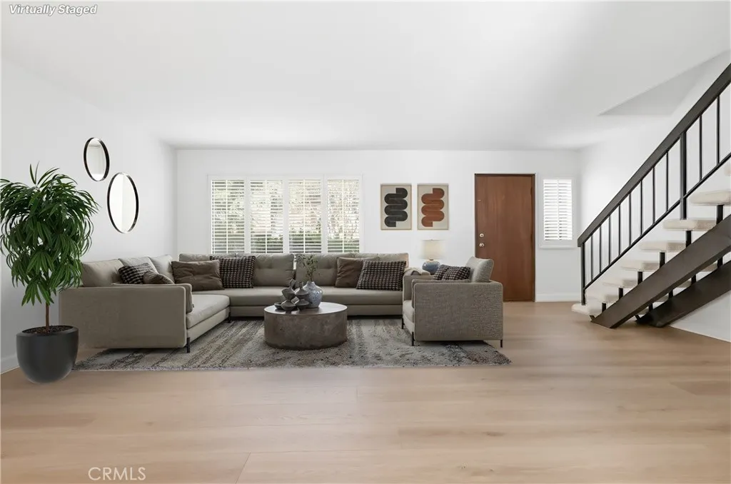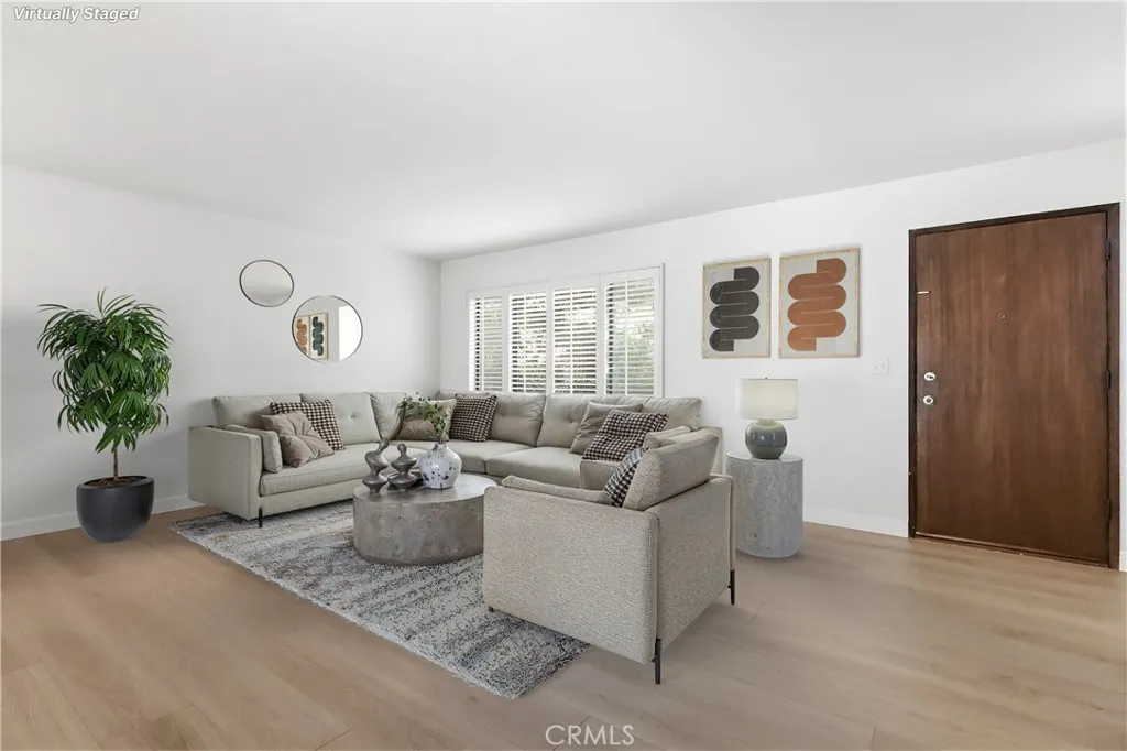 Rare FOUR BEDROOM Gardens townhome. This freshly renovated unit features new laminate matte finish plank flooring on the lower level, a brand new high efficiency heater and air conditioning system, freshly painted throughout with acoustic ceilings removed. Additional upgrades include a dual paned sliding glass door, plantation shutters in the living room and bedrooms, The sunny patio has no stairs from the garage to the unit. The garage has lots of built-in storage racks and a newer hot water heater. The Gardens offers lush and mature landscaping, great recreation areas with a large community swimming pool and tennis court. Located close to Western Avenue shopping and restaurants. Easy access to the 110 freeway. This immaculate unit is priced to sell quickly.