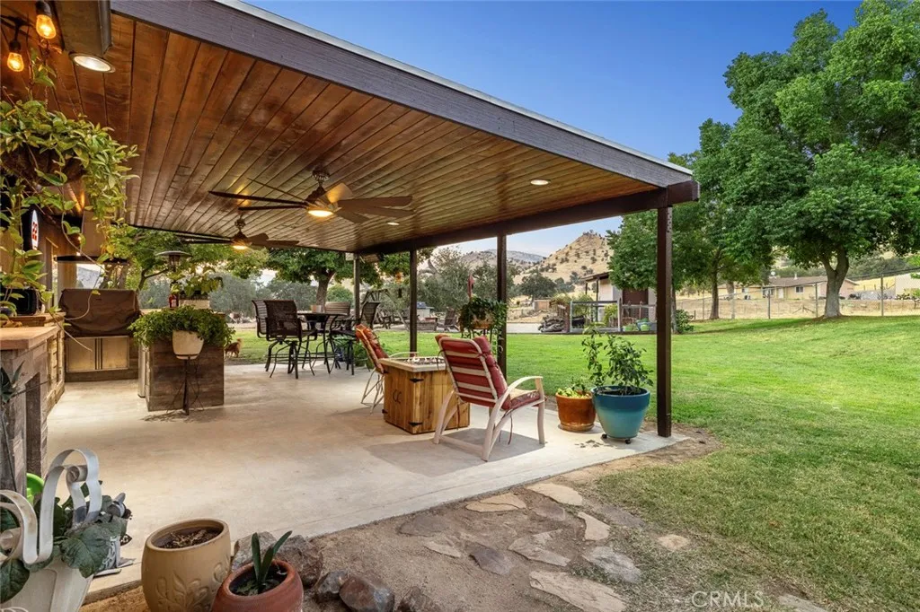 Original owners! This exceptional property showcases breathtaking views, pride of ownership, and thoughtful upgrades. The backyard is an entertainer's delight, featuring an outdoor kitchen, fire pit, string lights, garden beds, and mature trees lovingly planted by the sellers. Inside, enjoy a commercial-grade stove, large ceiling fans, and an updated primary bath. A 4th bedroom, currently used as laundry/storage, can easily be converted back. Recently painted interior and exterior. Practical enhancements include a permitted 2628 shop (12 ft. walls, newer roof), garden shed, a high-producing 23 GPM well with filtration system, and an upgraded 1,500-gallon septic with convenient clean-outs. Gated fencing, French drain, and a seasonal creek add both function and charm. Located in a Fire Wise Community with secure PG&E power access, this property seamlessly combines comfort, utility, and outdoor living.