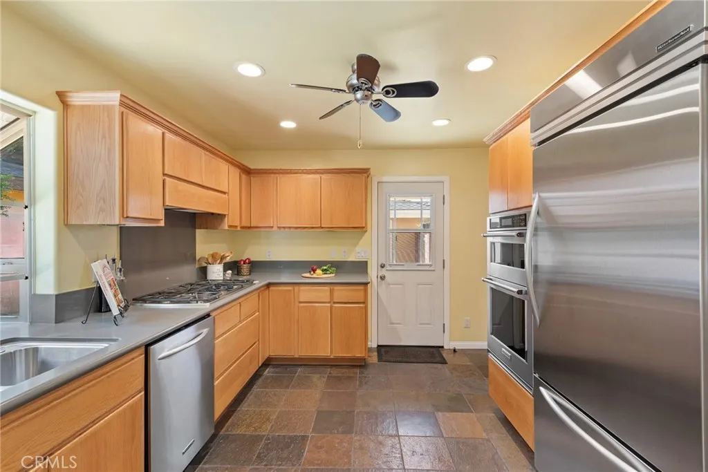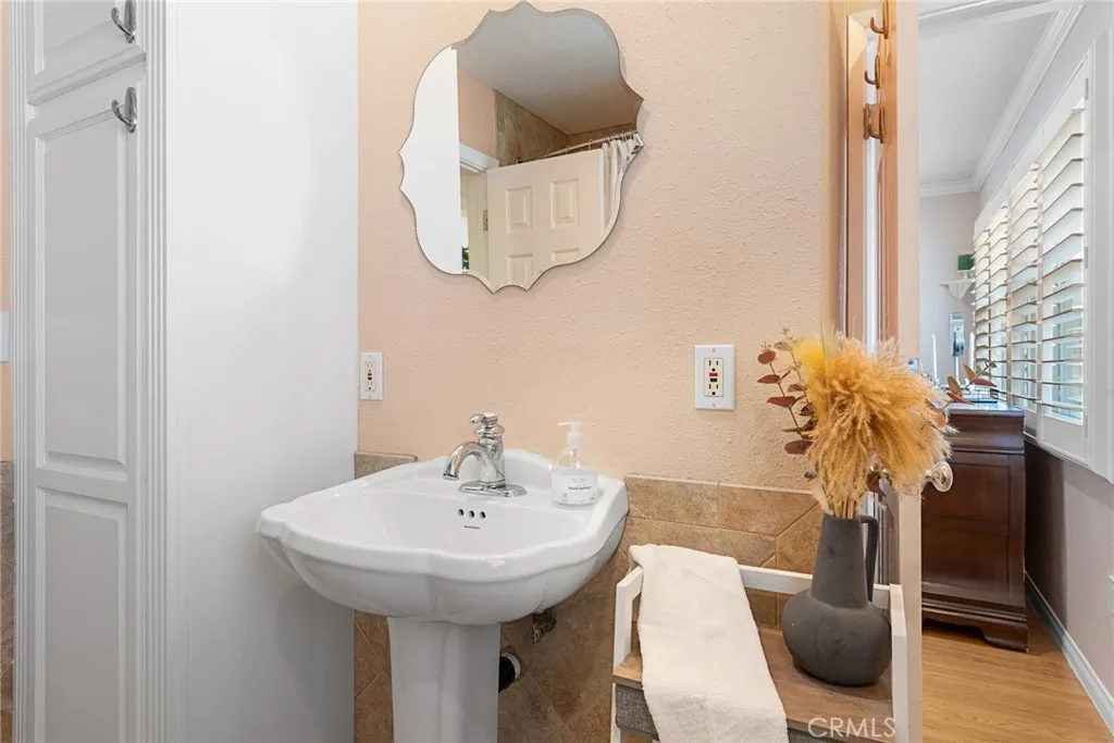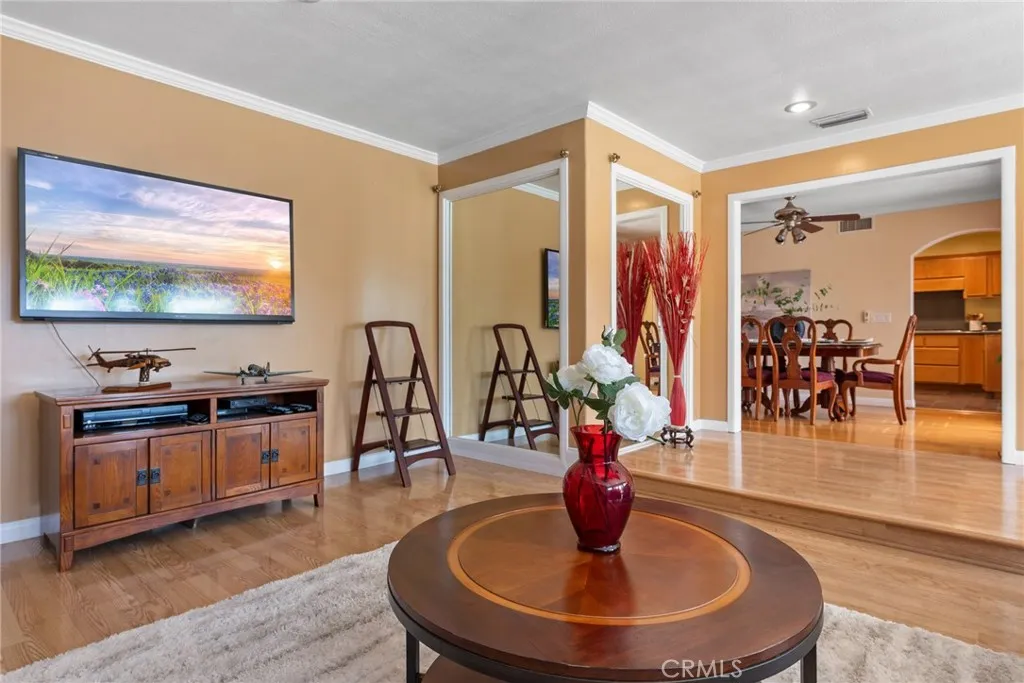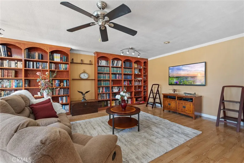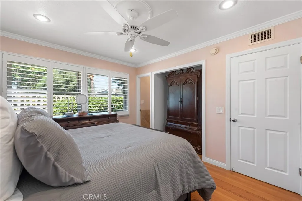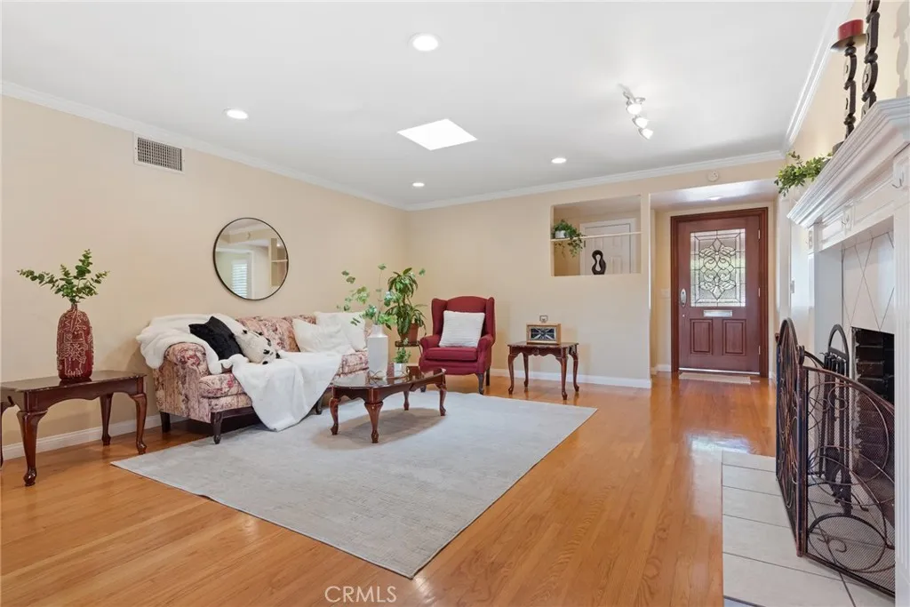 Welcome to this stunning residence in the highly sought-after Floral Park neighborhood of Santa Ana! Step inside and experience timeless appeal with modern convenience. This beautifully maintained home features original hardwood floors, a spacious open floor plan, and fresh interior paint. The inviting living and dining are enhanced by skylight that fill the space with natural light and a cozy fireplace that adds warmth and elegance. The family room offers a comfortable setting for gatherings, complete with built-in bookcases that add character and functionality. The kitchen, showcasing elegant Caesarstone countertops, premium appliances, slate flooring, and abundant wood cabinetry. The homes layout provides privacy and comfort, featuring well-appointed bedrooms with window shutters, a Jack-and-Jill bathroom, and a second full bath with bathtub. A convenient laundry area adds practicality to daily living. Additional highlights include central air conditioning for year-round comfort. Step outside to enjoy the best of Southern California living a low-maintenance backyard with pavers and a sparkling swimming pool, perfect for relaxing or entertaining. The long driveway offers ample parking and leads to a detached two-car garage. Nestled in the heart of Floral Park, one of Santa Anas most beautiful and historic neighborhoods, this home is surrounded by tree-lined streets, classic architecture, and a strong sense of community. Enjoy nearby parks, charming cafes, and local events that make this community one of the most desirable places to live.
