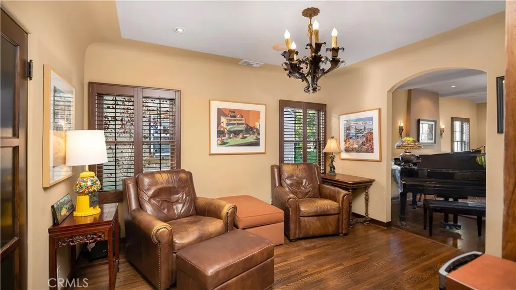 English Tudor Masterpiece! Step into another era with this truly one-of-a-kind English Tudor residence, gracefully situated on one of the most picturesque, tree-lined streets in Historic Floral Park. The trifecta of location, charm, and Mills Act/Historic Registry Status (low property taxes) makes this a property not to be missed. Enter through a private gated courtyard and be welcomed by a custom iron-and-glass front door that opens to a dramatic living room featuring a stunning fireplace, rich pegged hardwood floors, and intricate, hand-crafted woodwork. Every detail of this home reflects exceptional artistry and care. The formal dining room showcases coved ceilings and a wall of windows overlooking the peaceful courtyard, while the sunlit breakfast room delights with its slate floors and stone-accented walls. The chefs kitchen is a true showpieceadorned with antique carved cabinetry imported from Italy, granite countertops, a stone farmhouse sink, and high-end stainless steel appliances, including a Viking range with double ovens and a glass-door SubZero refrigerator/freezer. This remarkable home offers four spacious bedrooms (one currently serving as a den). Two bedrooms feature French doors opening to the backyard, while the primary suite upstairs includes generous storage and a spa-like ensuite bath. The 2.5 baths are exquisitely finished with custom cabinetry, slate floors, and stone walls and showers. Additional highlights include central air and heat, a tankless water heater, antique and recessed lighting, and a built-in speaker system. A wine cellar/basement with