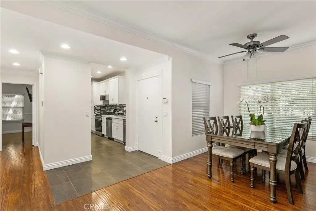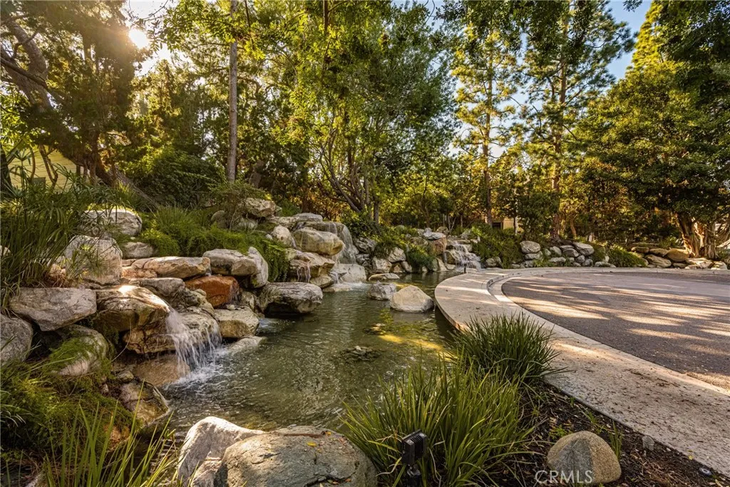 Highly renovated ground-level end unit in the prestigious gated community of Woodlake. This rare offering features two private patios and a premium, exceptionally private location. Step inside to an open floor plan with soaring ceilings, wide-plank laminate flooring, crown molding, recessed lighting, and a cozy fireplace. Brand-new, high-end Renewal by Andersen windows and sliding doors fill the home with natural light while enhancing energy efficiency. The remodeled kitchen includes stainless steel appliances, custom soft-close cabinetry, and elegant quartz countertops. A charming breakfast nook opens to a tranquil private patioalso accessible from the second bedroomcreating an ideal space to unwind. The beautiful primary bathroom offers a spacious vanity with abundant storage, a sunken tub and shower, and recessed lighting. The second bathroom is also a full bathroom with a tub and shower combo. The generous living room, with its impressive ceiling height, extends to a large private side patio overlooking a serene stream and waterfallperfect for entertaining or everyday relaxation. A washerdryer closet and an additional exterior storage closet provide exceptional convenience. This home includes one assigned carport, one assigned uncovered parking space adjacent to the building, and ample guest parking. The community is known for its lush landscaping, mature trees, ponds, waterfalls, and peaceful water features. HOA amenities include a pool, spa, exterior maintenance, water, trash, termite service, and exterior electricity. A beautifully updated homethoughtfully designed a