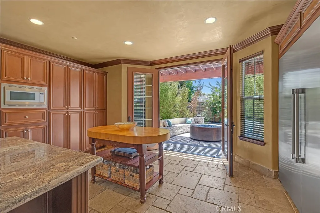 Priced to sell at $200K below original asking price. Recent higher appraisal adds instant buyer equity! Step into timeless elegance and modern comfort in this one-of-a-kind Tuscan-style estate. Located in the exclusive residences of "The Retreat" North Santa Ana's Floral Park area, where sophisticated living meets artisan craftsmanship. With 5 spacious bedrooms, all with custom closet-built ins, 4.5 bathrooms, a dedicated den/office, and private in-law quarters, this 4,566 sq ft residence is a showcase of warmth, beauty, and luxurious detail. The home welcomes you with custom onyx travertine flooring, rich Venetian plaster walls, and artisan touches throughout, including a Tiffany-style chandelier in the cozy formal living room, adding just the right touch of old-world charm and elegance. Four fireplaces, two of them dual gas and wood-burning that create a cozy ambiance throughout the main level, perfect for relaxing or entertaining. The heart of the home is the gourmet chefs kitchen, featuring a brand-new $40,000 Thermador appliance suite, stunning granite countertops, and an airy, open layout that flows effortlessly into the family and dining spaces. French double doors invite you outdoors to an entertainers dream yard. The primary suite is a private sanctuary, starting with a separate sitting room with a fireplace, then stepping up into a grand 16 x 20 master bedroom private retreat with vaulted wood beam ceilings. The warm wood details continue throughout the home, adding a rustic elegance that echoes the best of Tuscan architecture. Outside, youll find a professionally