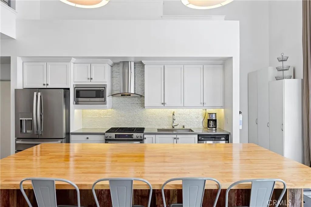 This impressive loft invites you to enjoy a setting that balances comfort, creativity, and convenience. With generous interiors and a layout suited for many uses, it sets the stage for inspired city living. The live|work Santiago Loft offers an amazing living space and the opportunity for business space too! Nestled in the heart of Santa Anas thriving arts and culinary scene, dining & shopping, near the 5, the 55 & the 22 Freeway, this exceptional property offers unmatched potential for both. The first floor offers a half bathroom and enough office space for 4 to 6 desks. Use this first floor space as a workshop or gallery, a gym, a pop up store front, a bedroom, an office, a crafting room or a lounge area - there are so many uses for this space! When the roll up door is open, the space is nice and cool and comfortable to work in. Pilates or yoga sessions would be amazing in this space - lots of potential for any type of usage. The side by side 2 car garage offers upper storage racks and direct access to the loft. On the 2nd floor, you find the beautiful open concept kitchen with Cambria countertops which offer a lifetime warranty! Check out the gorgeous kitchen island! The soaring ceiling opens to the 3rd floor and is really dramatic and sure to wow all your guests. The living room/sitting area/alternate bedroom area/full bathroom are also on the 2nd floor. The master bedroom has an open concept and lofty feel to it and is on the 3rd floor complete with walk-in closet and ensuite bathroom. Interior laundry closet is located on the 3rd floor. You are going to love this live