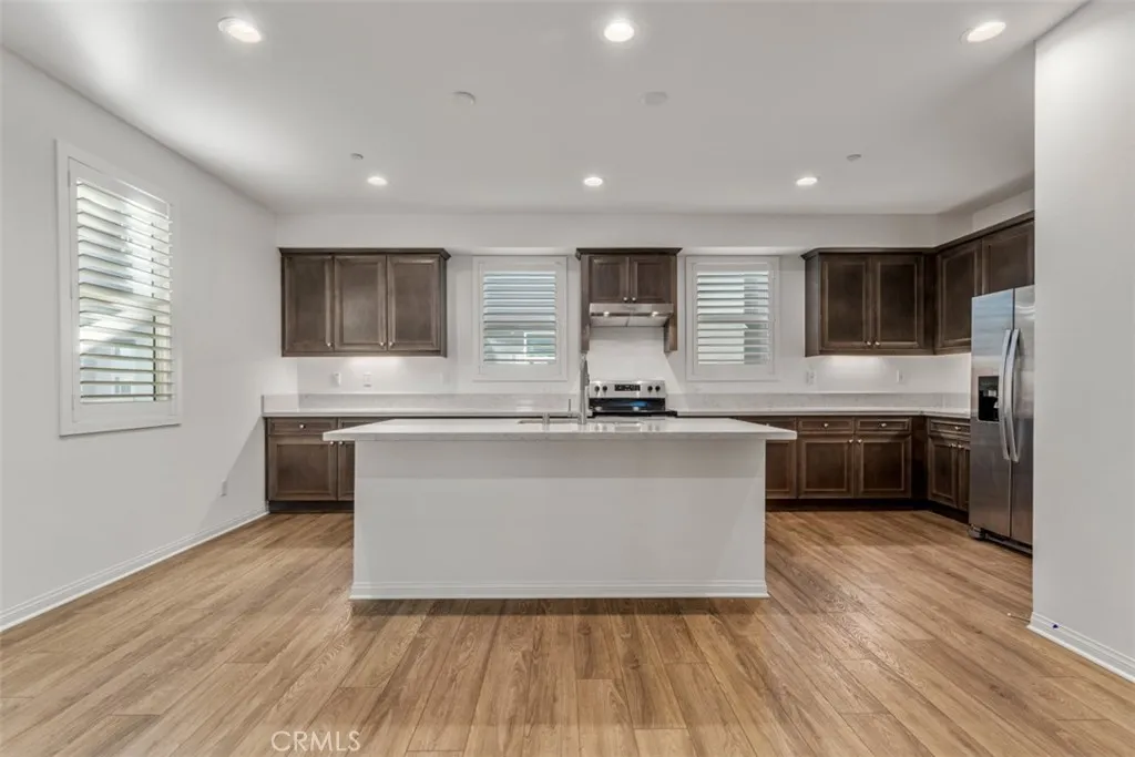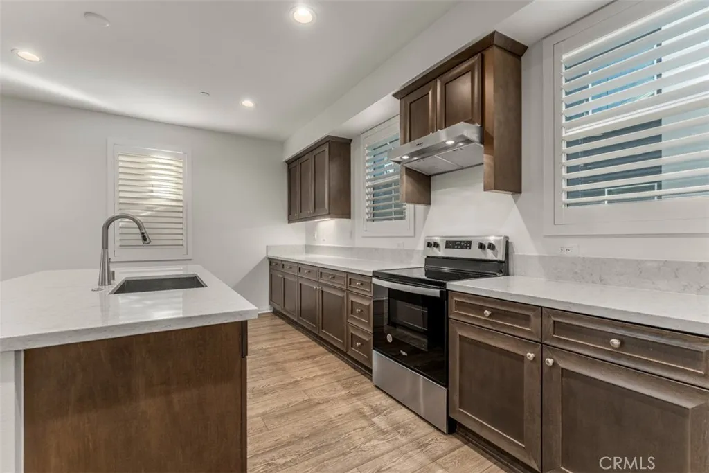 Modern 3-Story Detached Home in The Row Homes at Lacy Crossing, Santa Ana. Welcome to 921 E 3rd Street, a beautifully designed and energy-efficient modern detached residence in the sought-after Row Homes at Lacy Crossing community of Santa Ana. This contemporary three-story home features 4 spacious bedrooms and 3.5 bathrooms, offering a perfect blend of comfort, style, and functionality for todays lifestyle. As you enter, youre greeted by a ground-floor bedroom with a full bathroom, ideal for guests, a home office, or multigenerational living. The attached two-car garage provides direct access, along with extra storage space for added convenience. Upstairs, the second floor showcases a bright, open-concept layout featuring a spacious living room filled with natural light, high ceilings, and elegant flooring throughout. The chefs kitchen is the centerpiece of the home, complete with quartz countertops, a large center island, stainless steel appliances, and ample cabinetry for storage. A private balcony just off the living area offers the perfect spot for morning coffee, evening relaxation, or weekend entertaining. The third floor includes a tranquil primary suite featuring an ensuite bathroom with dual sinks, a glass-enclosed shower, and generous closet space. Two additional bedrooms and a full secondary bath provide plenty of room for family or guests, while the convenient upstairs laundry room adds everyday ease. Additional highlights include recessed lighting, plantation shutters, energy-efficient solar panels, and modern finishes throughout, creating a turnkey home ready