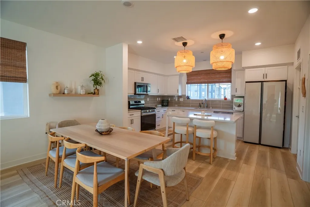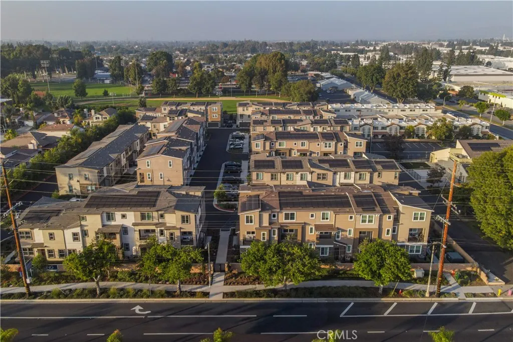 Discover modern comfort and elevated design in this bright, 2024-built end-unit townhomea private retreat with designer upgrades at every turn, with paid-off solar system. Offering 3 full bedrooms, a flexible 4th room currently used as a private office, and 4 bathrooms (2 full and 2 half), this 1,788 sf home blends contemporary style with everyday functionality. On the entry level, the den with its own half bath serves as a versatile bonus spaceideal as a 4th bedroom, office, gym, or playroom. The main living area features an open layout that creates effortless flow between the kitchen, dining, and living spacesperfect for family gatherings and hosting guests. The chef-inspired kitchen elevates the experience with quartz countertops, a dramatic full-height backsplash, premium Samsung stainless steel appliances, shaker cabinetry, and both a standard and walk-in pantryan exceptional amount of storage rarely found in similar homes. Upstairs, all three additional bedrooms are thoughtfully positioned on one level, including a serene primary suite with a frameless glass shower, dual sinks, and a walk-in closet designed for effortless everyday living. Live elevated with a suite of premium upgrades: Tesla EV charger, Ring alarm + video doorbell, Brilliant smart home panel, Kwikset smart lock, MyQ smart garage, Cat-5 ethernet wiring, modular closet systems, custom woven wood window treatments, instant hot water switches, and a tankless water heater with sediment filter. Luxury SPC flooring and upgraded tile flow throughout the residence. The Instacool system further enhances indoor