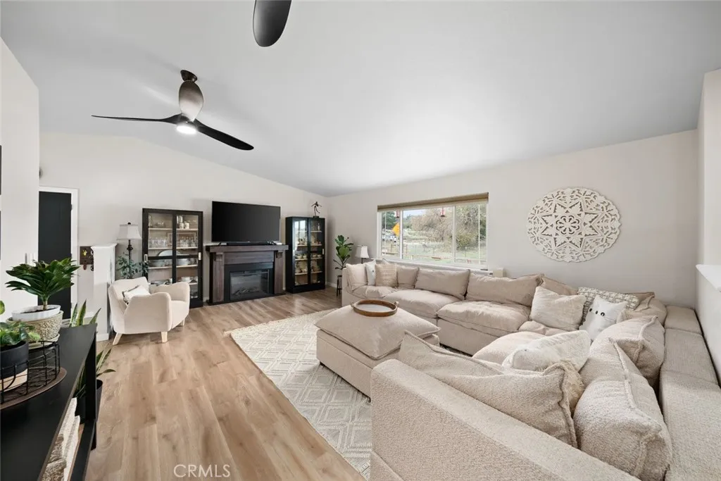 Beautifully updated single-level home with views of adjacent ranch land, in the heart of Santa Margarita. Discover modern comfort and peaceful rural vibes in this turn-key home located just two blocks from the local elementary school and minutes from Santa Margarita Lake. Inside an inviting open-concept living space featuring vaulted ceilings, recessed lighting, and an electric fireplace with wood mantel (negotiable) to cozy up to on a cool evening. The updated kitchen offers abundant counter space, breakfast bar seating, stainless steel appliances and a custom built pantry closet for additional storage. The primary bedroom features French doors to the covered deck, dual closets and a completely reimagined ensuite bathroom showcasing a dual-sink vanity, beautiful heated tile flooring, luxurious walk-in shower with bench, and fluted glass doors. Two additional bedroomsone currently configured as a home office with access to the covered deck thru a glass door that provides additional sunlight and views. An updated second full bathroom has been customized add a touch of elegance and fun. The dedicated laundry room has been upgraded to add beauty to this functional space that provides access to the side yard, perfect for your furry family members. Outside the covered back deck with ceiling fans provides the perfect space to grill, entertain, or enjoy sweeping views of the adjacent ranch land. The newly landscaped backyard offers grass, a rock area ideal for a firepit, a workshop shed, and privacy fencing. The two-person sauna (negotiable) is just outside the primary bedroom for