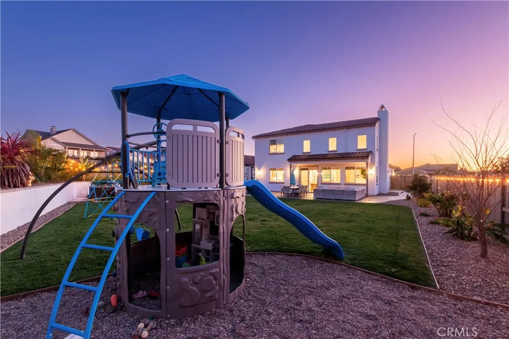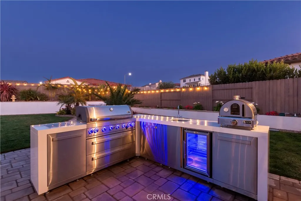 Stunning 5-Bedroom Home with Outdoor Kitchen, Expansive Backyard & Premium Upgrades! Welcome to this exceptional 5-bedroom, 4-bathroom two-story home that offers RV parking, a huge backyard, and unparalleled indoor-outdoor living. The backyard is an entertainer's dream featuring an outdoor kitchen with a Mont Alpie pizza oven, grill, and fridge, complemented by gorgeous lighting, a high-end hot tub, and a natural gas fire pit perfect for cozy evenings under the stars. Get your fruit fix! Just planted a variety of delicious fruit trees including mandarin, lemon, avocado, fugi apple, peach, plum, Granny Smith, apricot, and banana. Inside, the massive kitchen is a chef's delight, complete with LG stainless steel appliances, a stunning island with ample seating, a large pantry for all your storage needs, and a dedicated wine bar area featuring a bodega fridgeideal for showcasing your favorite Central Coast wines alongside your coffee station. This home is equipped with air conditioning, a secure security system, and features owned solar by SunPower to keep energy costs low. The versatile floor plan includes two bedrooms downstairs and a den that could serve as an additional bedroom or suite, while all other bedrooms are located upstairs. The luxurious primary suite boasts a large, spacious closet, a soaking tub, a large shower, dual sinks, and spectacular mountain views that greet you each morning. Additionally, select bedrooms offer ocean views on clear days, providing a serene backdrop throughout the home. As part of the Summit Club HOA, enjoy resort-style amenities such as a