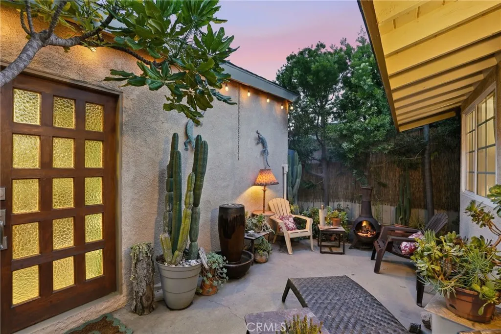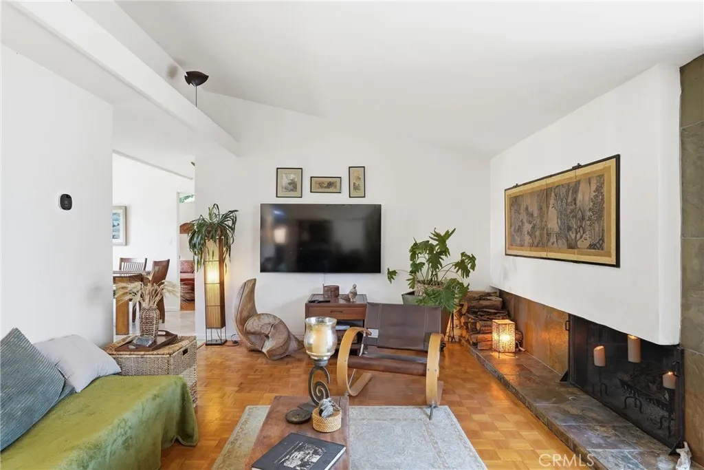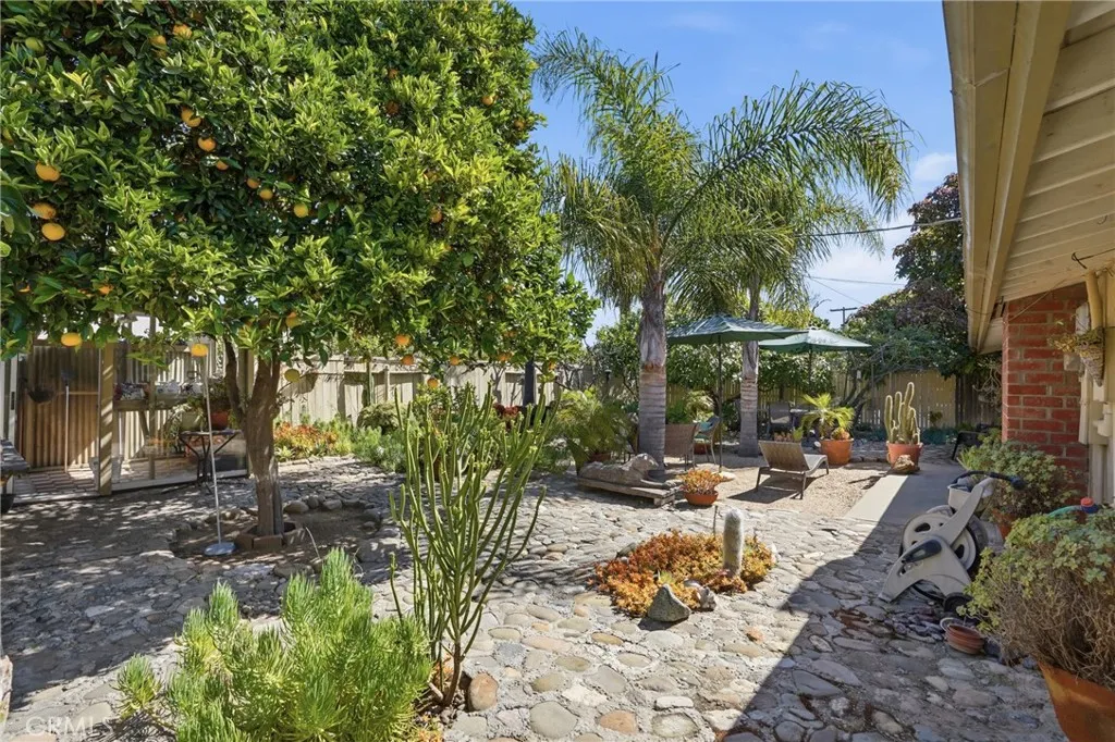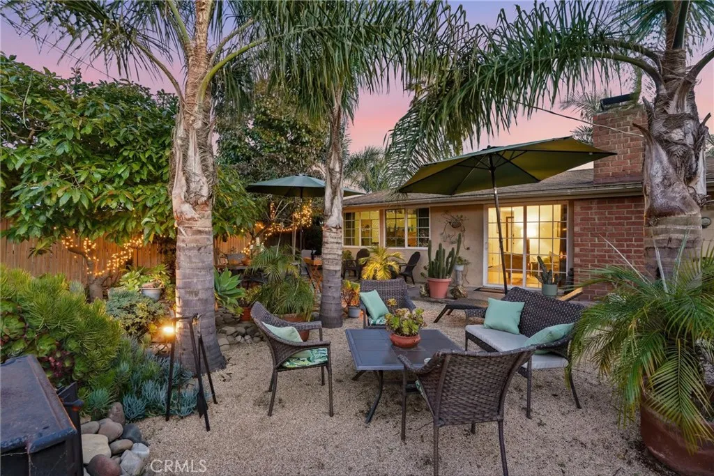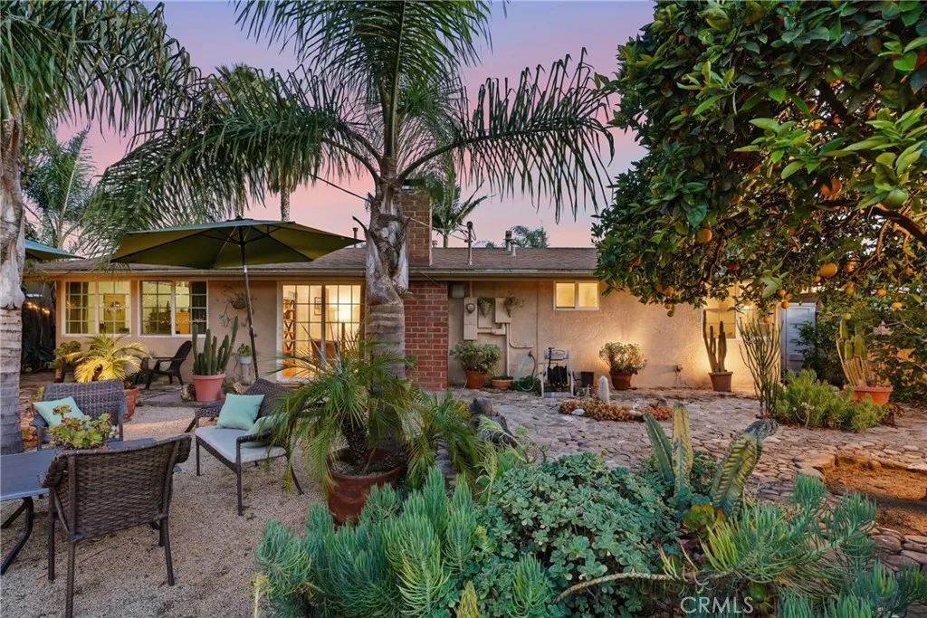 Step into this inviting single-level 3-bedroom, 2-bath home, where a distinct Palm Springsinspired 1960s aesthetic meets classic midcentury modern design. Clean lines, an open layout, defines the main living spaces, creating an airy, light-filled atmosphere. At the heart of the home, a sleek, understated fireplace anchors the living room with a striking architectural focal point. Sliding glass doors extend the living space outdoors, opening to a backyard and patio designed for effortless indoor-outdoor living, whether relaxing quietly or entertaining guests. The bright kitchen blends style and function with granite countertops, while travertine flooring adds texture and character through the kitchen, dining area, hallway, and one bathroom. Parquet flooring flows through the main living areas and bedrooms, bringing warmth and timeless midcentury appeal. The sunny dining area continues the homes seamless connection to the outdoors, while the backyard offers a peaceful retreat with mature fruit trees, including a vibrant orange tree, avocado, peach, fig, to name a few, and a charming potting shed perfect for gardening or creative use. A detached two-car garage is complemented by a connecting patio, adding both convenience and another welcoming space to gather. Set in a desirable neighborhood with sidewalks and close to shopping, dining, schools, and everyday amenities, this home offers a rare opportunity to enjoy classic midcentury character while making it your own. Showing start 4/29th.
