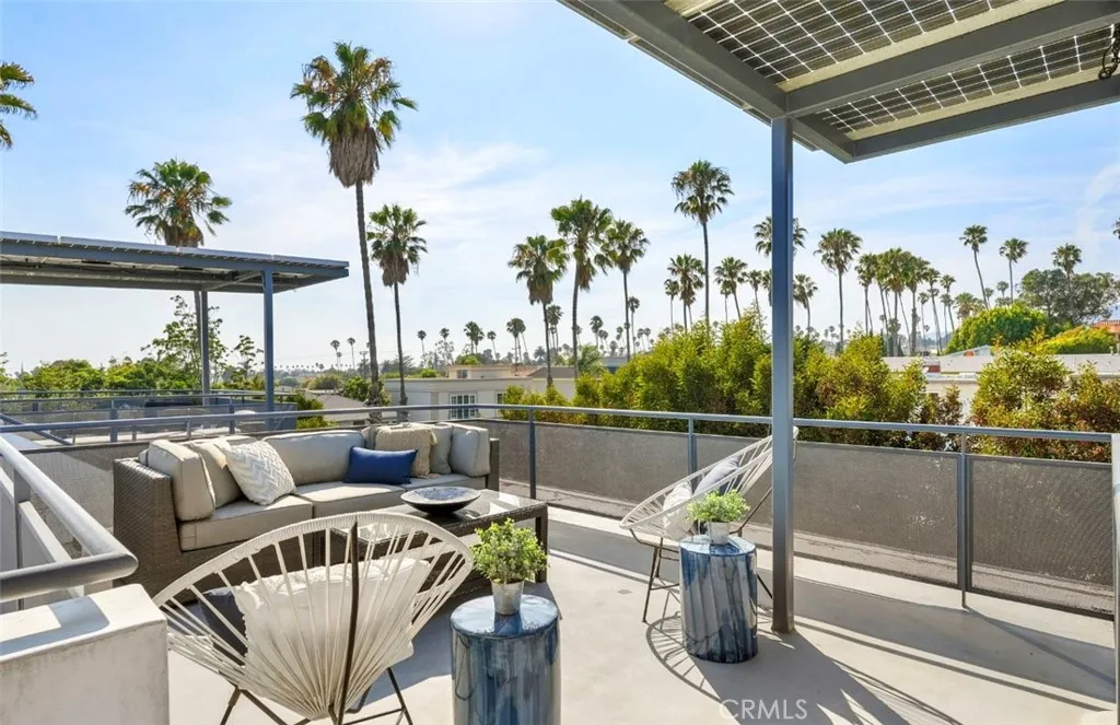 Nestled in the heart of Santa Monica, we welcome you to Santa Monica's First Sustainable Townhome Community. Experience modern eco-conscious living in this tri-level architectural masterpiece designed by award-winning architect Jesse Bornstein. Featured in the LA Times, this exclusive 5-unit townhome complex is ideally situated in the highly sought-after Wilshire Montana neighborhood, just blocks from Erewhon, Whole Foods, Trader Joes, Palisades Park, the Santa Monica Stairs, and the iconic Santa Monica Beach. Inside, experience a bright and spacious 2-bedroom plus loft, 2.5-bathroom home offers the perfect blend of luxury, sustainability, and convenience. The entry level features two generously sized bedrooms, each with ensuite bathrooms and custom California Closets. The primary suite opens to a serene private-use patio, ideal for gardening, yoga, or morning coffee. A stackable washer/dryer is conveniently located near the bedrooms. With an abundance of natural light, this level boasts dramatic ceiling heights, a stunning double-sided bio-ethanol fireplace, and an open concept layout perfect for entertaining. Enjoy the gourmet kitchen with Viking appliances, a formal dining area, a powder room, and a veranda for seamless indoor/outdoor living. Ceiling surround sound speakers elevate your movie nights. The loft level is comprised with a versatile space ideal for a home office, fitness studio, or creative retreat. Work your way up to sweeping panoramic views on the rooftop deck, showcasing DTLAs skyline to the mountains and west to the Pacific Ocean. Additional highlights i