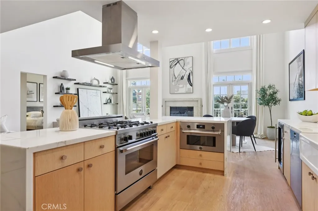 Penthouse Living with a Santa Monica Soul Welcome to the Dorchester House Perfectly positioned just blocks from the ocean and the iconic Santa Monica Pier, this two-story penthouse at the Dorchester House delivers beachside living with an elevated twist. Steps from neighborhood favorites like lephante, Forma, and the boutiques along Montana Avenue, its the ultimate mix of laid-back coastal charm and vibrant city energy. Inside, soaring 18-foot ceilings and wide-plank white oak floors set a stunning tone. The open-concept living area features French doors that open to a breezy balcony and a fireplace thats both gas and wood-burning perfect for cozy evenings after a sunset stroll. The chefs kitchen shines with Bertazzoni and Sub-Zero appliances, sleek custom cabinetry, a breakfast bar, and an inviting eat-in nook a comfortable spot for morning coffee or casual meals. Downstairs, the primary suite is a true retreat with an oversized walk-in closet featuring custom built-ins and a spa-like bath with marble finishes, a walk-in shower, and a jacuzzi tub. A second bedroom on this level is also en-suite, offering flexibility as a guest room, office, or creative space. Upstairs, a third en-suite bedroom provides additional privacy, while the loft area adds an entertainers touch complete with a built-in wet bar and fridge perfectly positioned for effortless rooftop entertaining. Just steps away, the private rooftop deck steals the show with panoramic views of the ocean, city, and mountains an unbeatable backdrop for sunset cocktails or quiet morning moments. Practical luxury con