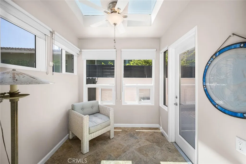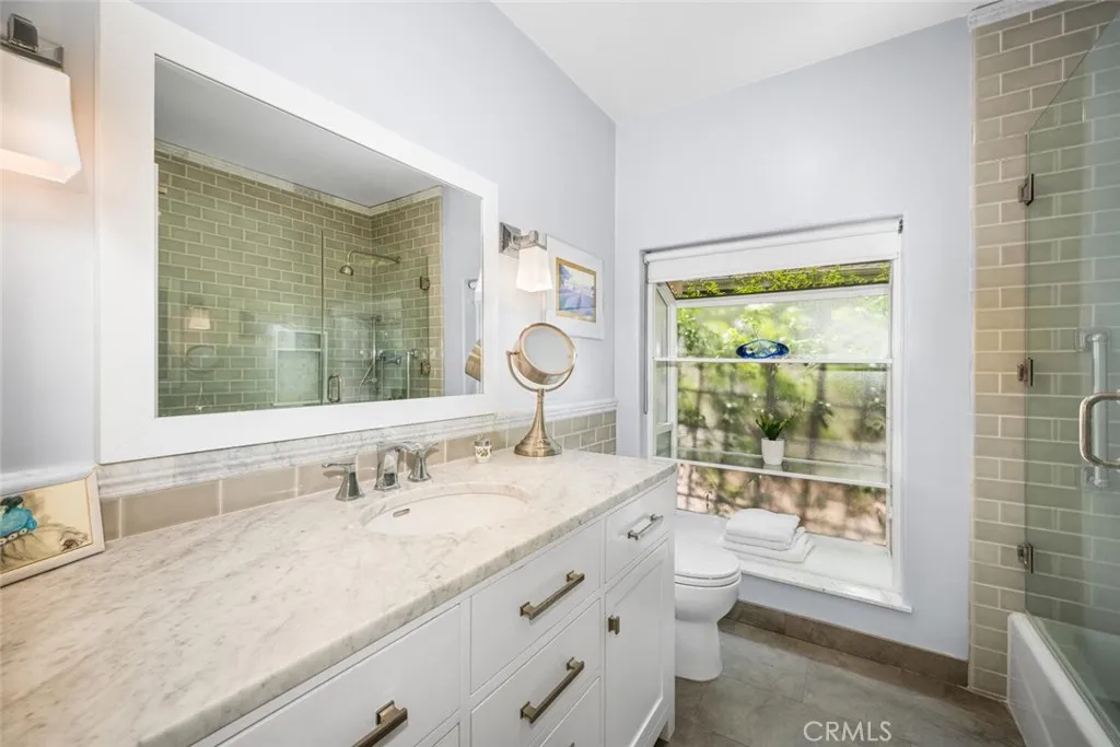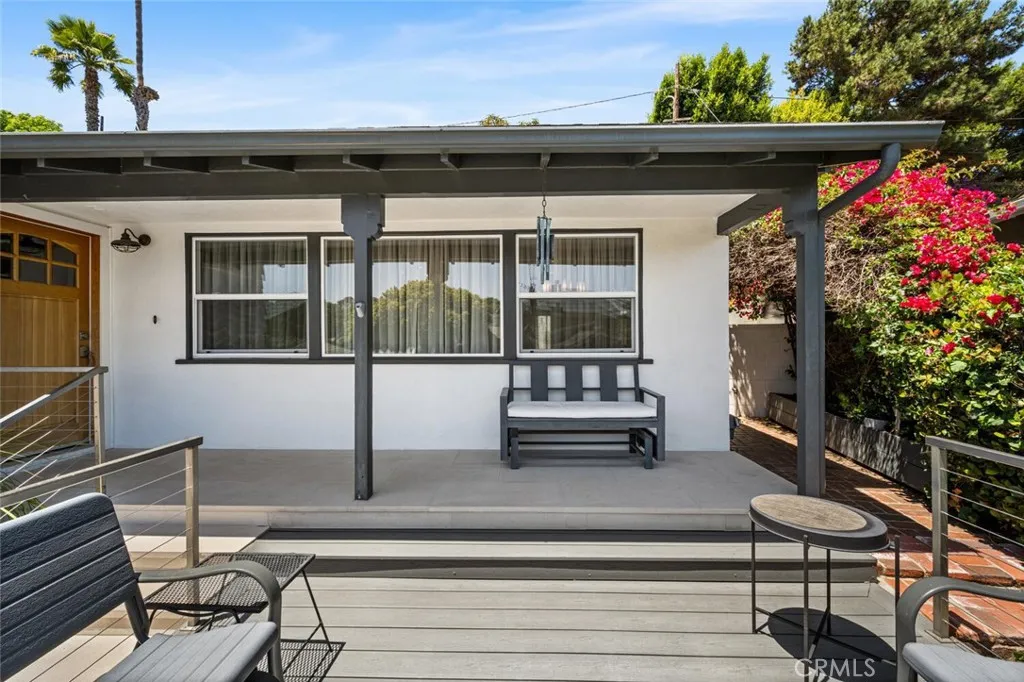 Welcome to this Sunset Park gem, ideally located on a quiet horseshoe street overlooking Marine Park. Light and bright throughout, this timeless 2-bedroom, 2-bath home features hardwood floors, elegant finishes, and thoughtful updates that blend classic character with everyday comfort. The inviting living room showcases a striking marble fireplace, built-in cabinetry, and abundant natural light. A flexible layout includes a formal dining room or den, plus a bonus room for added versatility. The updated kitchen is outfitted with white shaker cabinets, quartz countertops, and stainless steel appliances, offering a clean and timeless aesthetic. The primary bedroom includes a charming sunroomperfect as a cozy reading nook, a peaceful office, or creative retreat. A dedicated laundry room off the kitchen adds convenience. Step outside to enjoy an expansive front deck, ideal for morning coffee or evening gatherings. In back, two separate private patios offer spaces to unwind, one of which features a sparkling spa. The terraced hillside offers space for a vibrant garden, allowing you to craft a serene refuge with inviting ambiance and natural beauty. Just adjacent to Marine Park is The Penmara popular local destination featuring a 9-hole golf course, concert-friendly green space, and a trendy restaurant thats become a neighborhood favorite. All of this in Sunset Park, a peaceful, tree-lined neighborhood known for its coastal charm and sense of communityjust over a mile from the beach and blocks from local cafes, shops, parks, and Santa Monica schools. With its walkability, warmth,