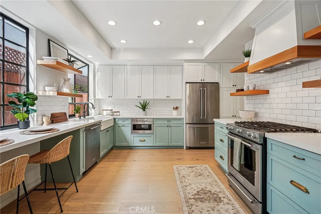 BACK ON THE MARKET! IF YOU MISSED IT THE FIRST TIME, DON'T MISS YOUR SECOND CHANCE! Beautifully remodeled 3-bedroom, 2.5-bath townhome situated on a tree lined street in one of Santa Monicas most coveted neighborhoods. Thoughtfully redesigned, this home features modern finishes, open living spaces, and abundant natural light enhanced by skylights in the hallway and bathrooms. The gourmet kitchen seamlessly connects to the dining and living areas, creating an inviting atmosphere for both entertaining and everyday living. From the dining area, step out to a private outdoor patio that offers additional space for lounging or al fresco dining. A convenient powder room is also located on the main level. The spacious primary suite is a true retreat with a cozy fireplace and a luxurious spa-like bath. Two additional bedrooms share an updated bath with designer finishes, providing comfort and flexibility for family, guests, or a home office. A private 2-car garage with direct access adds convenience, while the gated complex ensures privacy and security. Perfectly positioned near Montana Avenues shops and cafs, the beach, and the highly regarded Roosevelt Elementary School, this home captures the essence of premier coastal living in Santa Monica.
