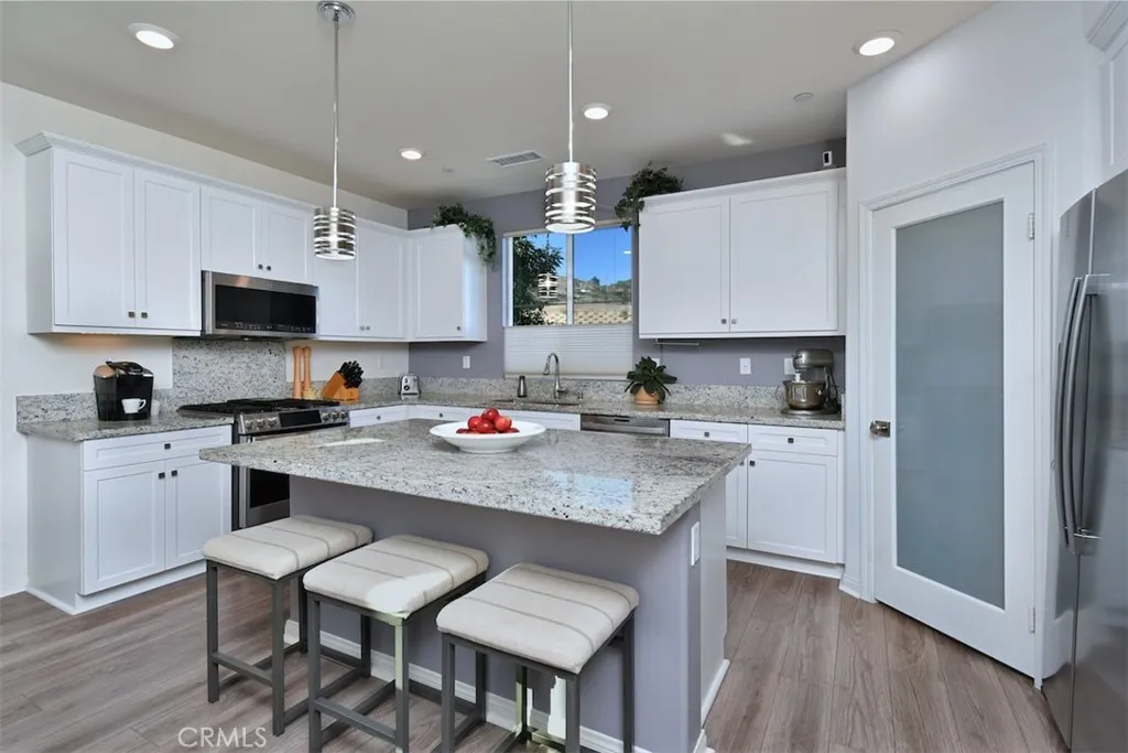 Motivated Seller says bring an Offer! Stop Looking and Start Packing! This smart home has it All! Only 3 years old with nearly $100K in upgrades which includes Owner paid-in-full Solar with 14 panels screams true Pride of Ownership. Located in the Master Planned community of Harvest at Limoneira, this 4 Bedroom, 3.5 Bath home has an Open concept floorplan with loads of natural light. Formal Entry leads to center island Kitchen with granite counters, stainless GE Profile appliances, a walk-in Pantry and an adjacent Butler's Pantry with lots of storage. Enjoy your morning coffee with Mountain views from your Kitchen window or your Front Porch. Living room with soaring ceilings has recessed lighting, electric fireplace, Plantation shutters & an over-sized sliding glass door which leads to the rear yard perfect for Entertaining with your Weber gas BBQ. A low maintenance dream--Professionally designed rear yard has insulated Alumawood covered patio with wrap around interlocking pavers, raised planters and artificial turf in the side yard. Downstairs next-gen ensuite Bedroom with access to the front porch has its own full Bath is perfect for in-laws or guests. Additional separate Guest powder bath complete the downstairs. Upstairs generously sized Loft makes an ideal Family room. Primary suite includes its own Spa-like Bath with dual vanities, separate soaking tub and step-in shower plus a walk-in closet with built-ins and organizers. Two additional generous sized Bedrooms share the 3rd full Bathroom. Upstairs Laundry room with full-sized side by side LG Thin Q front load washer