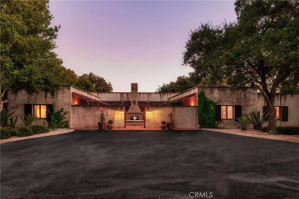 Set on 20 oak-studded acres in gated Oak Trail Estates, Fallen Oak Ranch blends timeless hacienda-inspired design with modern updates and equestrian amenities. The custom residence centers on a courtyard with fountain and fireplace, opening to a great room floorplan with grand fireplace, open kitchen, and doors to the veranda, pool, and sweeping views. Three private bedroom suites include a full primary wing with den, dual closets, and patio. Outdoor living shines with pool, kitchen, gardens, roses, and citrus. A cedar barn with stalls, workshop, loft, and refrigerated storage plus fenced pastures and orchard complete this serene retreat.