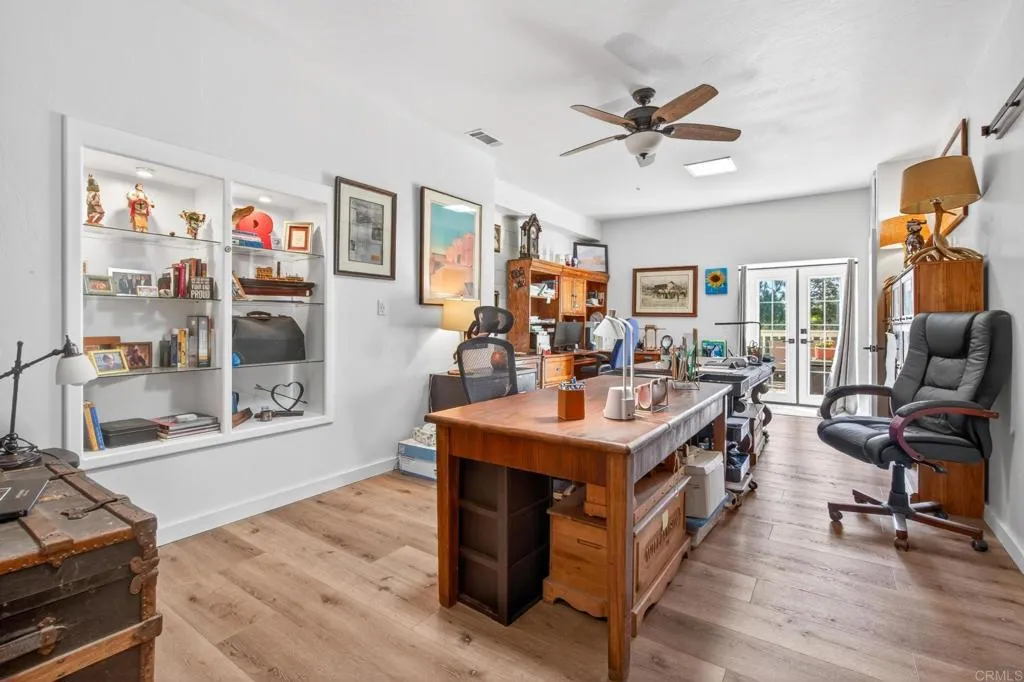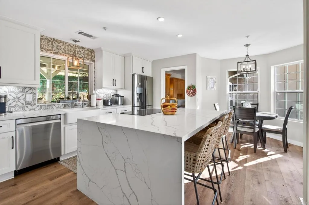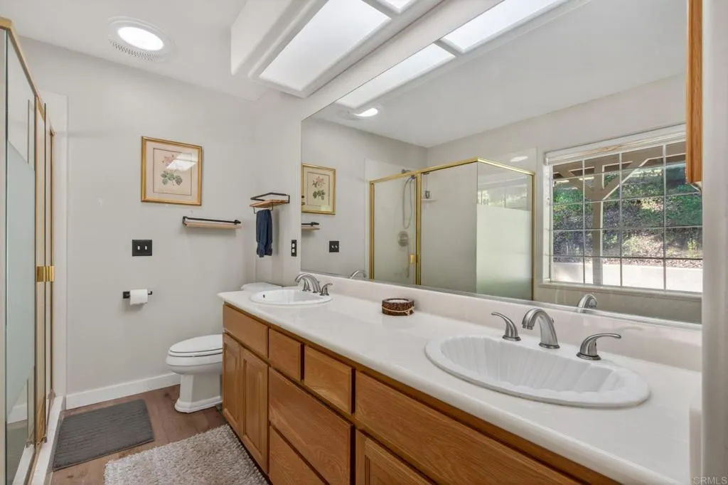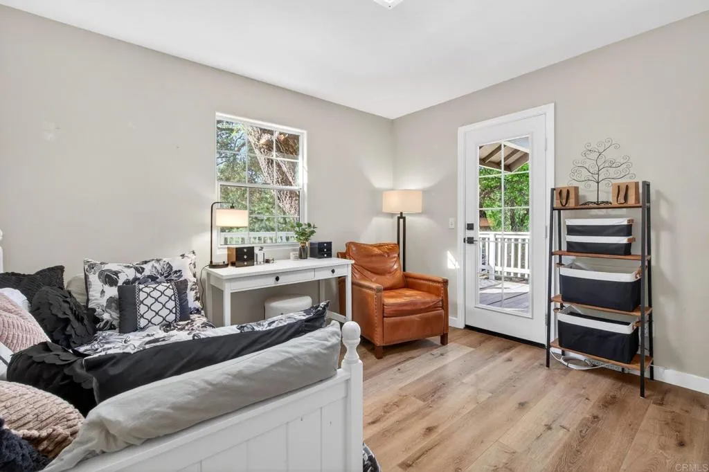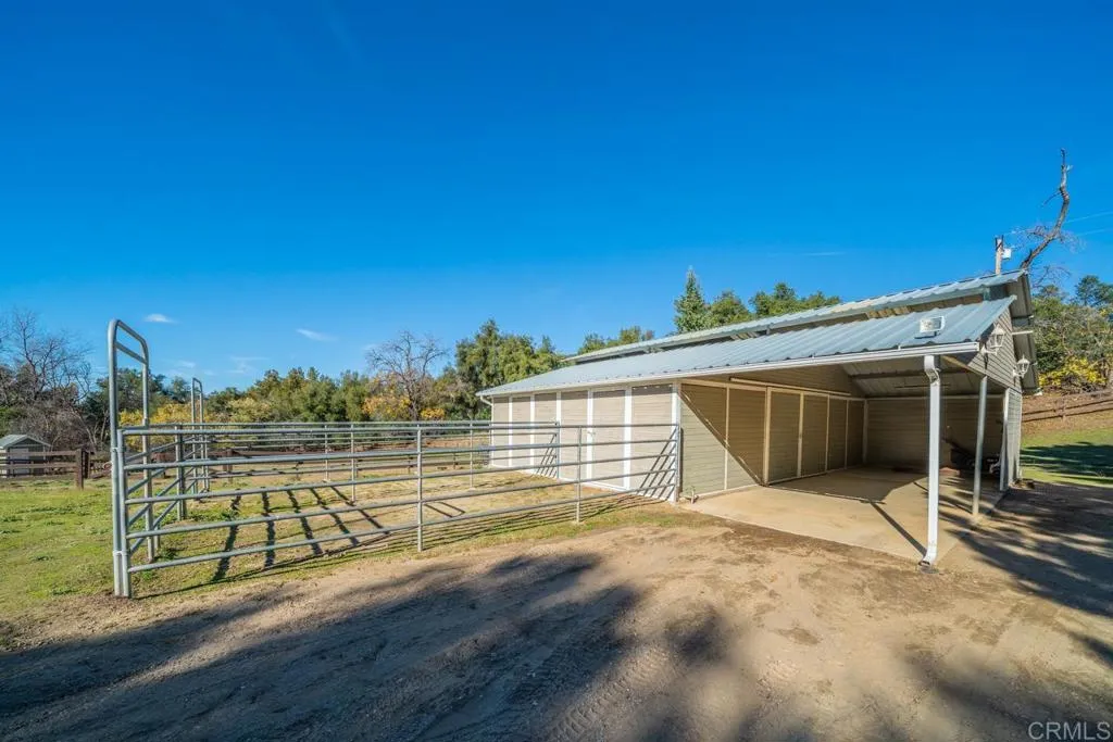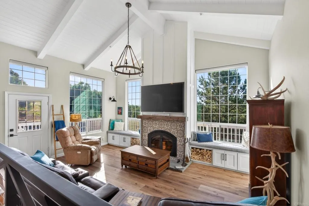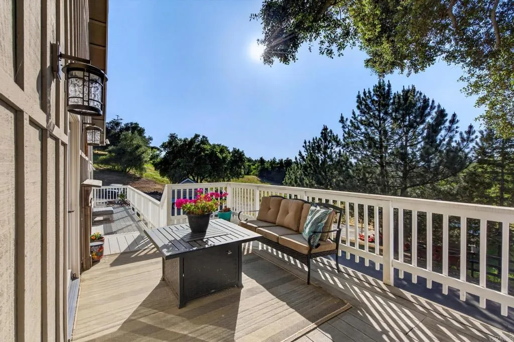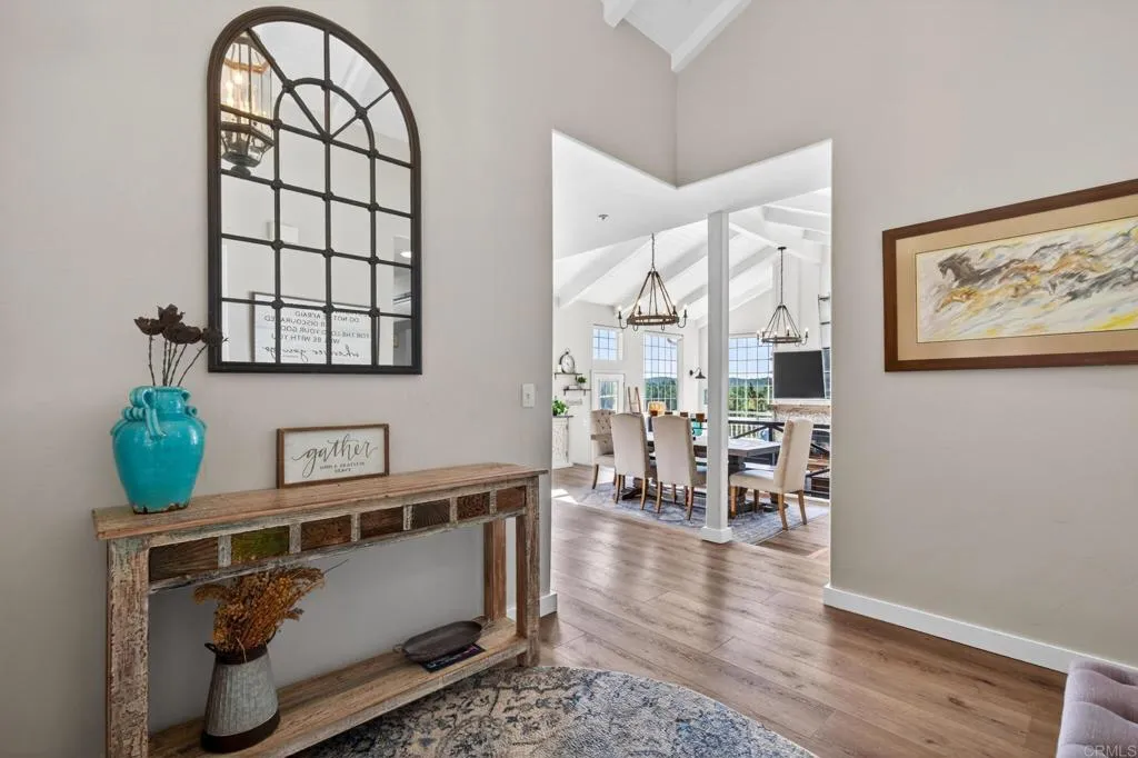 Nestled along a scenic corridor, Mesa Grande Villa presents a rare opportunity to experience the beauty, heritage, and lifestyle of one of San Diego Countys most treasured backcountry settings. ~A gated entry and gently winding drive welcome you into a private, fully fenced 8.15-acre estate where rolling terrain and mature oaks create a landscape that is both peaceful and inspiring. At the heart of the property is a thoughtfully remodeled 2,135 square foot ranch home featuring 3 bedrooms, an optional 4th bedroom or flexible space, and 2 1/2 baths. The home seamlessly blends modern farmhouse style with timeless character, where vaulted wood beam ceilings, adobe walls, numerous skylights, and expansive windows fill the interior with natural light while framing sweeping westerly views. The open floor plan is designed for both comfortable living and effortless entertaining, with many rooms opening directly to an expansive wraparound deck that extends the living space outdoors. ~The kitchen serves as a true centerpiece, featuring stainless steel appliances, an induction cooktop, farmhouse sink, and an oversized island with striking double waterfall edges. A Dutch door leads to a spacious laundry and utility room with ample counter space, sink, and storage, conveniently connecting to the attached three-car garage. The home is equipped with a comprehensive water system, including triple filtration with a carbon filter, as well as reverse osmosis drinking water in the kitchen. ~Living areas are anchored by a dramatic floor-to-ceiling stone fireplace enhanced with a catalytic conver
